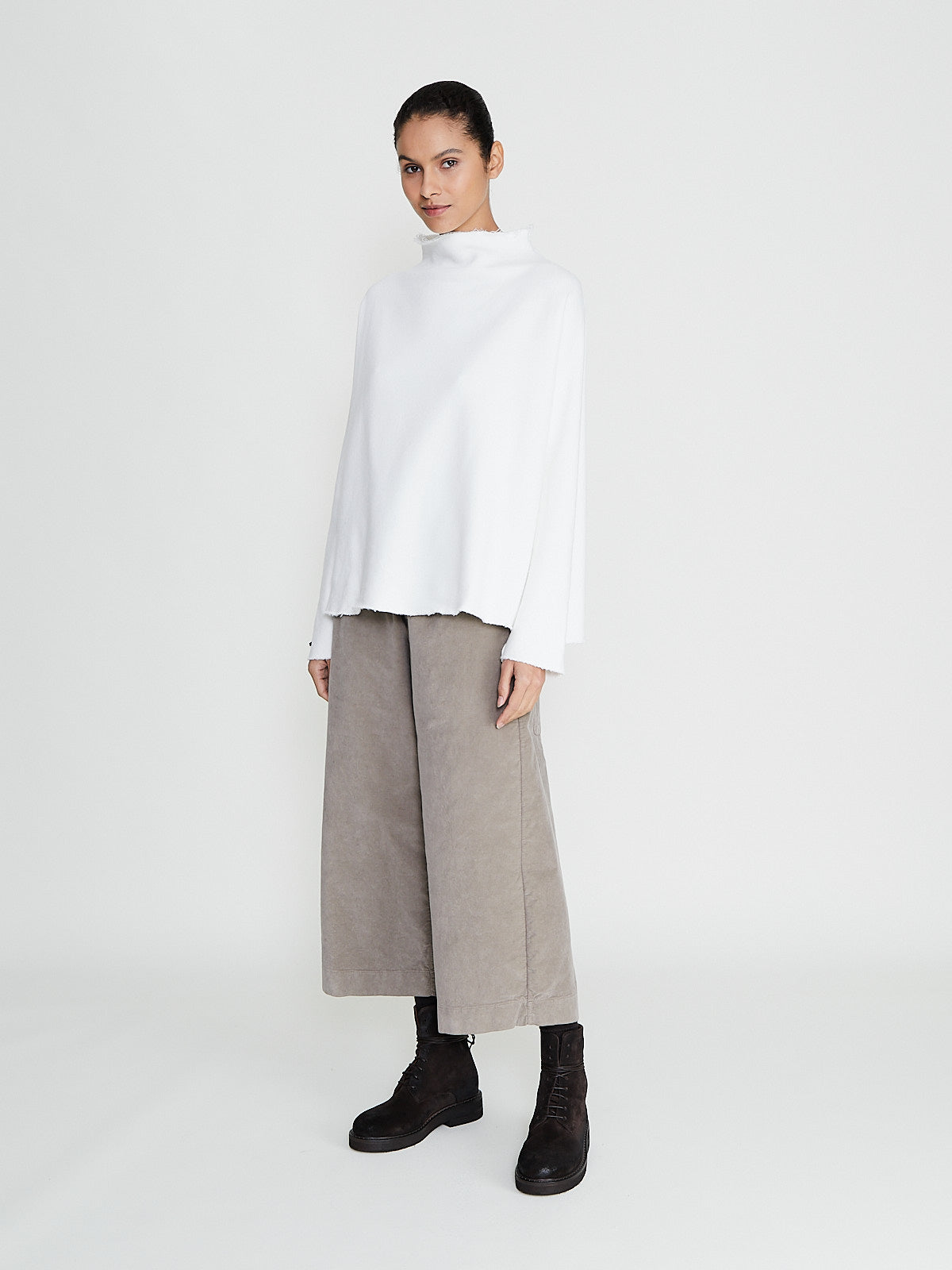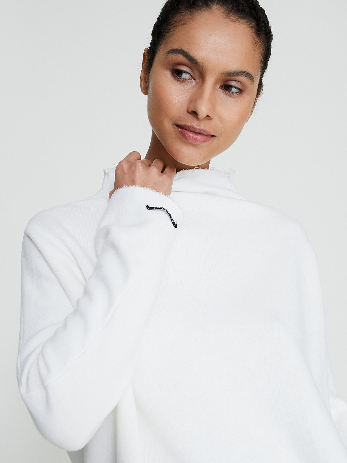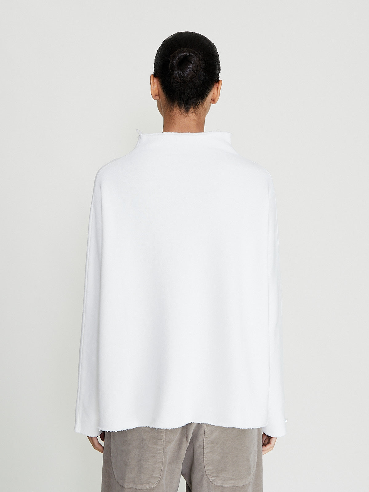 Oversized sweatshirt in a white cotton blend. Funnelneck and long sleeves. Features raw neckline, cuffs and bottom hem. Boxy fit.