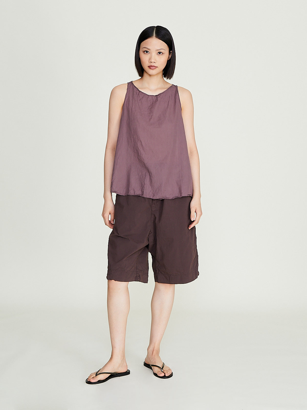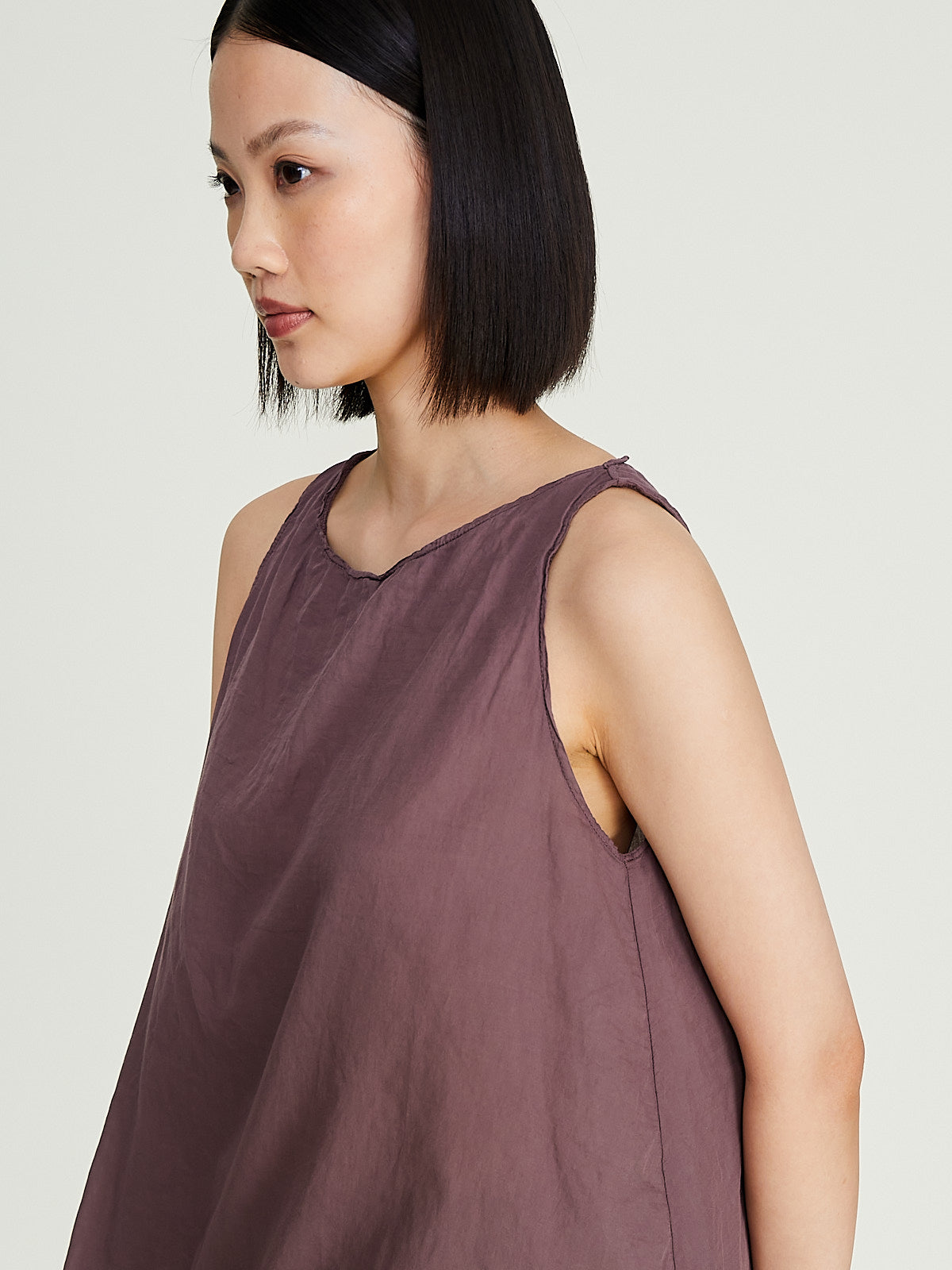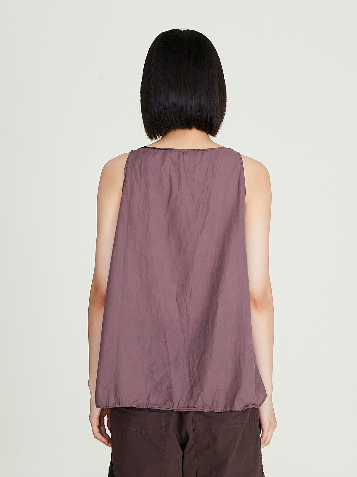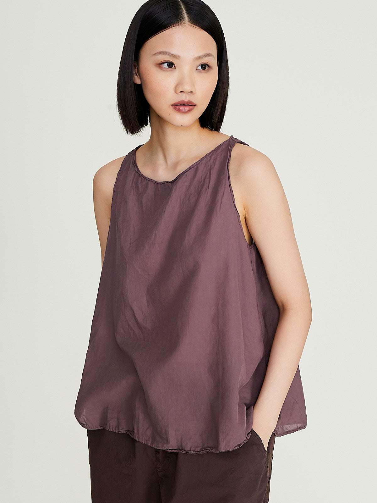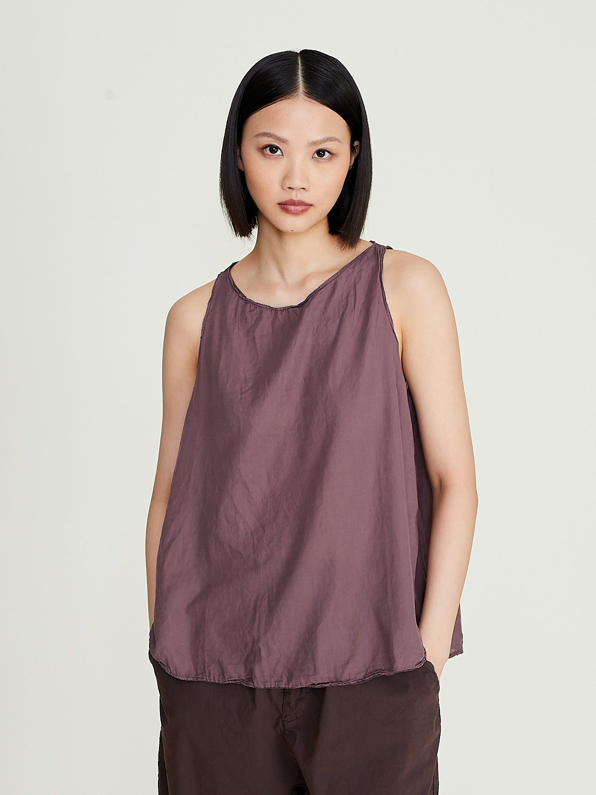 Tank top in washed mauve cotton. Wide round neckline and an a-line silhouette. Relaxed fit.
