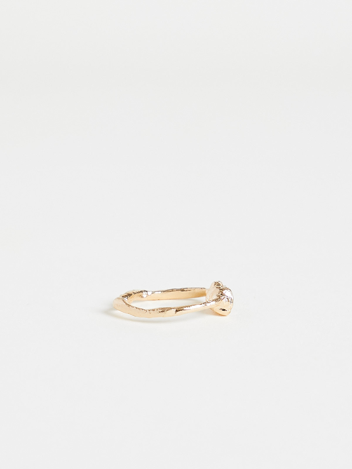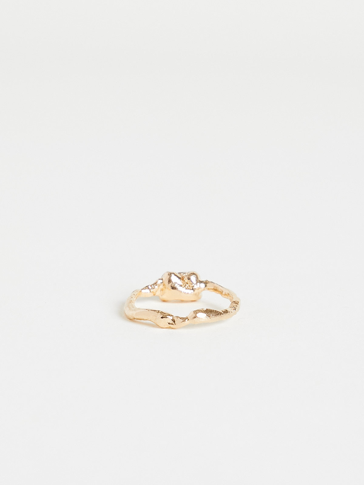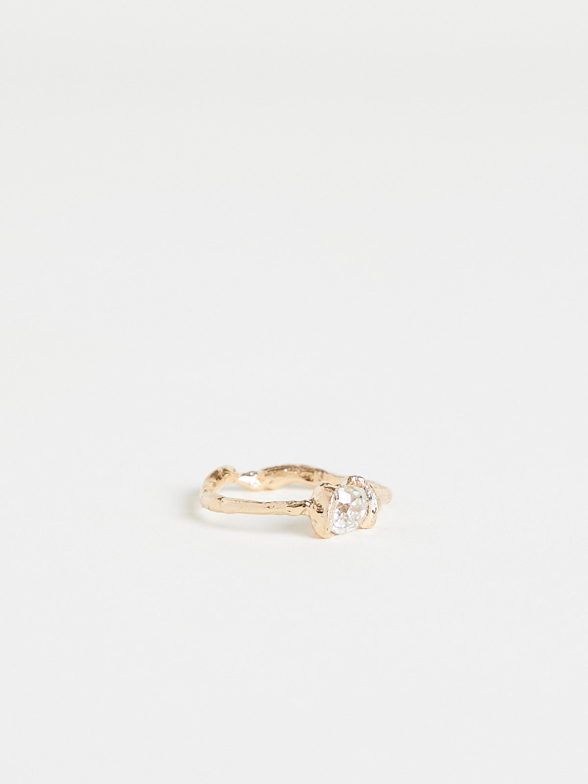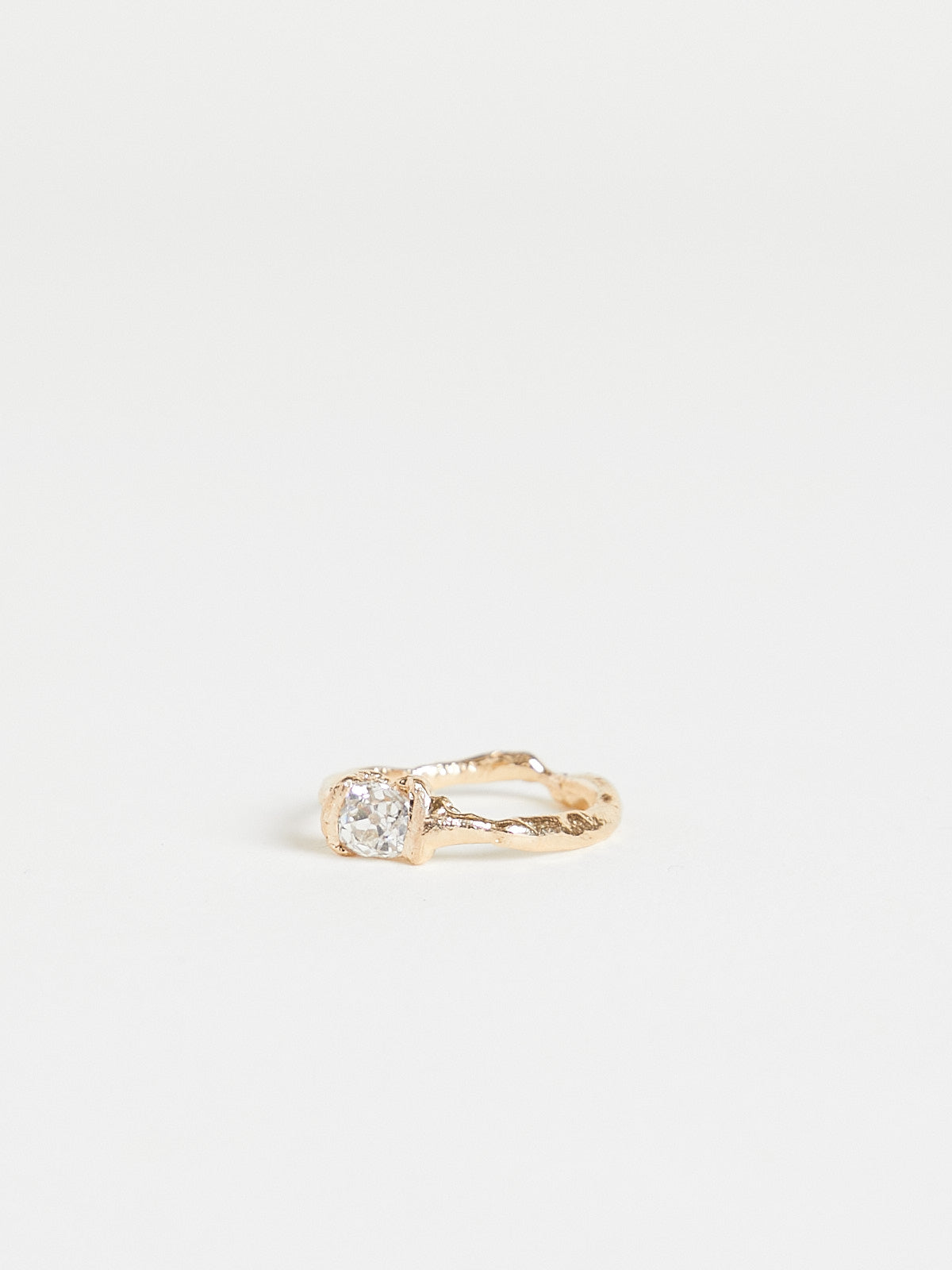 Handcrafted irregular-shaped ring in 14k yellow gold with an approx. 0.7ct Old Mine-cut white diamond.