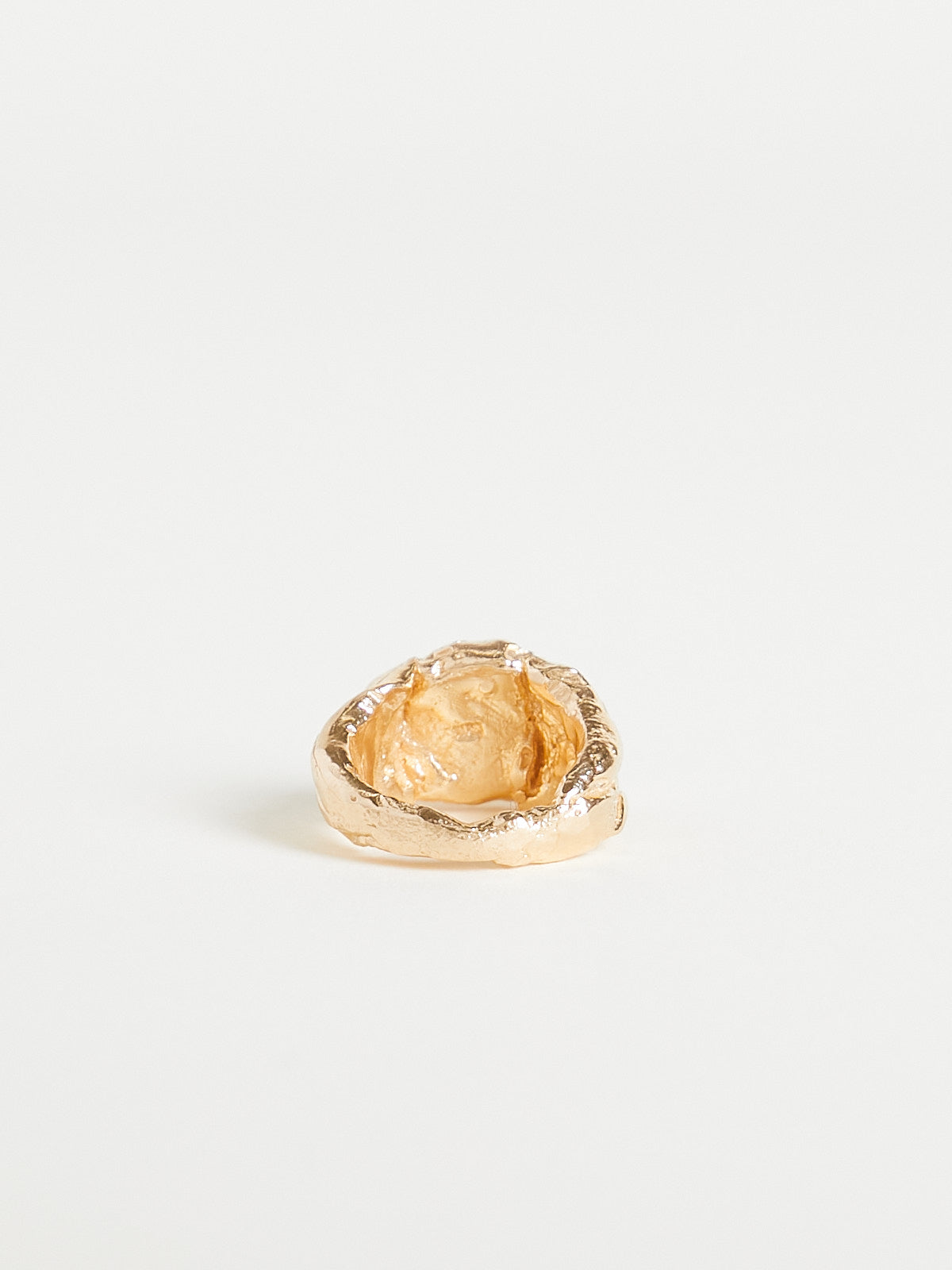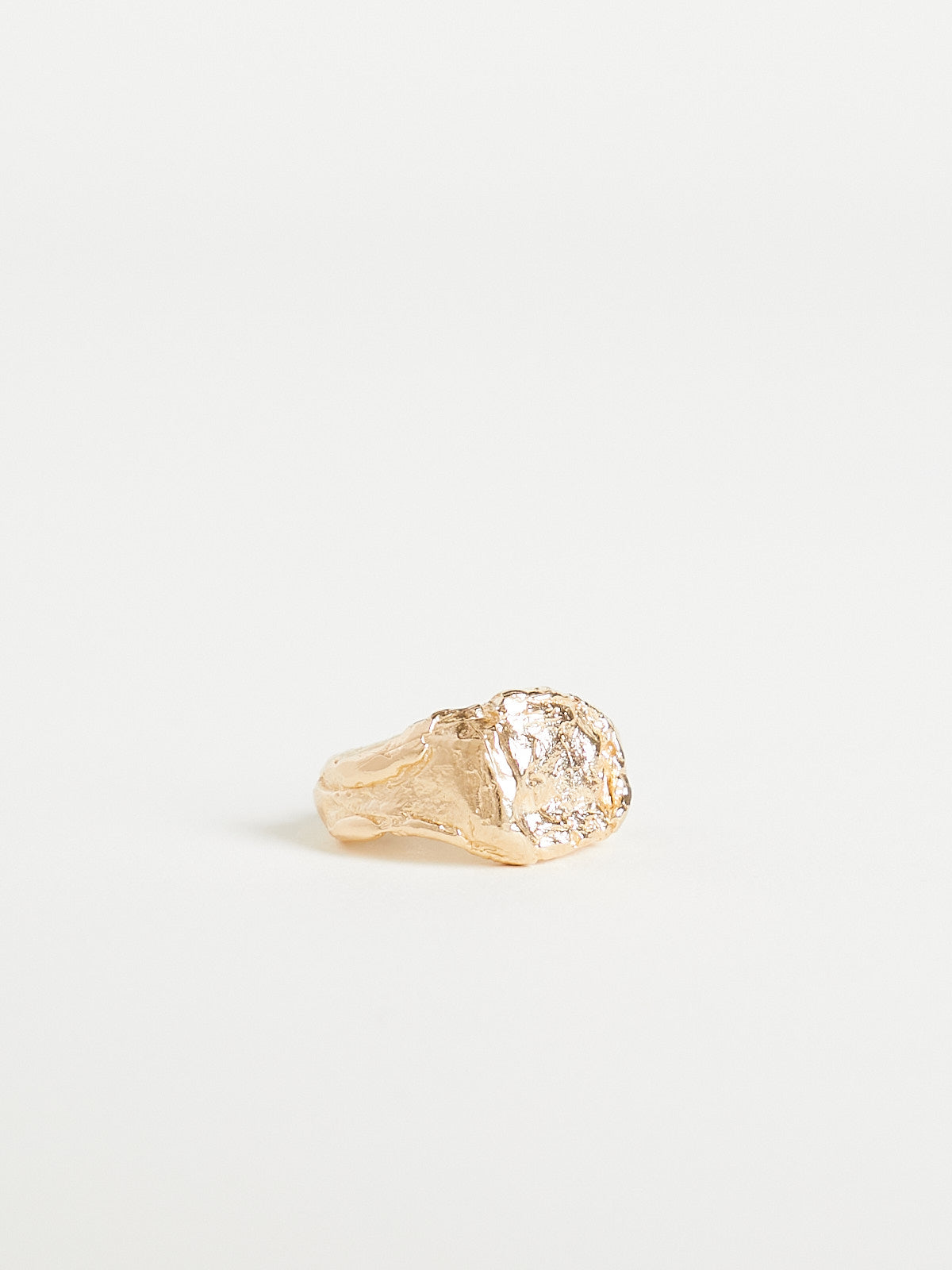 Handmade irregular-shaped signet ring in 14k yellow gold.