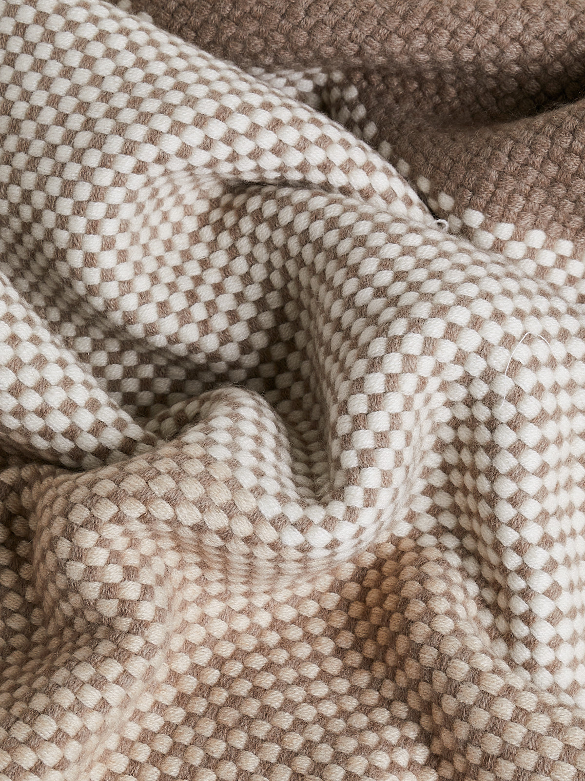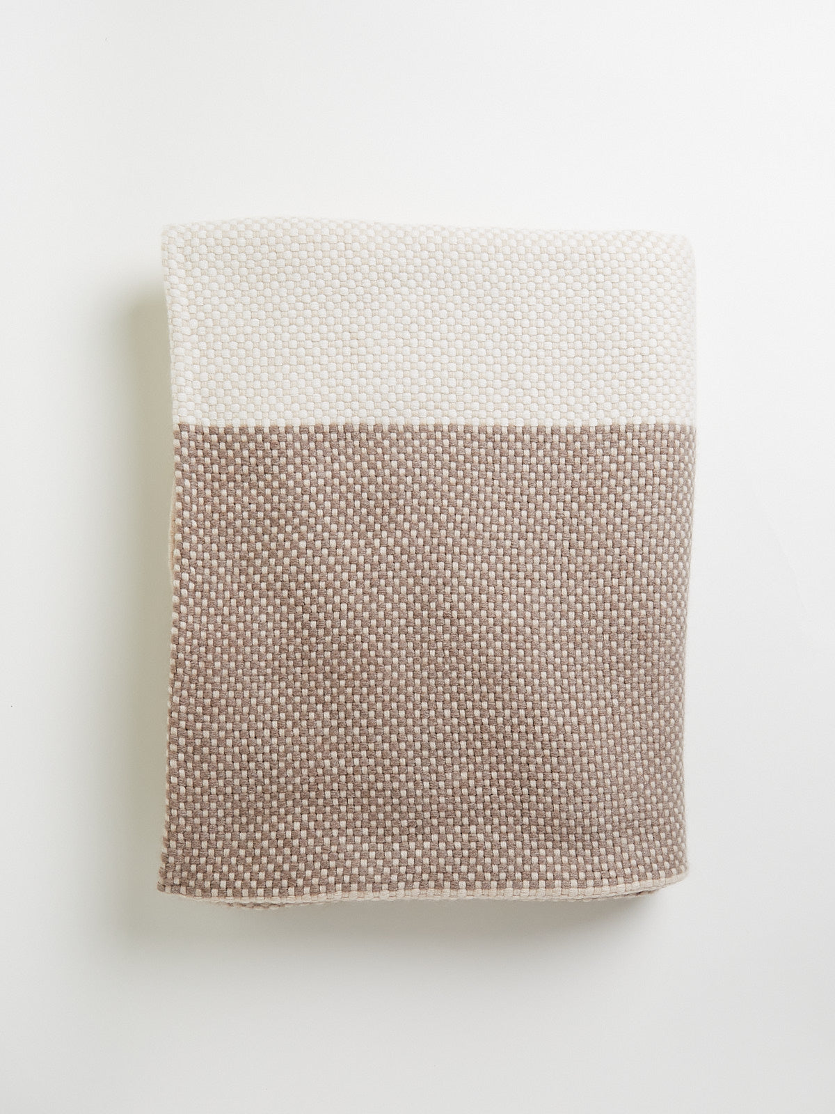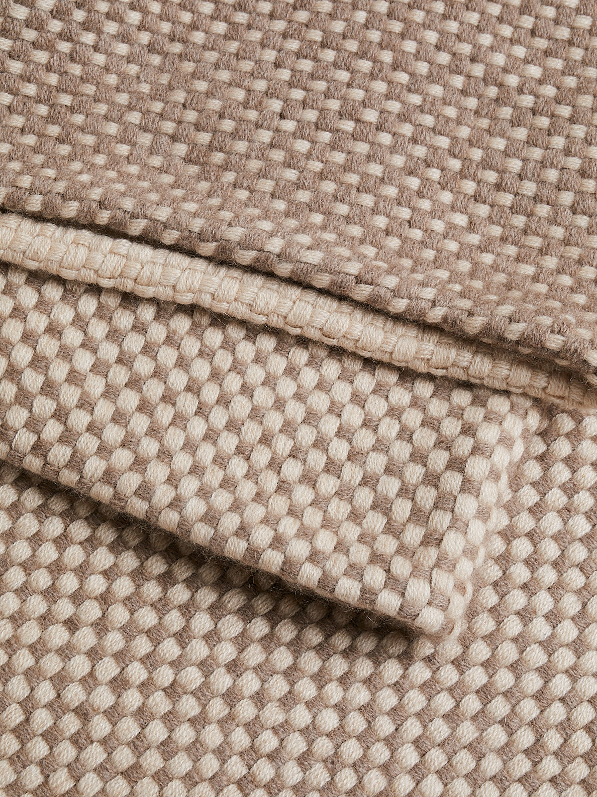 Woven blanket in taupe and natural cashmere.