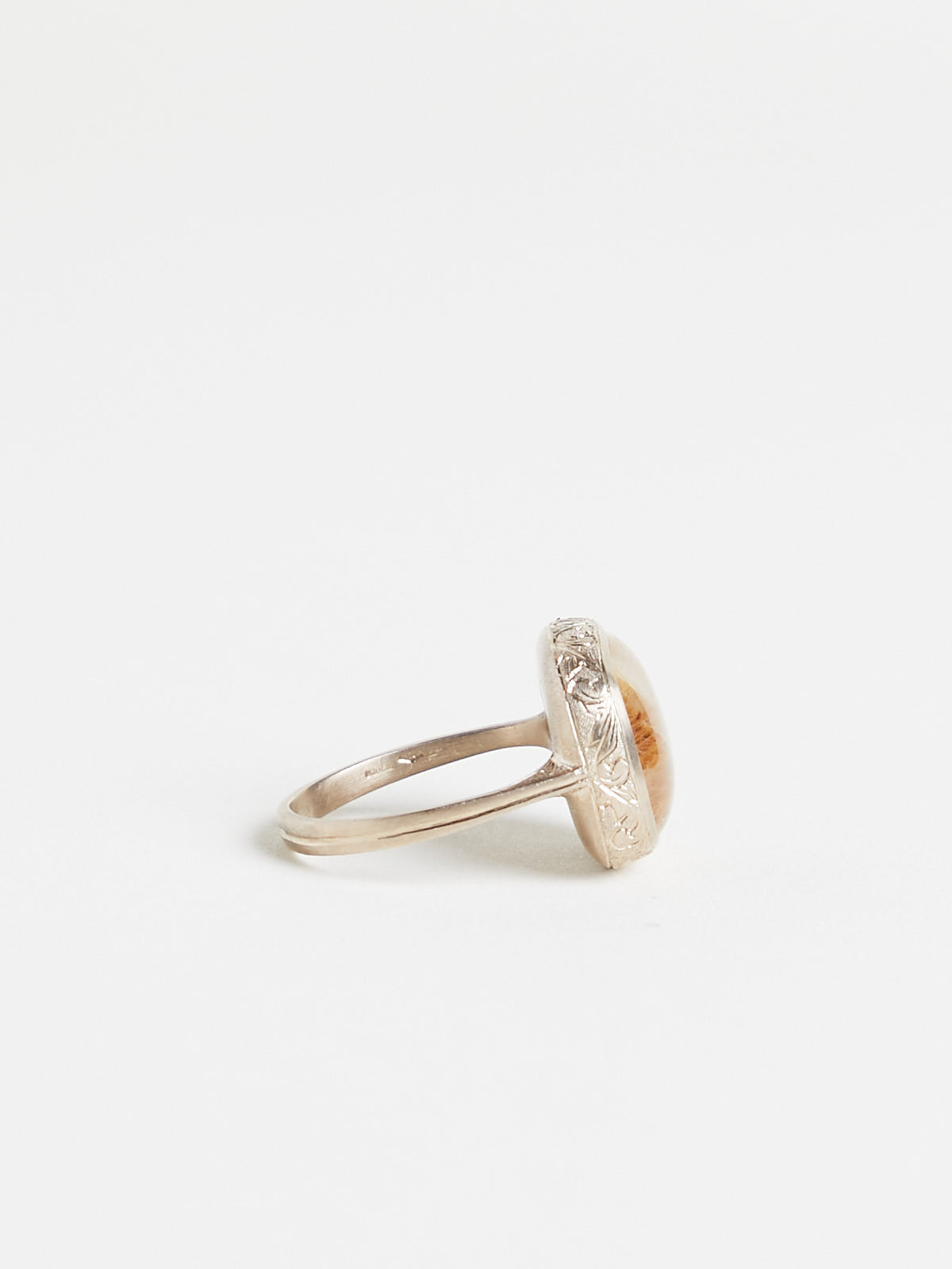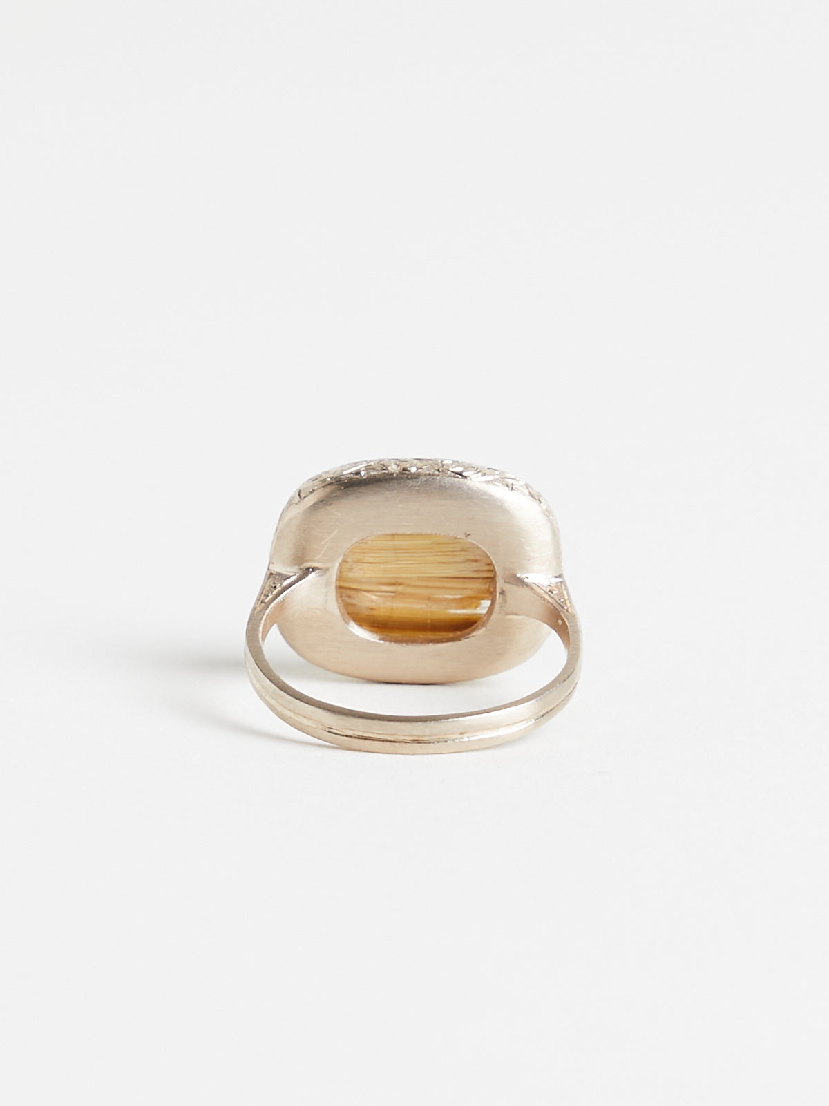 Flame Engraved Ring with 9.5ct Gold Rutilated Quartz on 9k White Gold