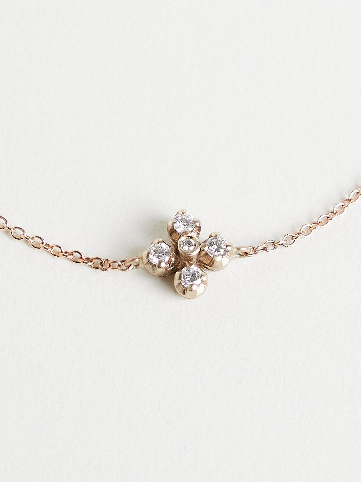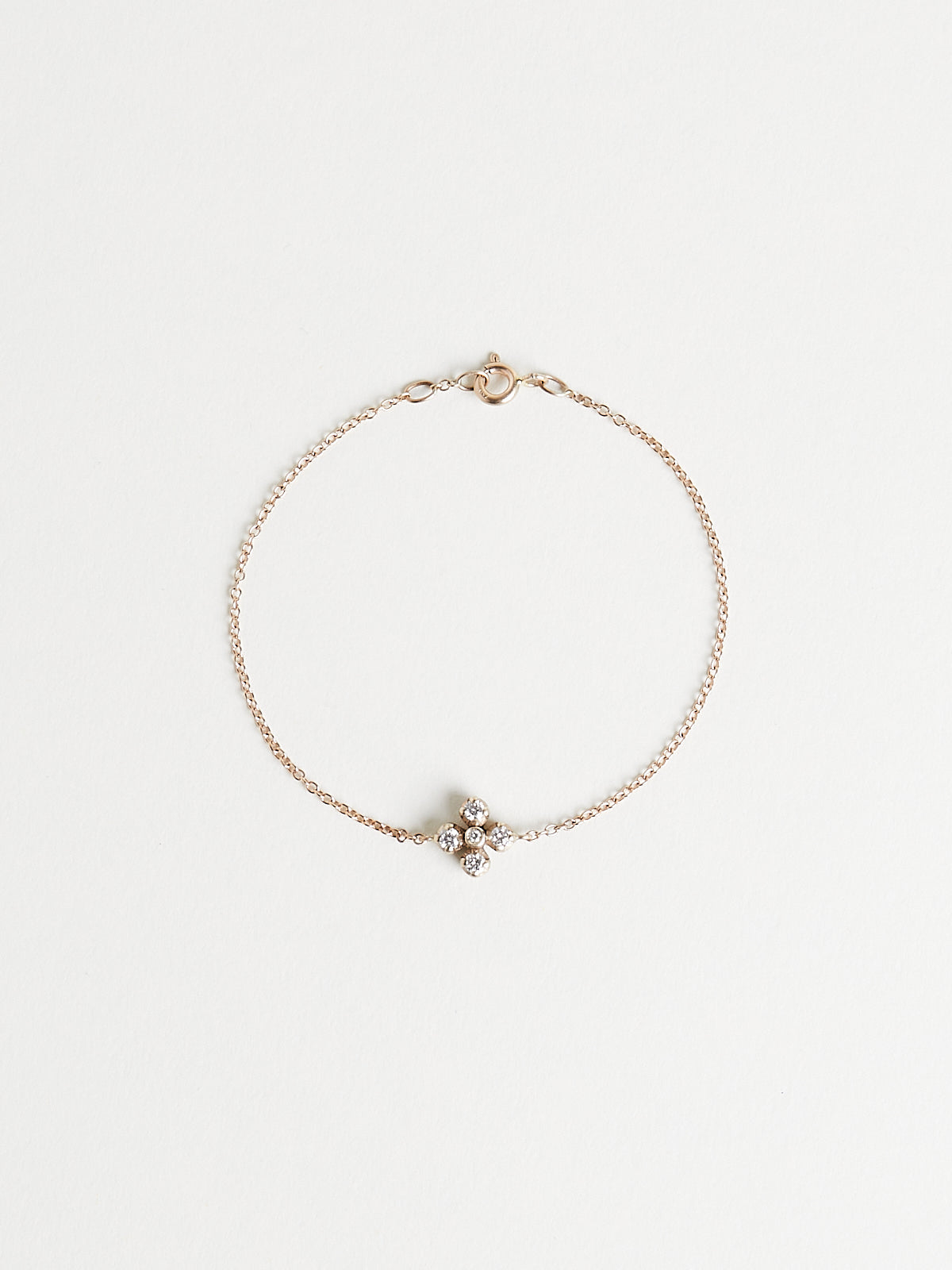 Bracelet in 19k/18k white gold with a delicate chain and a four-leaf clover encrusted with 0.17ct white diamonds. Features a spring ring clasp.