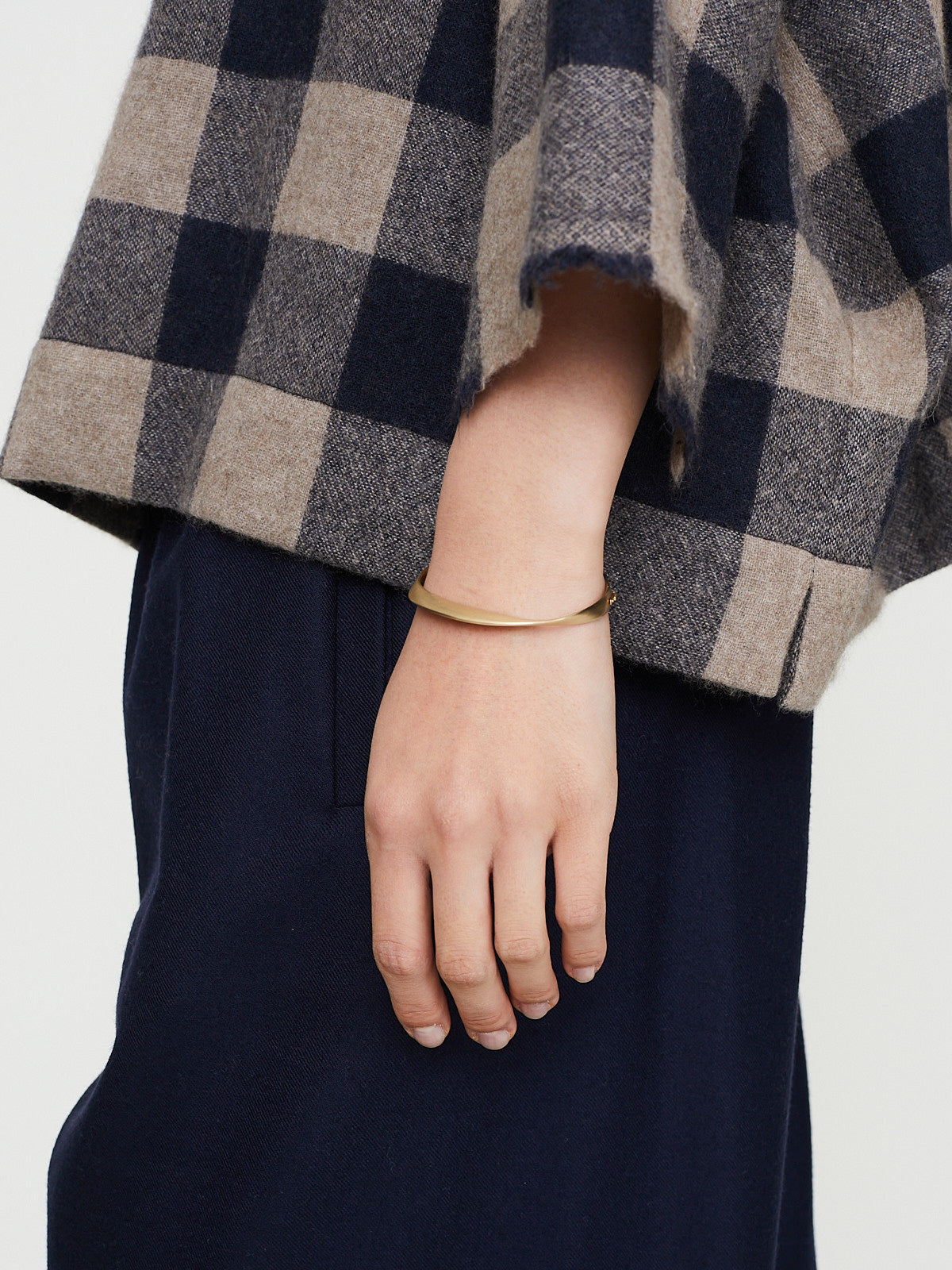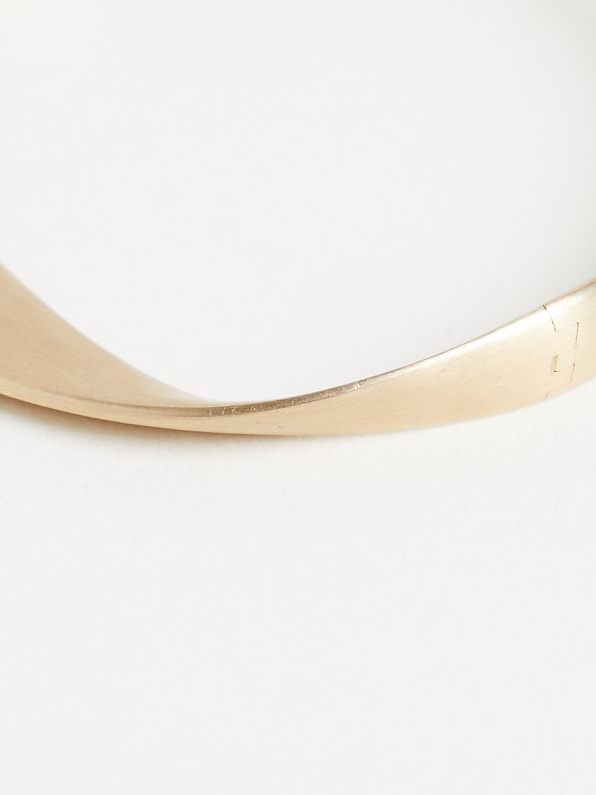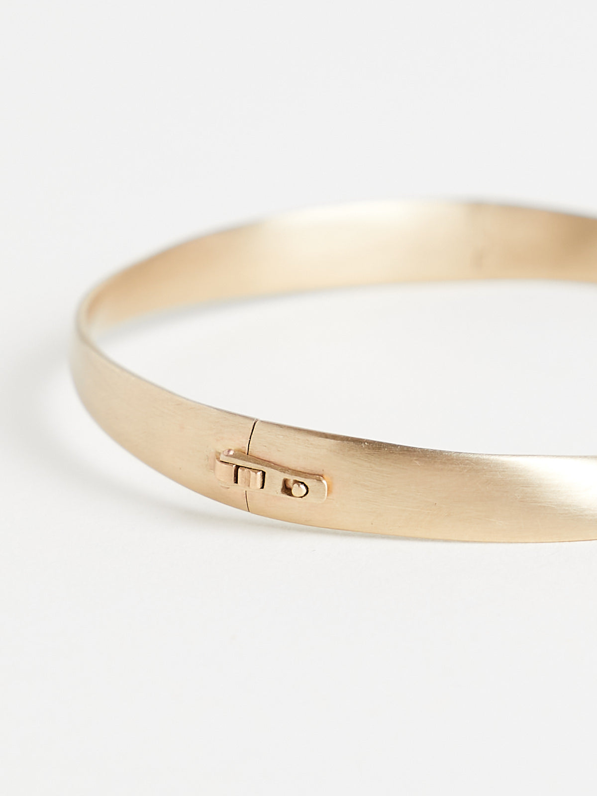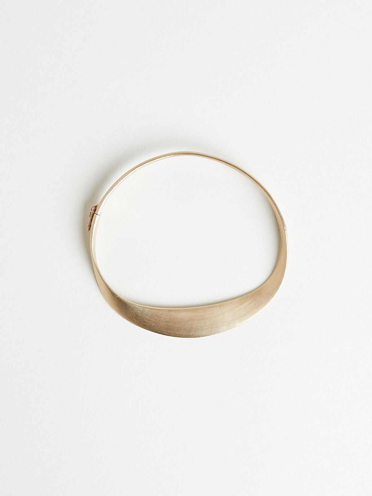 Hinged ribbon bracelet in brushed 9k yellow gold. Fold-over clasp.