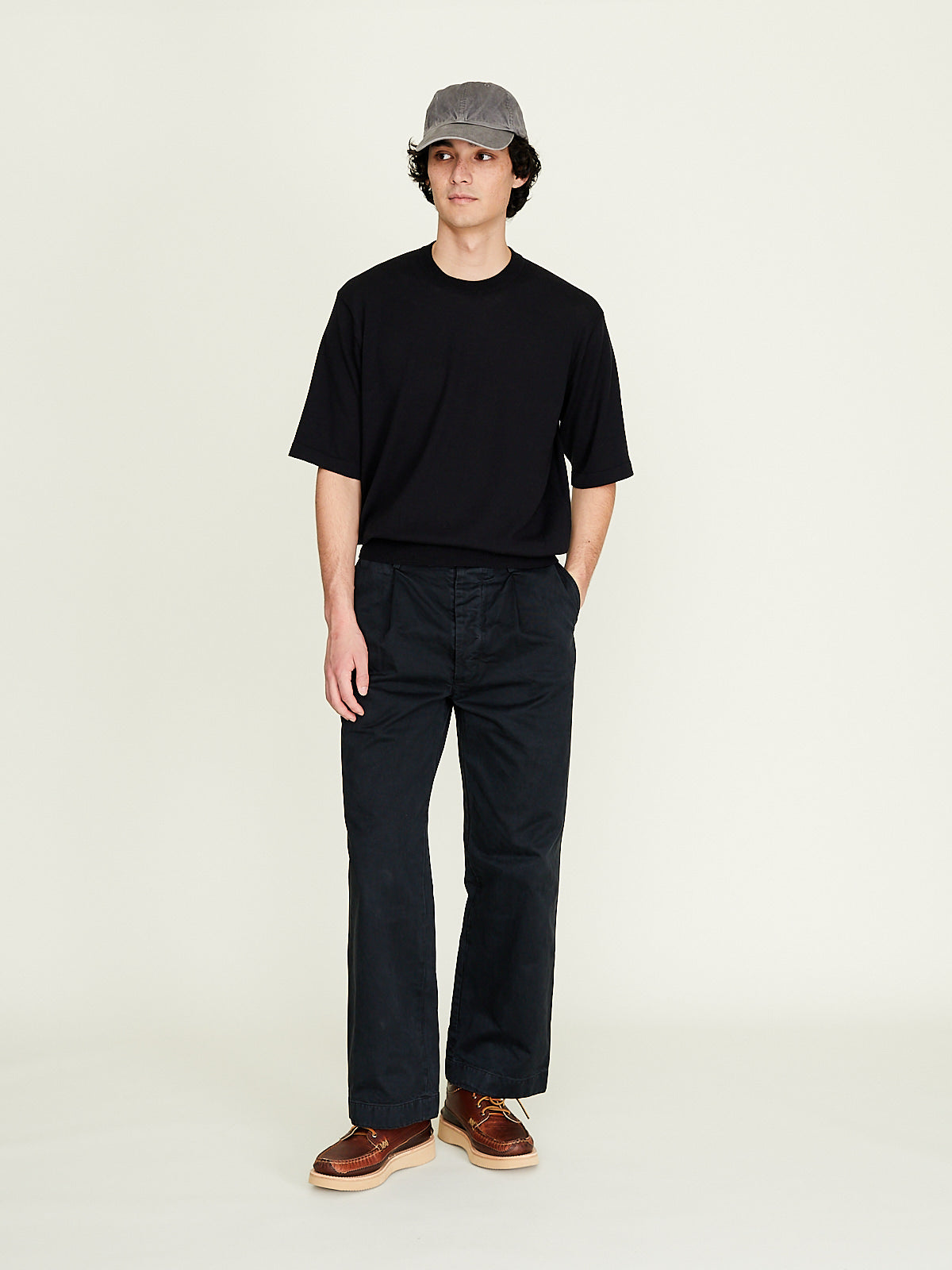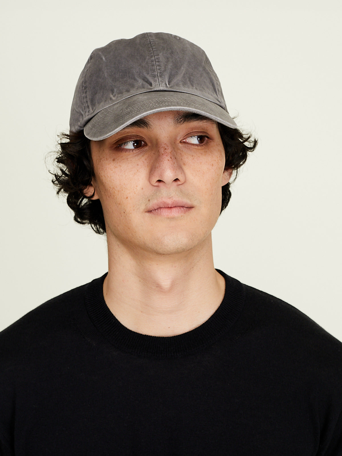 Cap made from garment-dyed ink black uniquely developed fabric using triple-twisted yarn spun from Finx cotton―an extra-long staple cotton grown in Egypt.