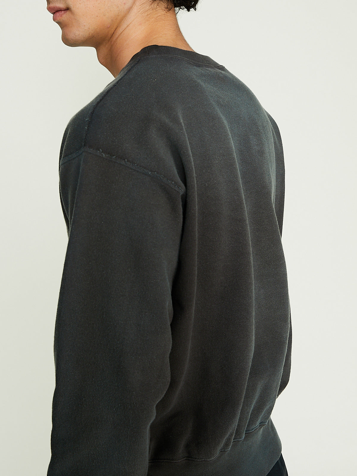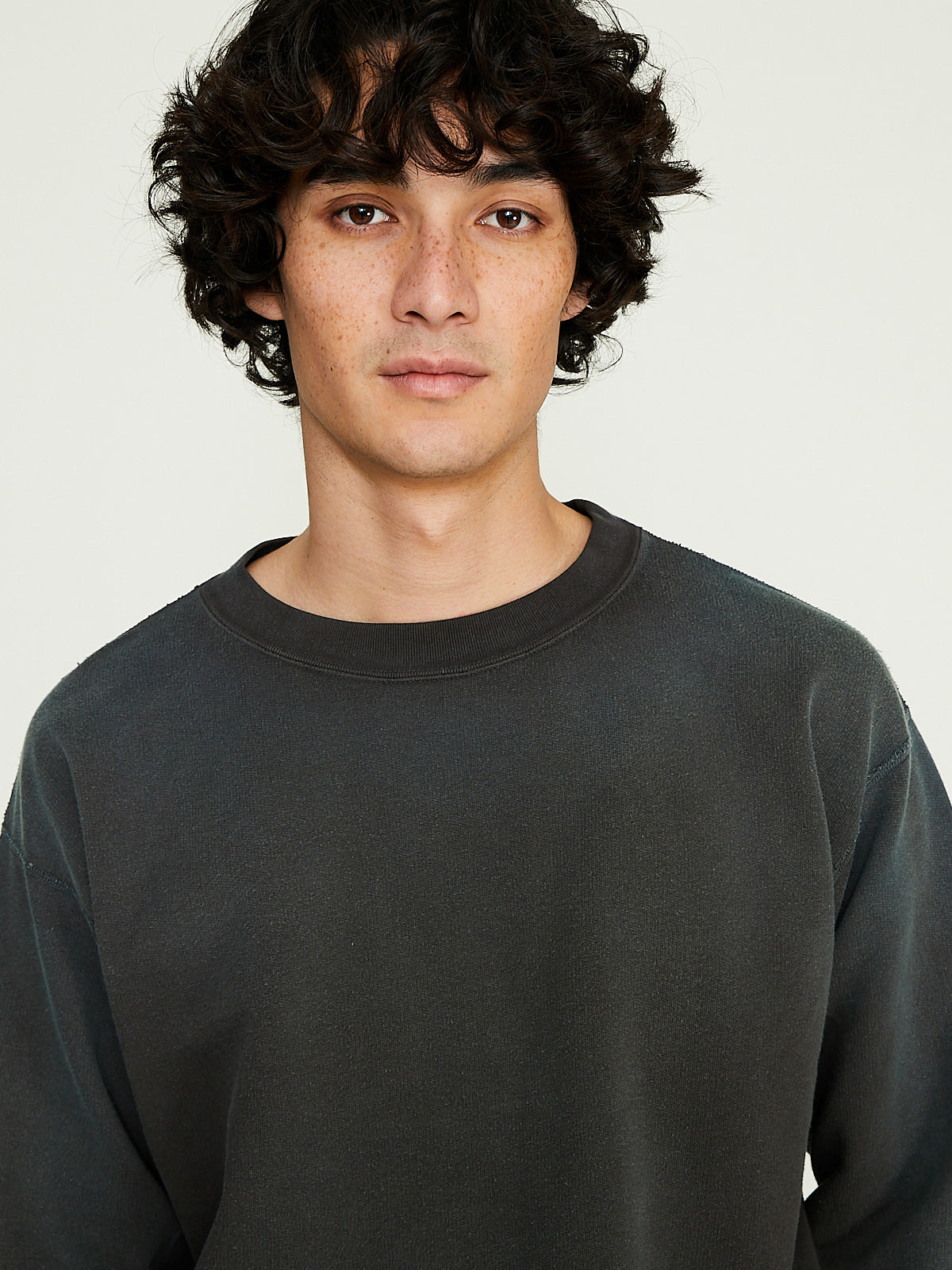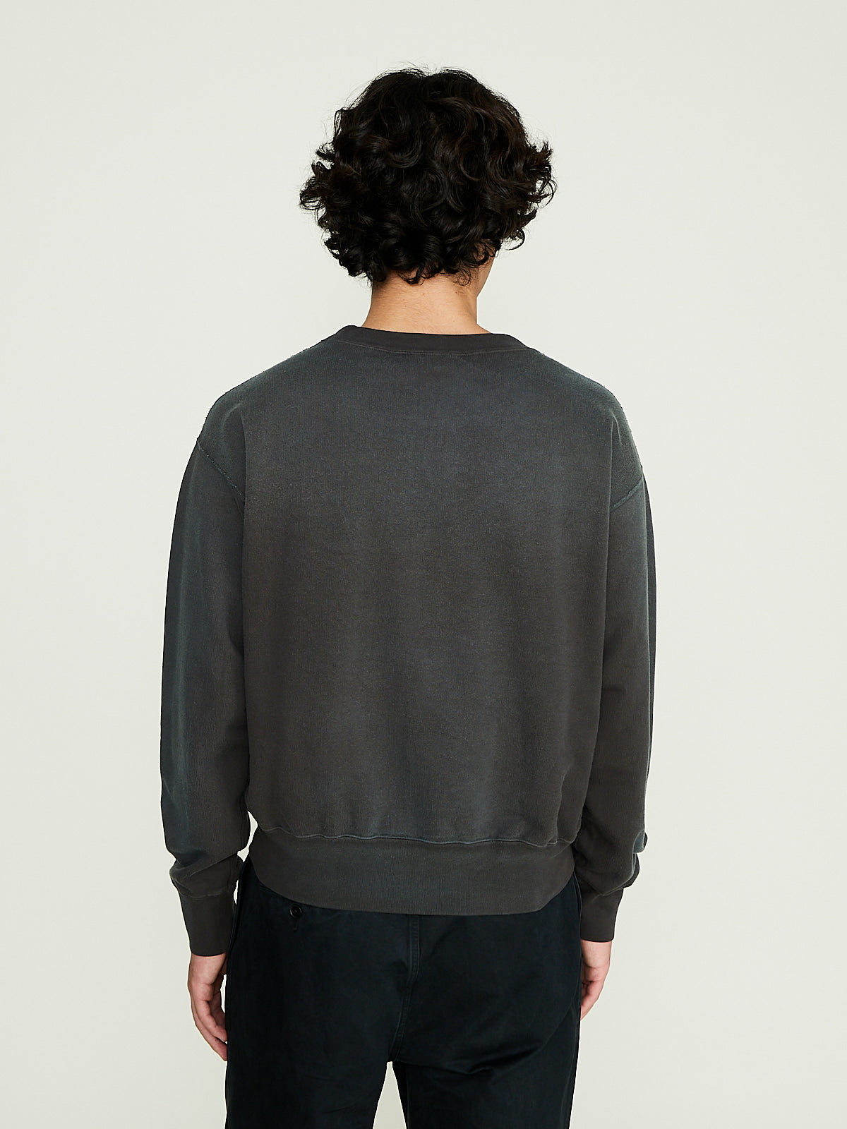Classic garment-dyed sweatshirt made by using Pima cotton and elastic spun yarn with a worn-in black colour. Crewneck and slightly cropped. Rib detail around the neck, cuffs and bottom hem. Slim fit.