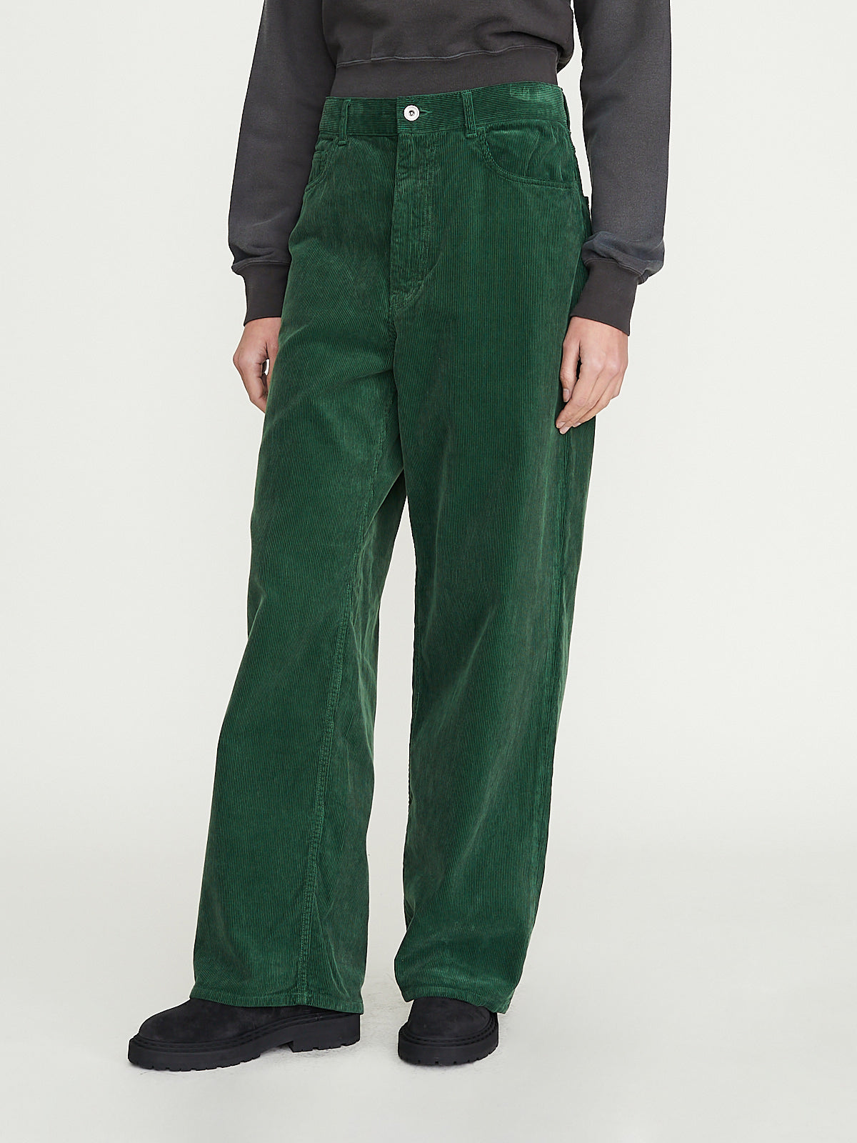 Pigment Dyed Finx Corduroy Wide 5P Pants in Forest Green
