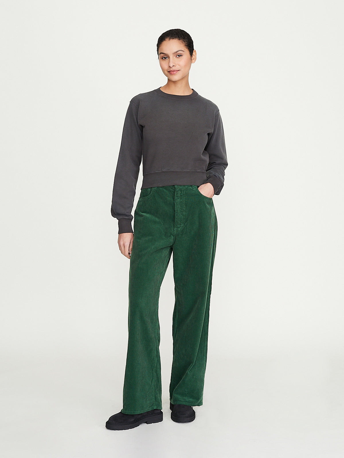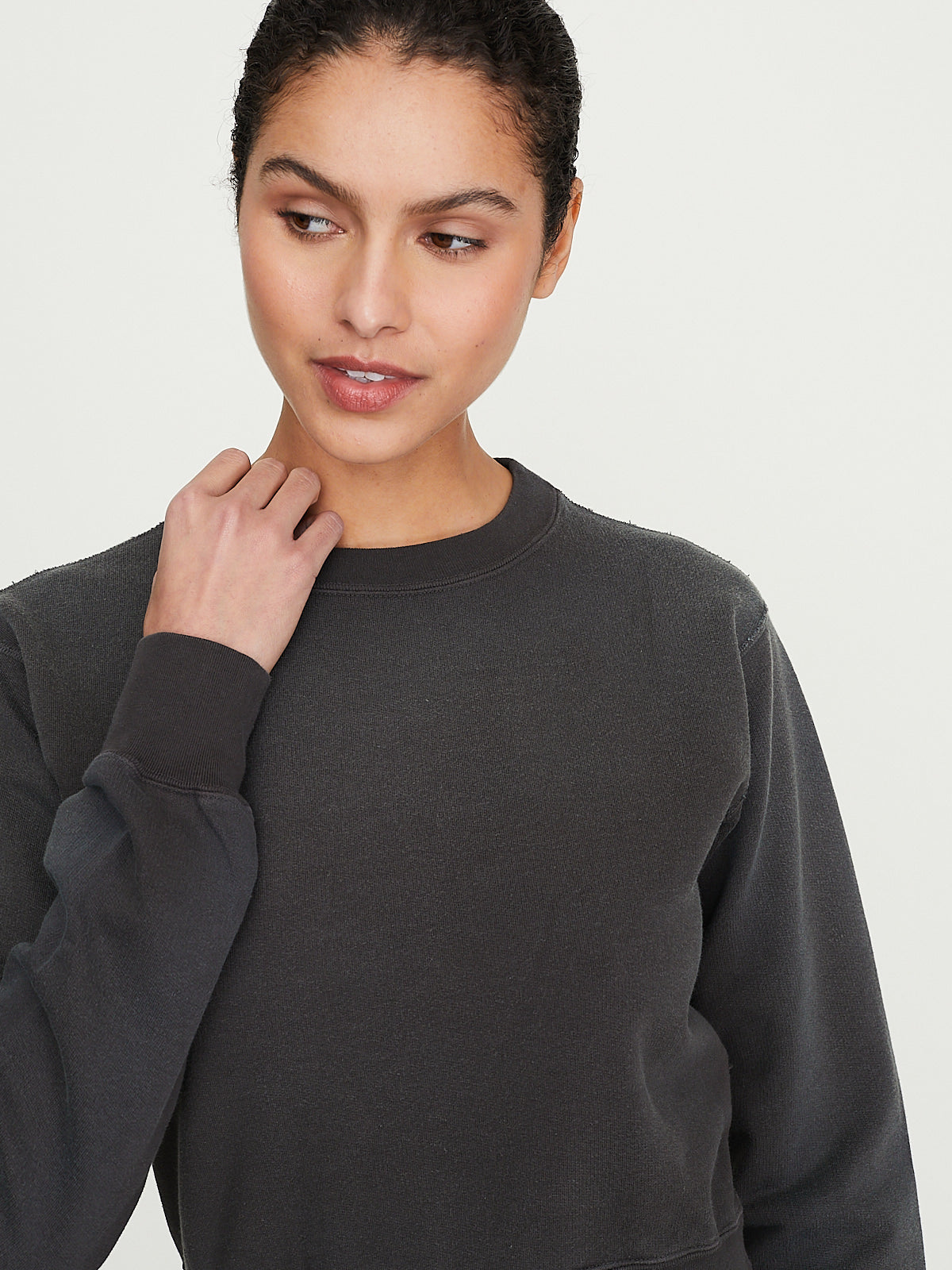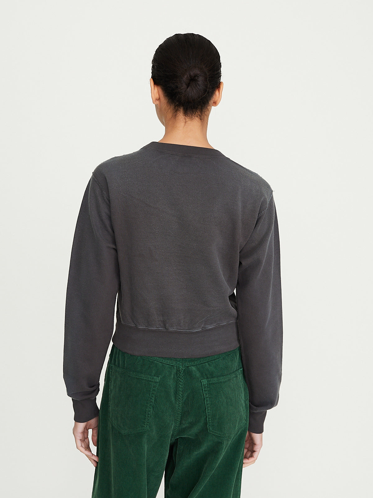 Classic garment-dyed sweatshirt made by using Pima cotton and elastic spun yarn with a worn-in black colour. Crewneck and slightly cropped. Rib detail around the neck, cuffs and bottom hem. Slim fit.