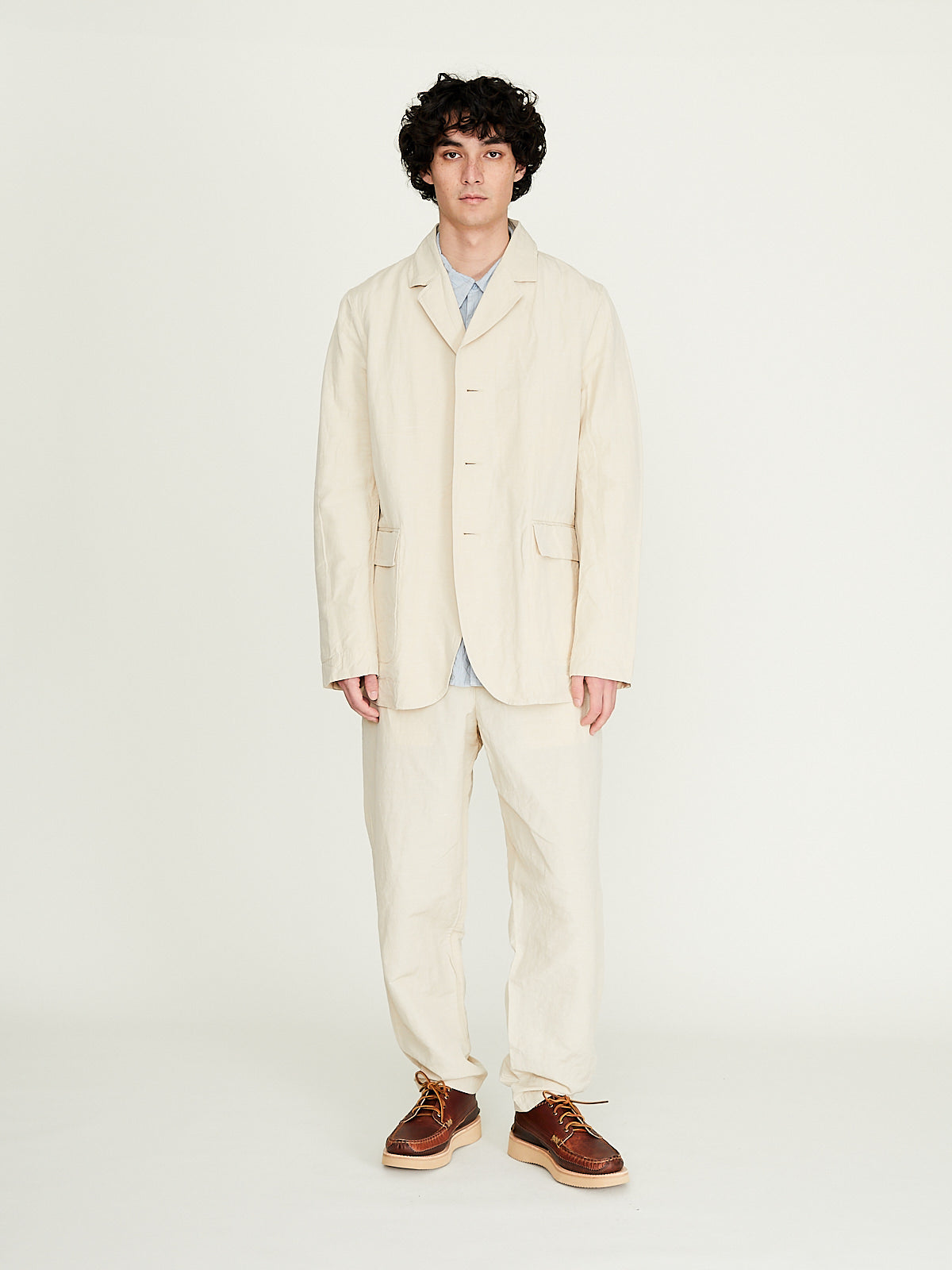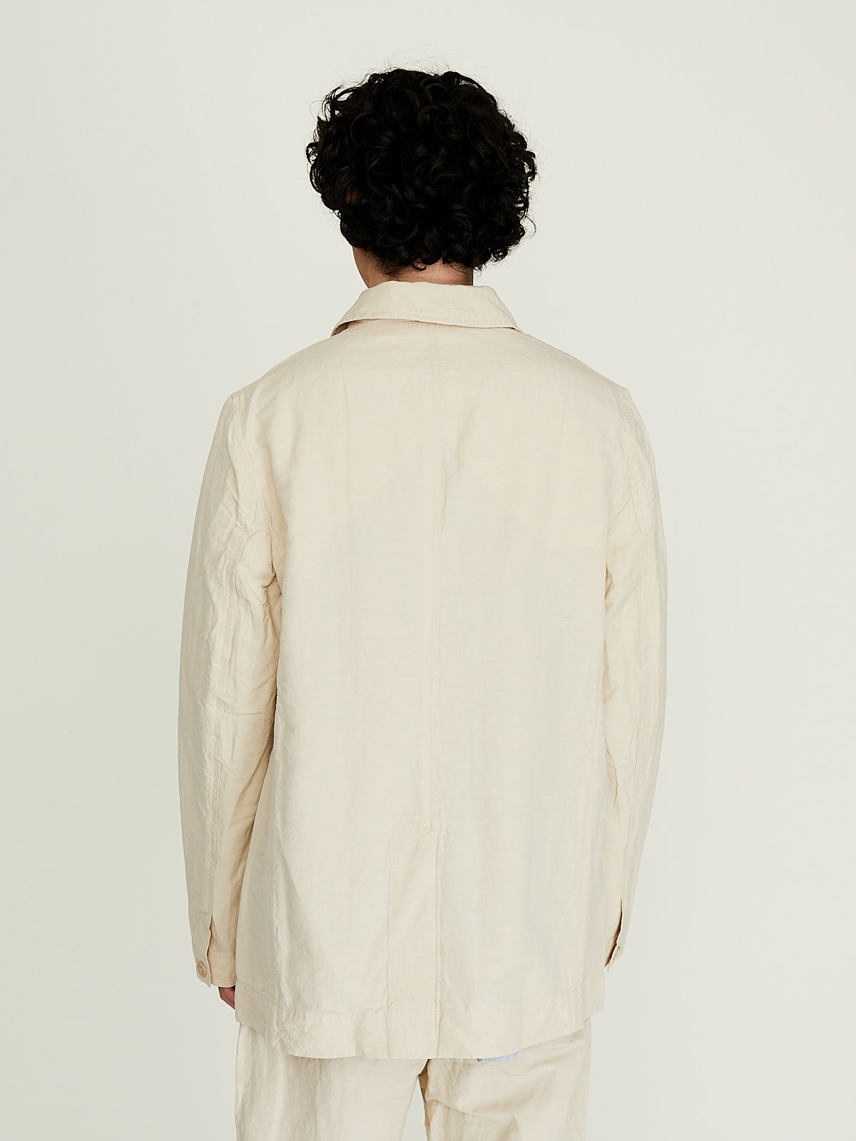 Casual blazer in lightweight ivory cotton/linen/silk with a washed finish. Notched collar, front button fastening and long sleeves with buttoned cuffs. Flap pockets on the front and  back vent. Oversized fit.