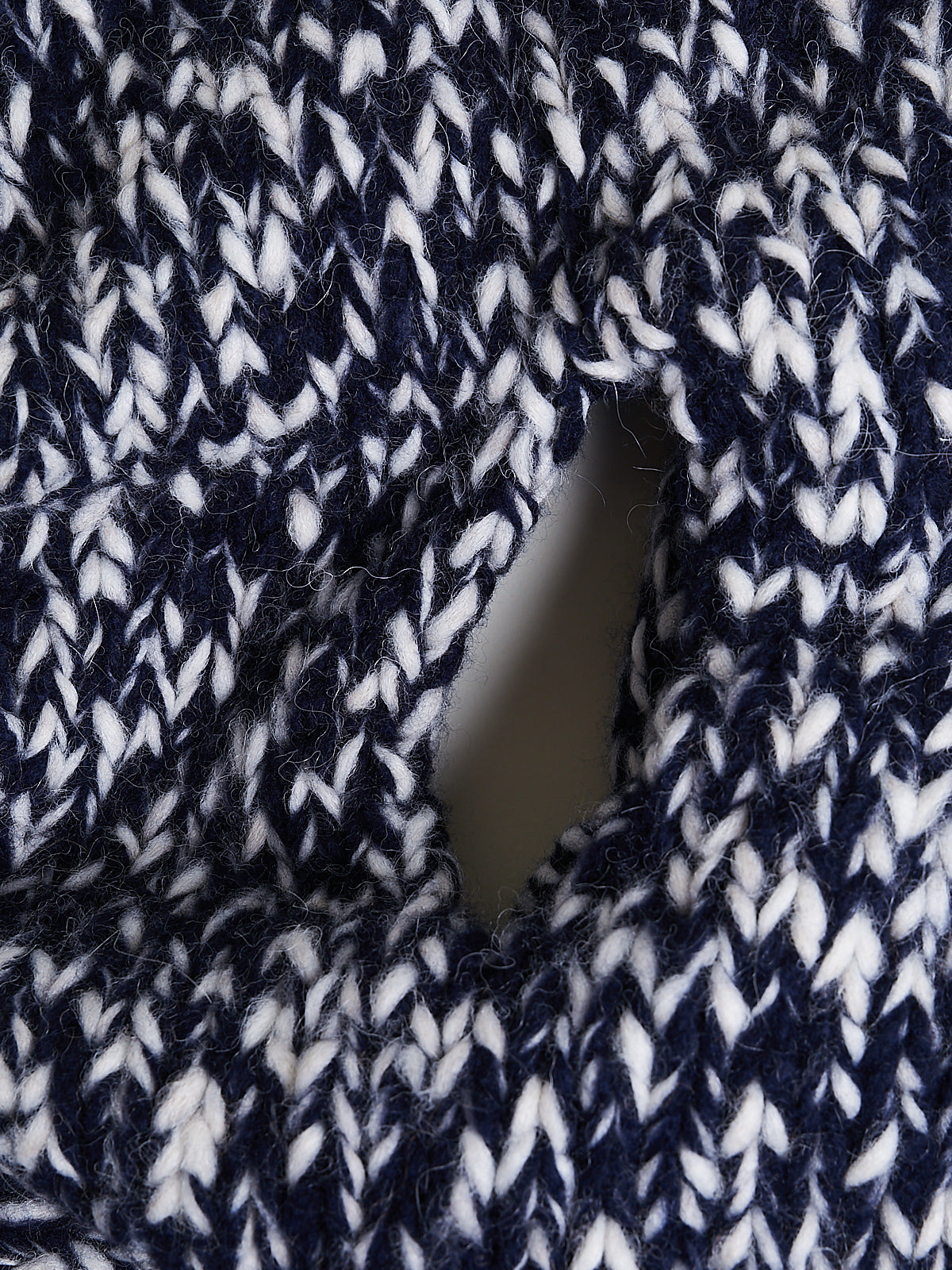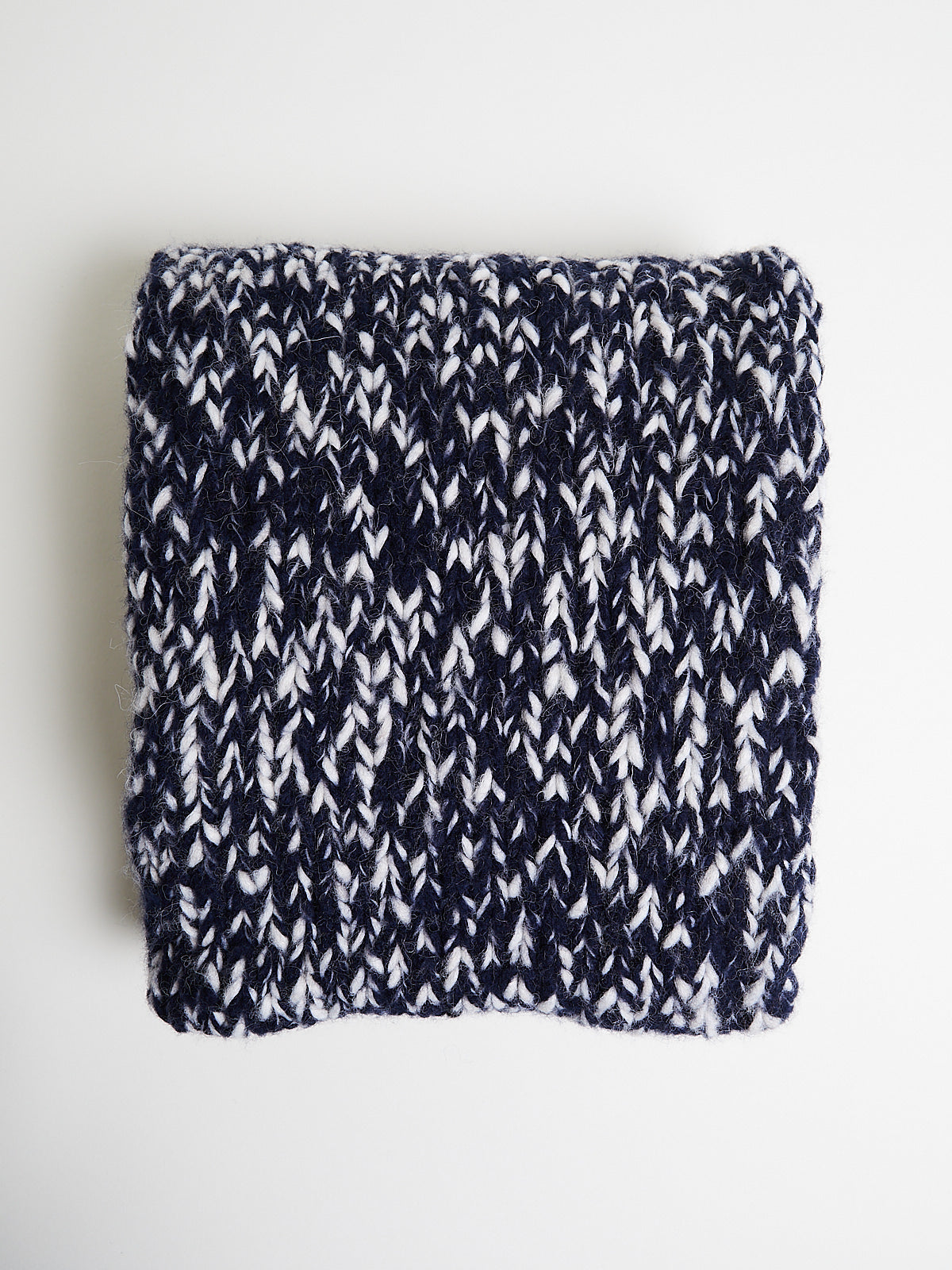 Handknitted scarf in black/white wool blend with an open, marled stitch with a pull-through style. This blend of wool, cashmere and superfine alpaca has been softly twisted with technical fibres for lightness and resilience.