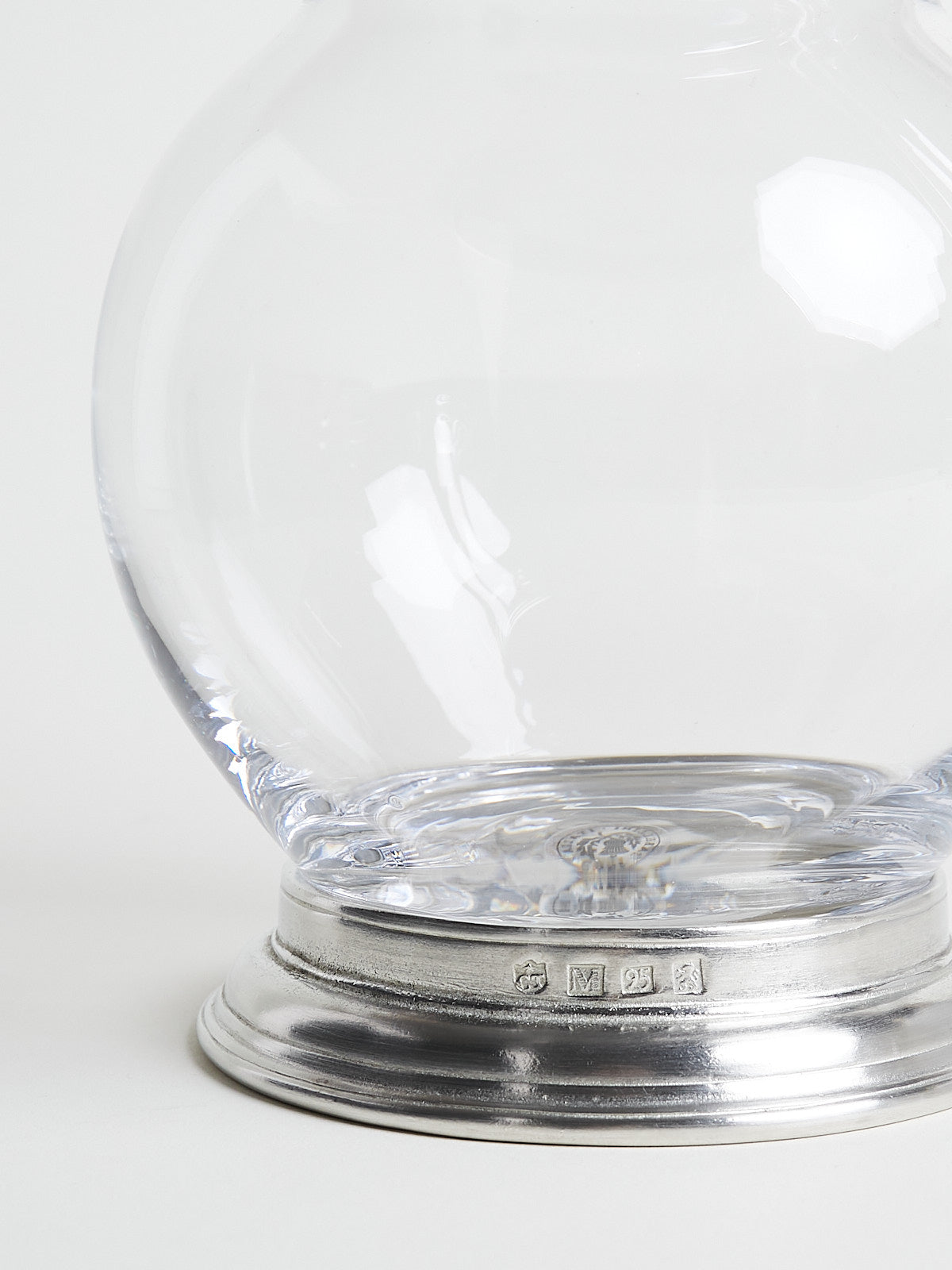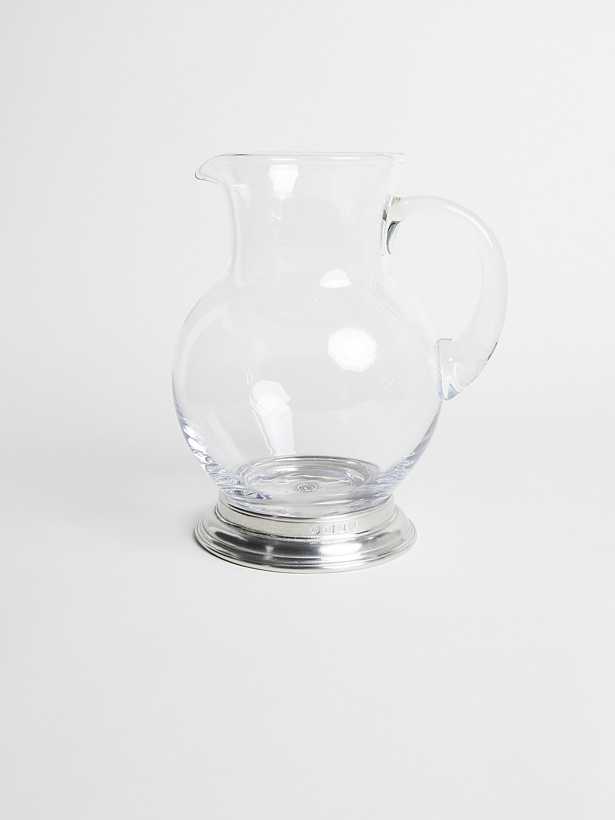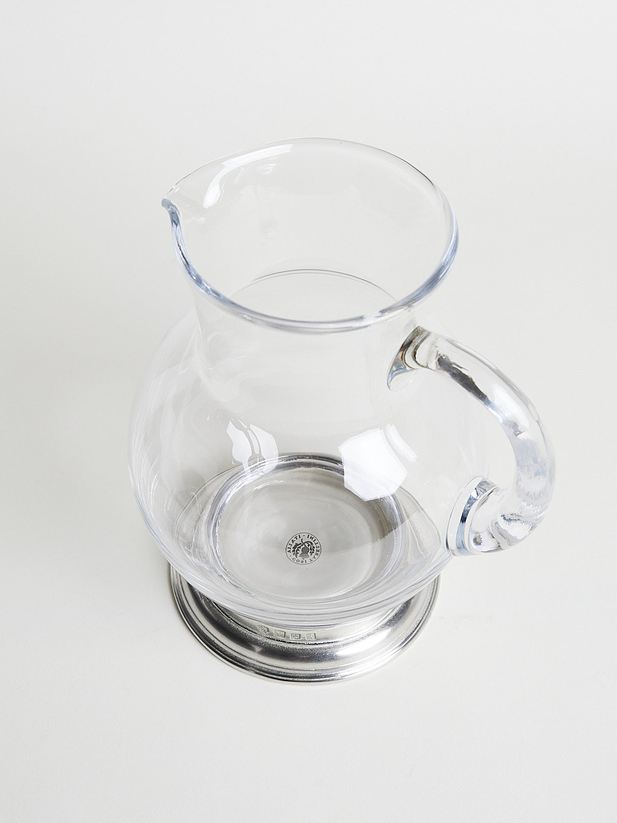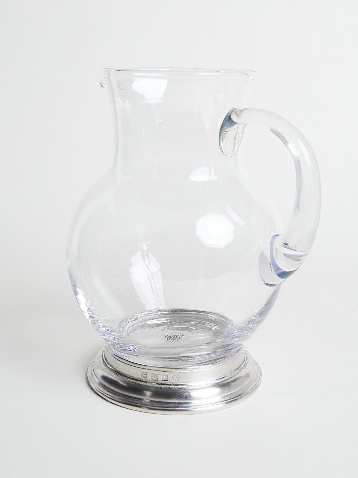 Pitcher with handle made from lead-free crystal glass and with a handcrafted base in Italian pewter.