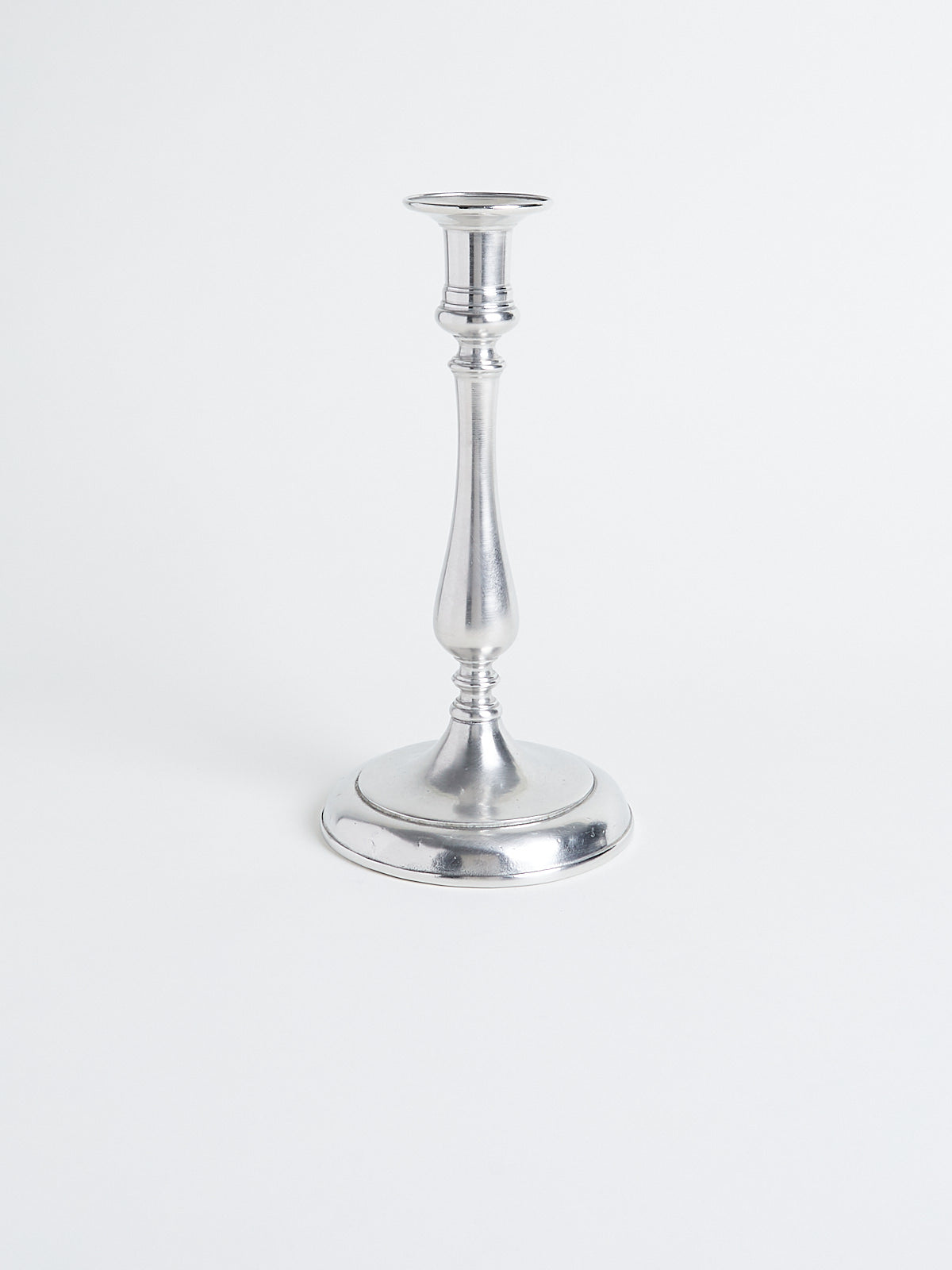 Handcrafted candlestick made from lead-free Italian pewter hand-finished to produce a subtle patina.