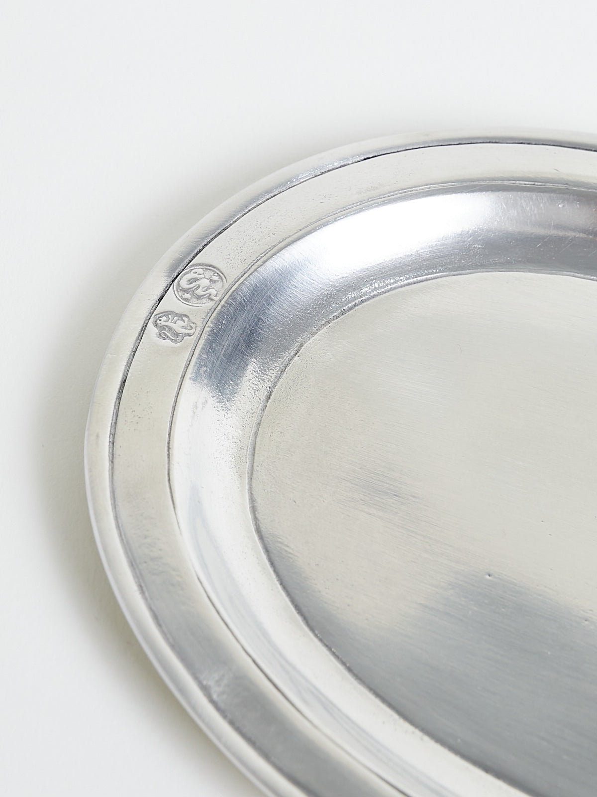 Handcrafted oval tray made from lead-free Italian pewter.