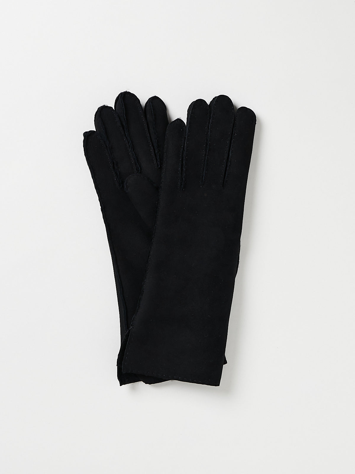 Gloves in black lambskin. Small slits at the hem and tonal stitching. Lined in shearling.