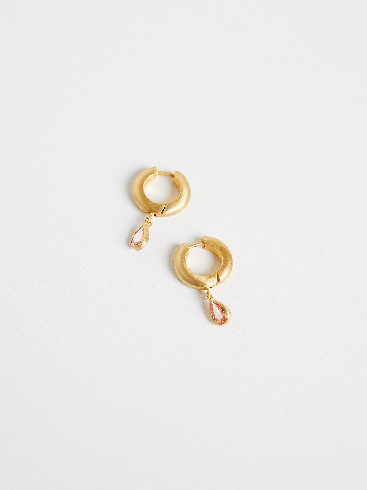 Ear hoops in 18k Fairmined yellow gold with pear-shaped sapphire drops. Features a hinged backing.