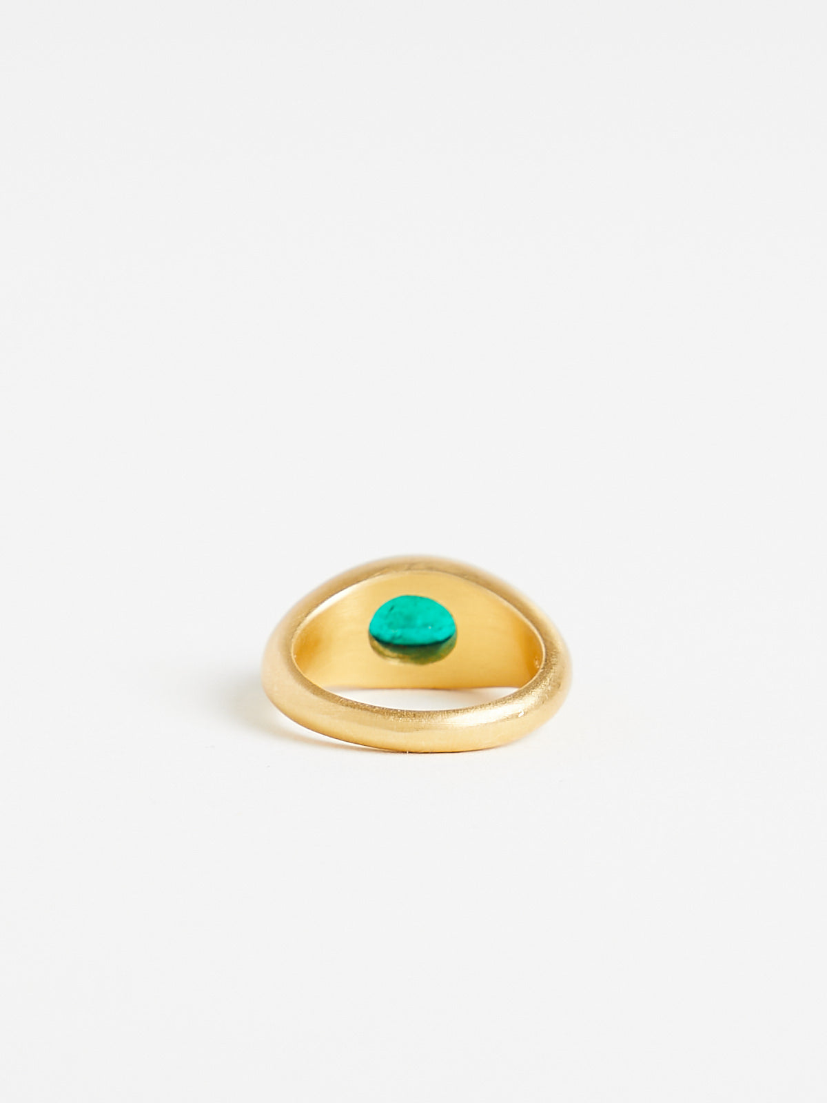 Handmade signet ring in 18k yellow gold with a 0.62ct Colombian emerald.