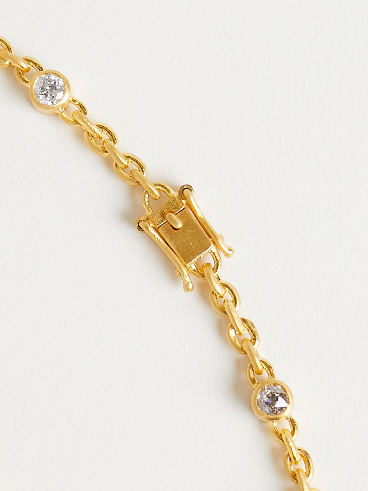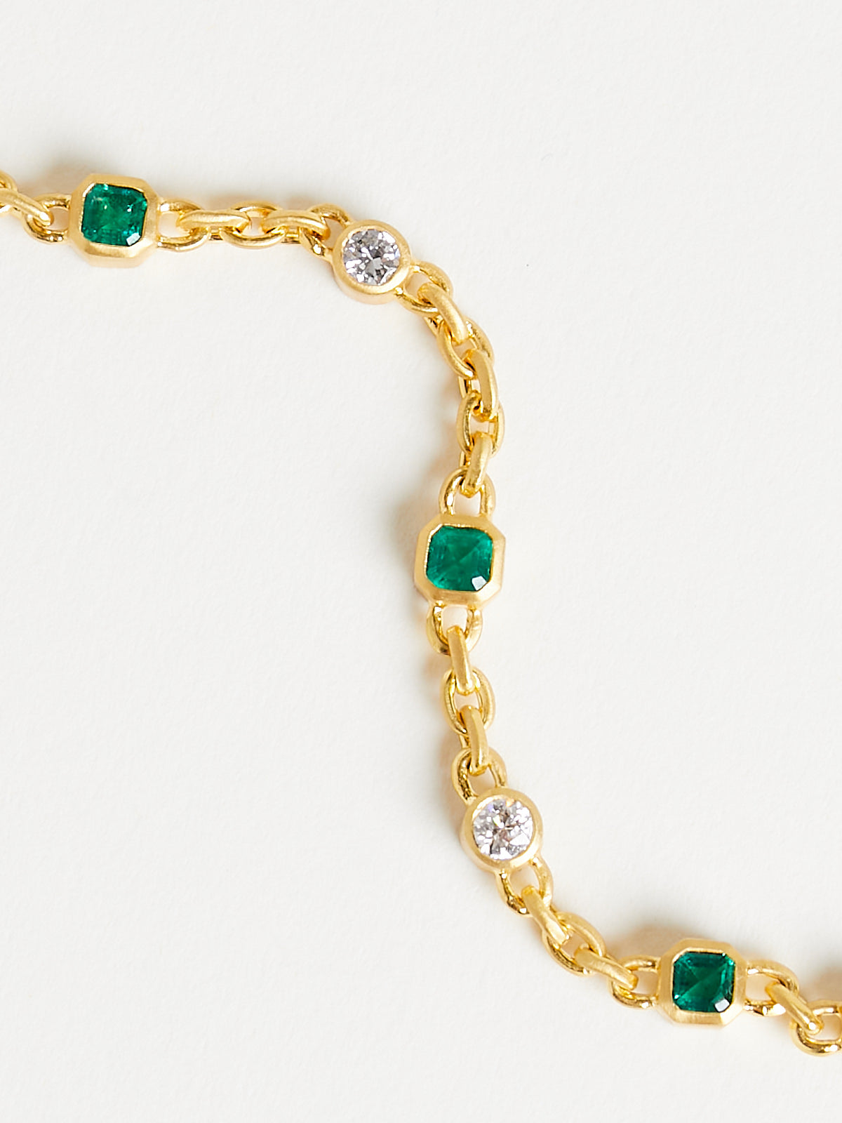 One of a Kind Emerald and Old Mine Cut Diamond Fairy Chain Bracelet in 18k Yellow Gold