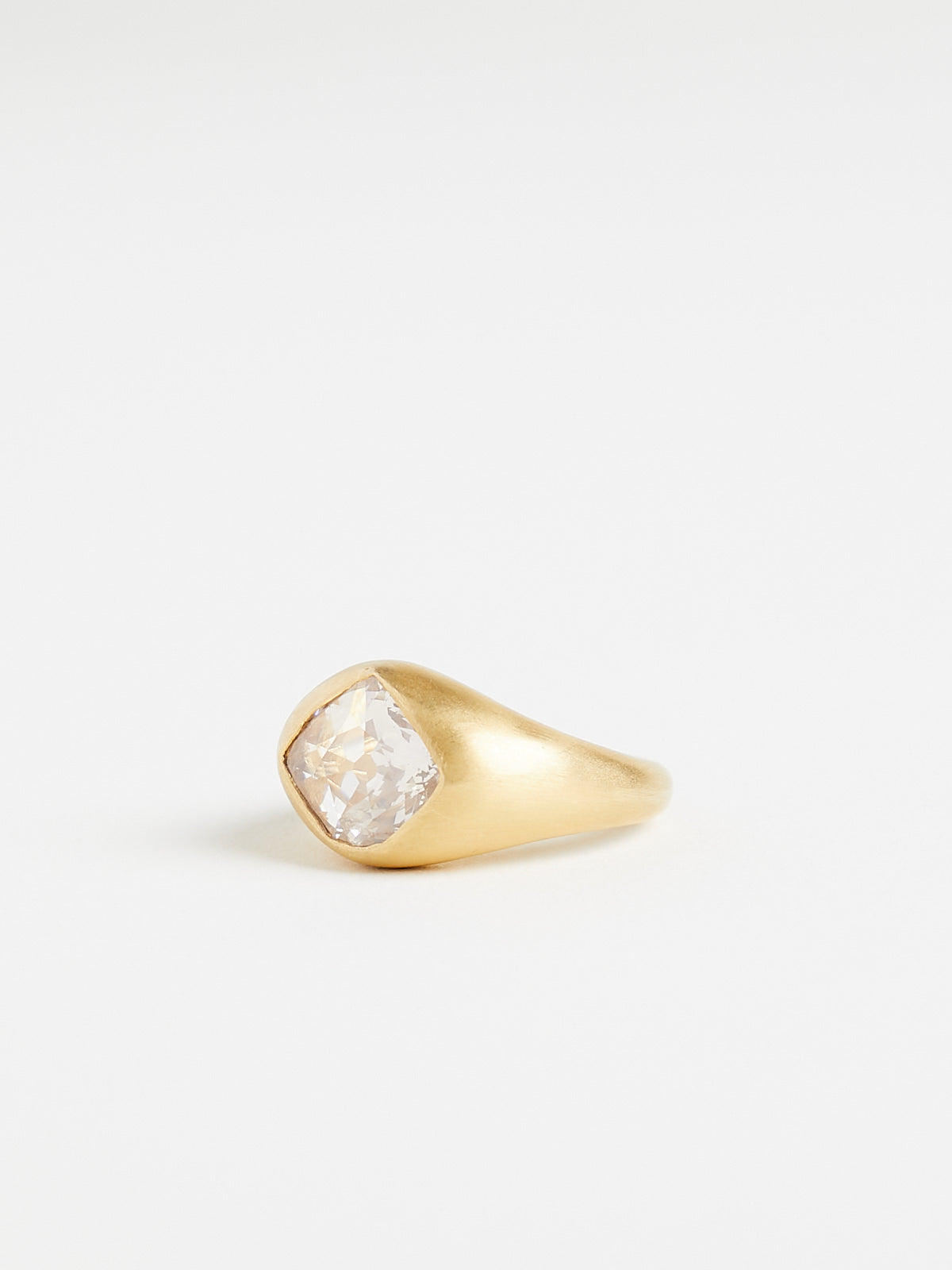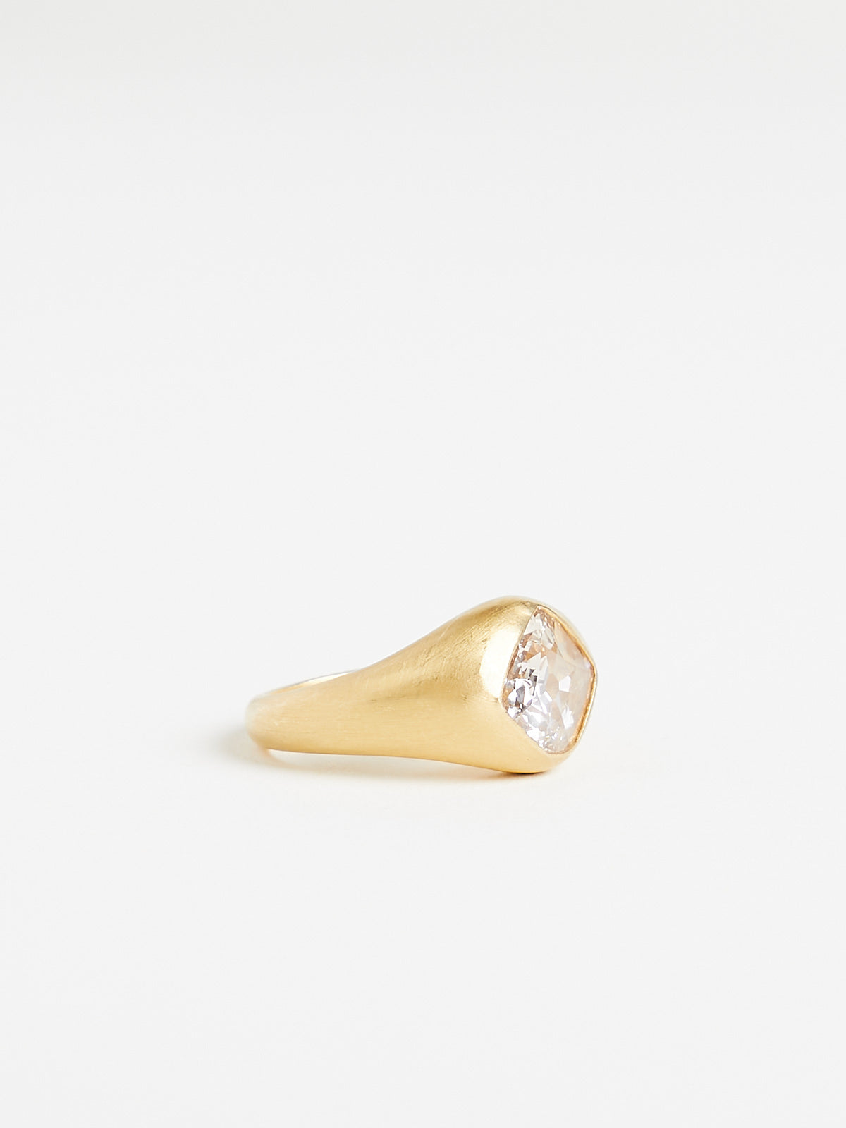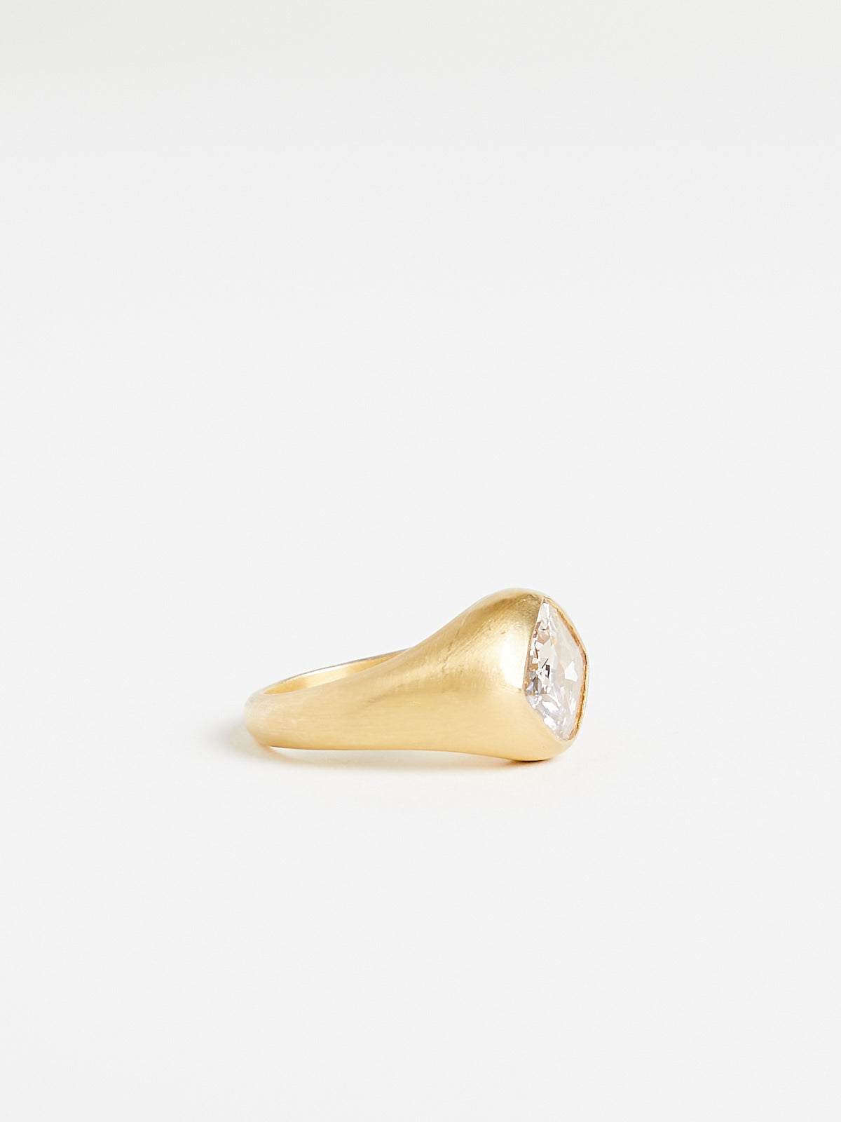 Handmade one of a kind signet ring in Fairmined 18k yellow gold with a rose-cut 1.5ct diamond.
