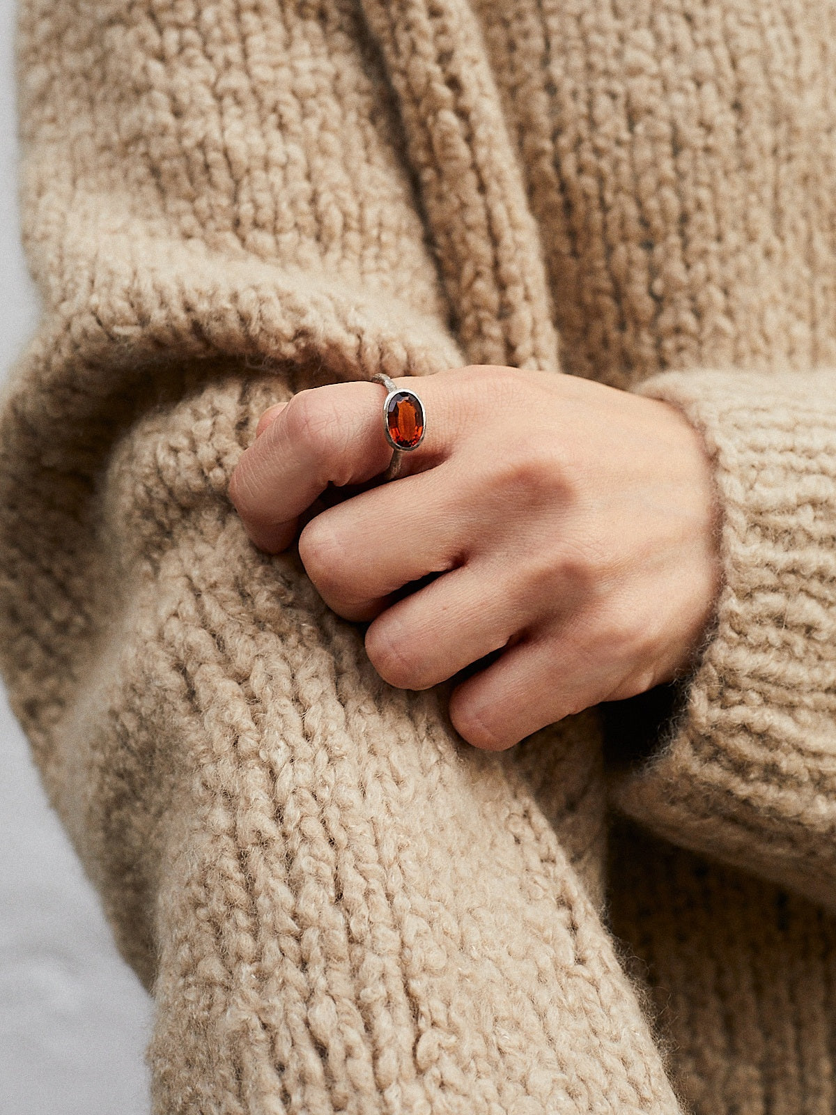 Ring with an organic and textured sterling silver band and an oval 3ct deep brown Madeira citrine.