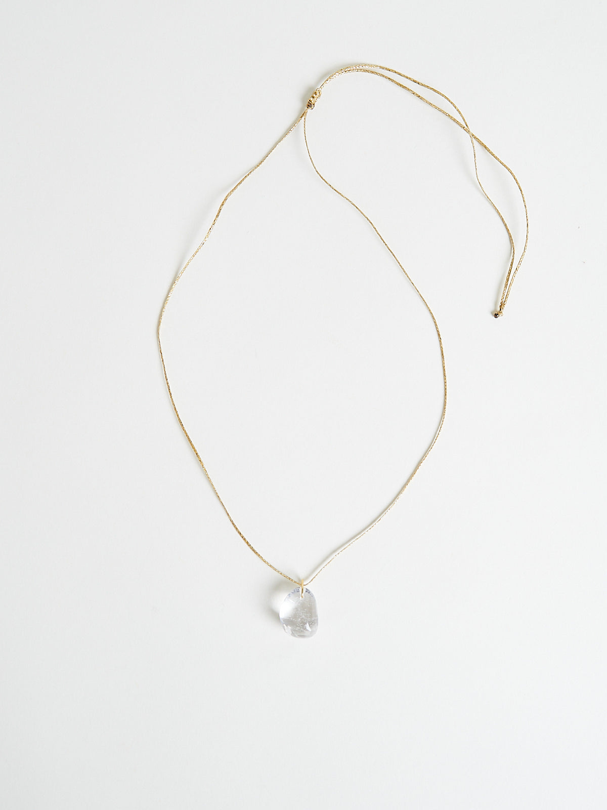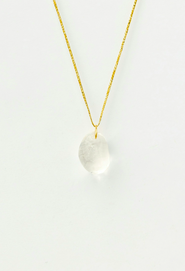 Drilled Pendant in 18k Yellow Gold with Colourless Tumbled Crystal
