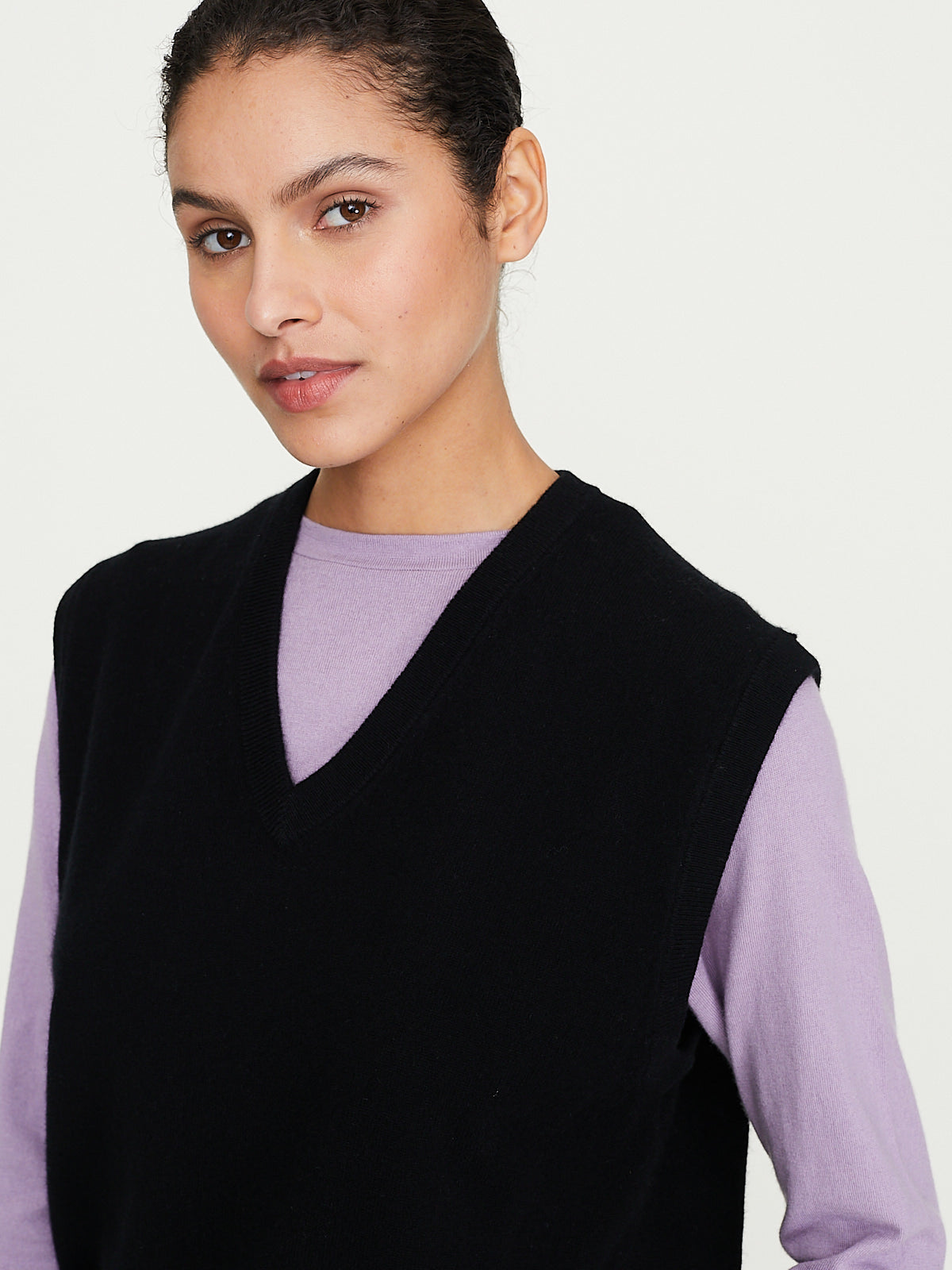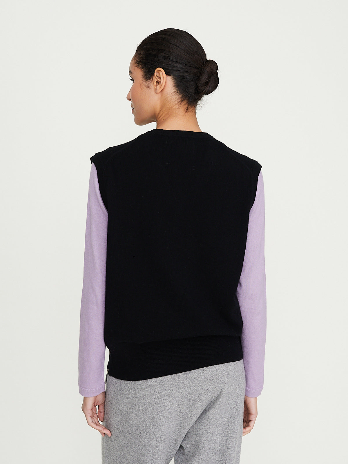 Classic vest in a black cashmere blend. V-neckline. Rib detail around the neck, armholes and bottom hem. Regular fit. Unisex.