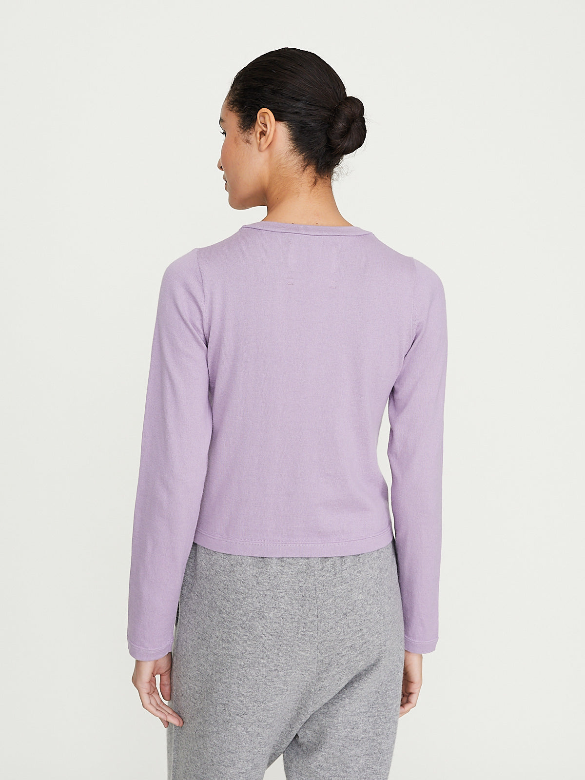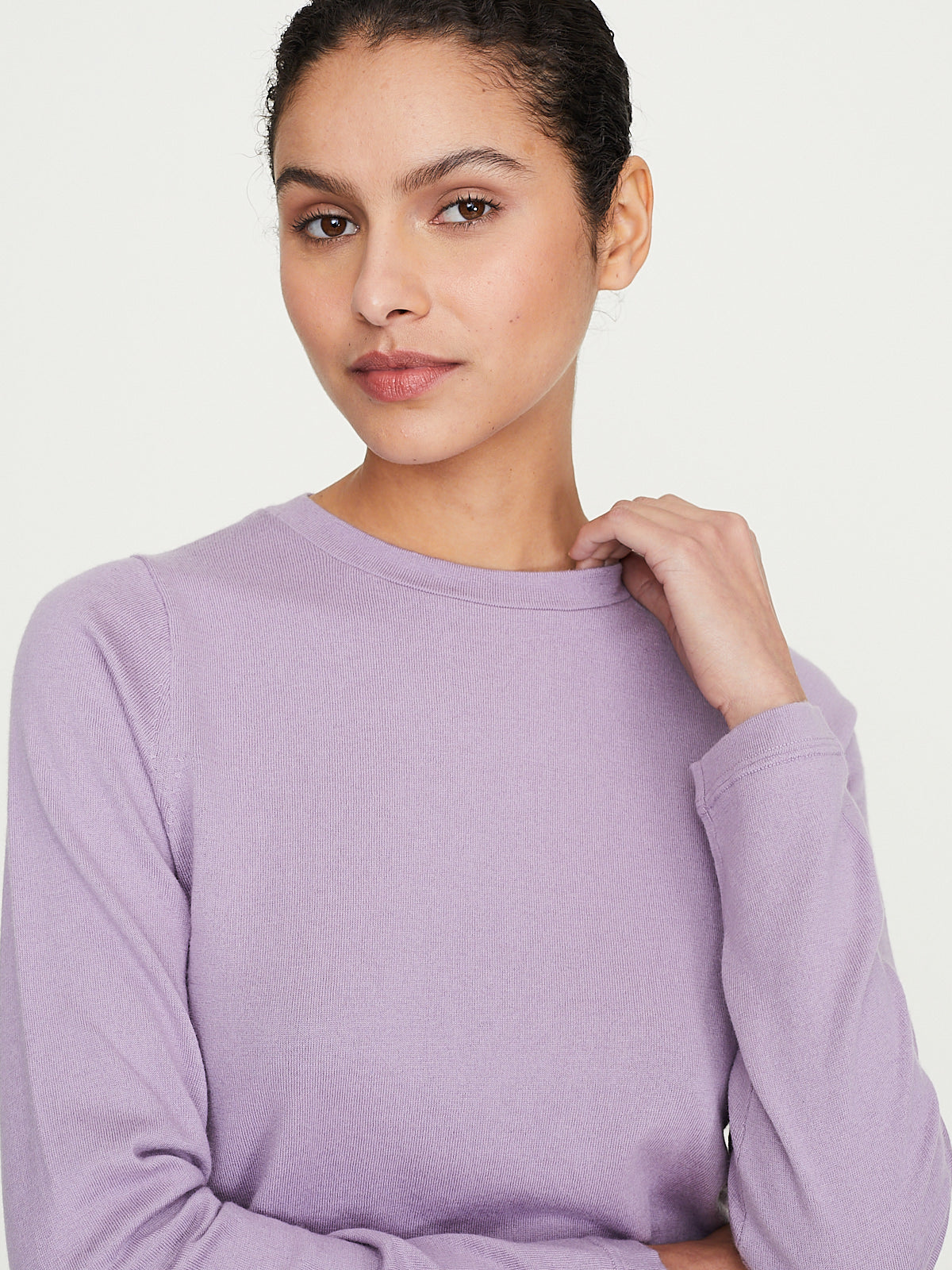 Classic long sleeved t-shirt in lilac breathable cotton/cashmere. Crewneck. Boxy and regular  fit.