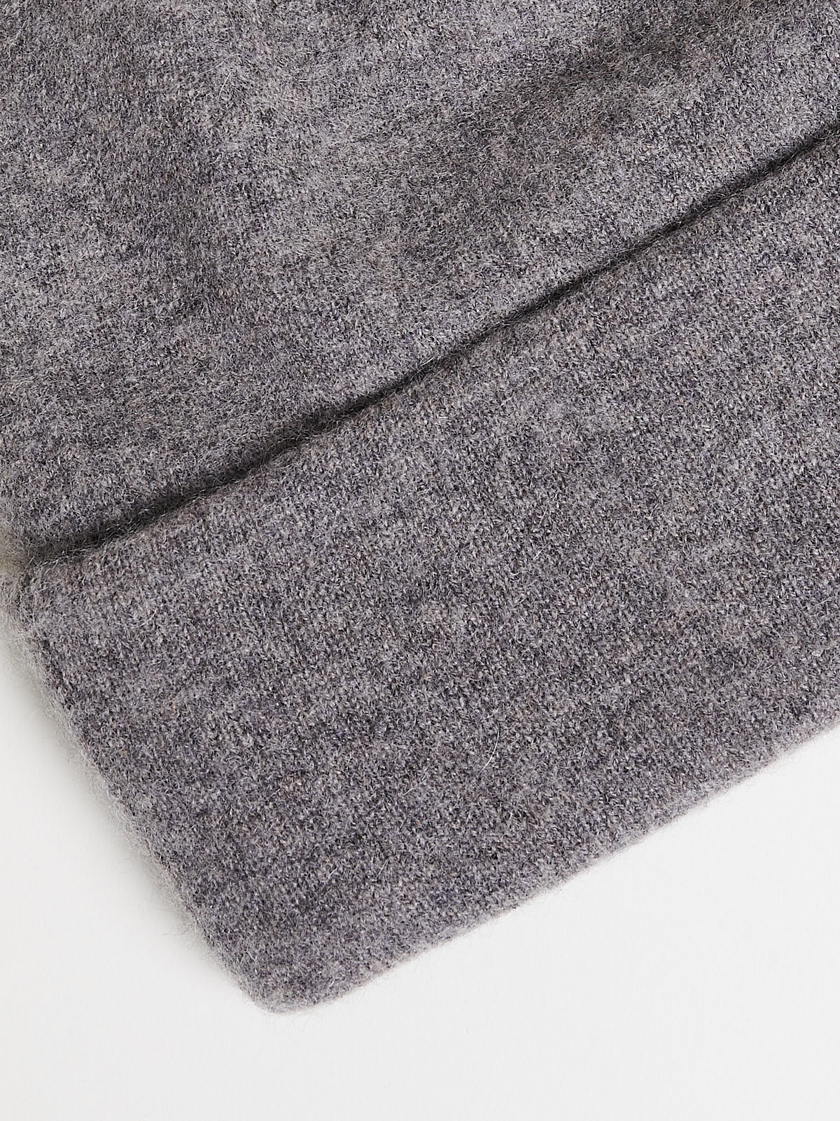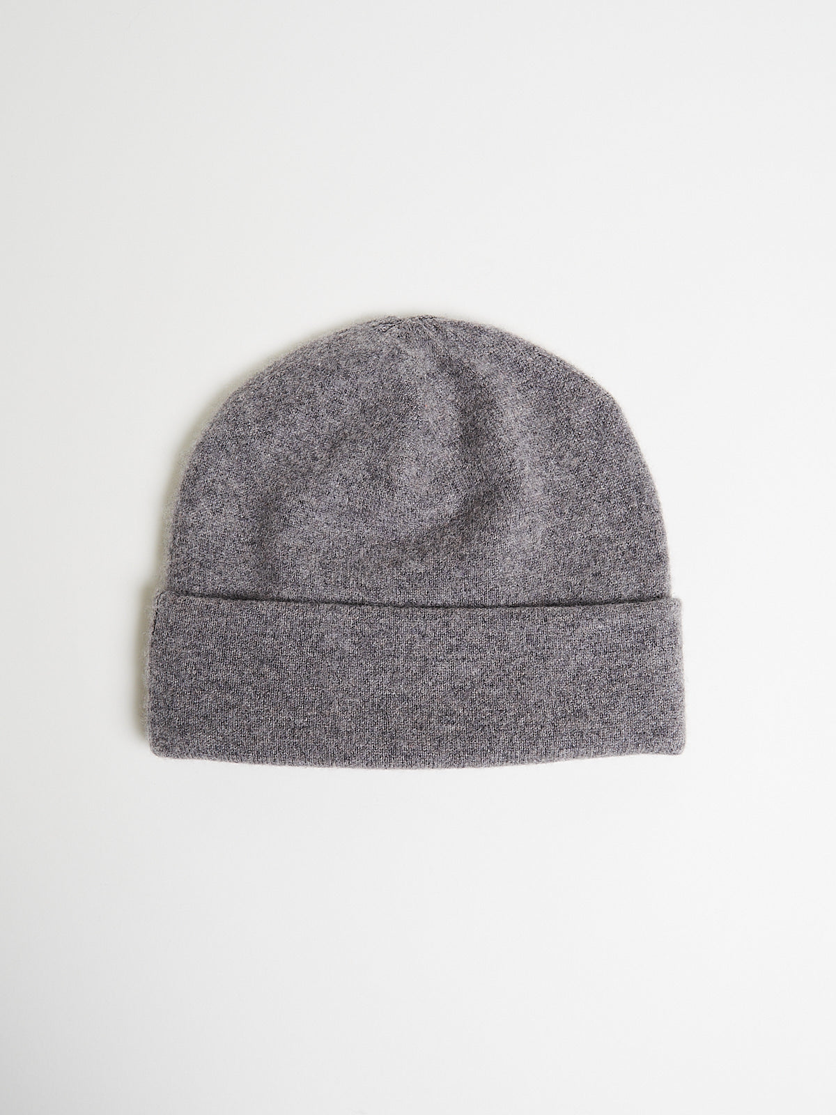 Beanie in brown melange Mongolian cashmere. Features a turn-up cuff.