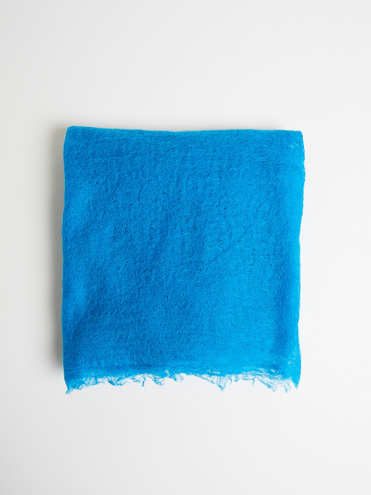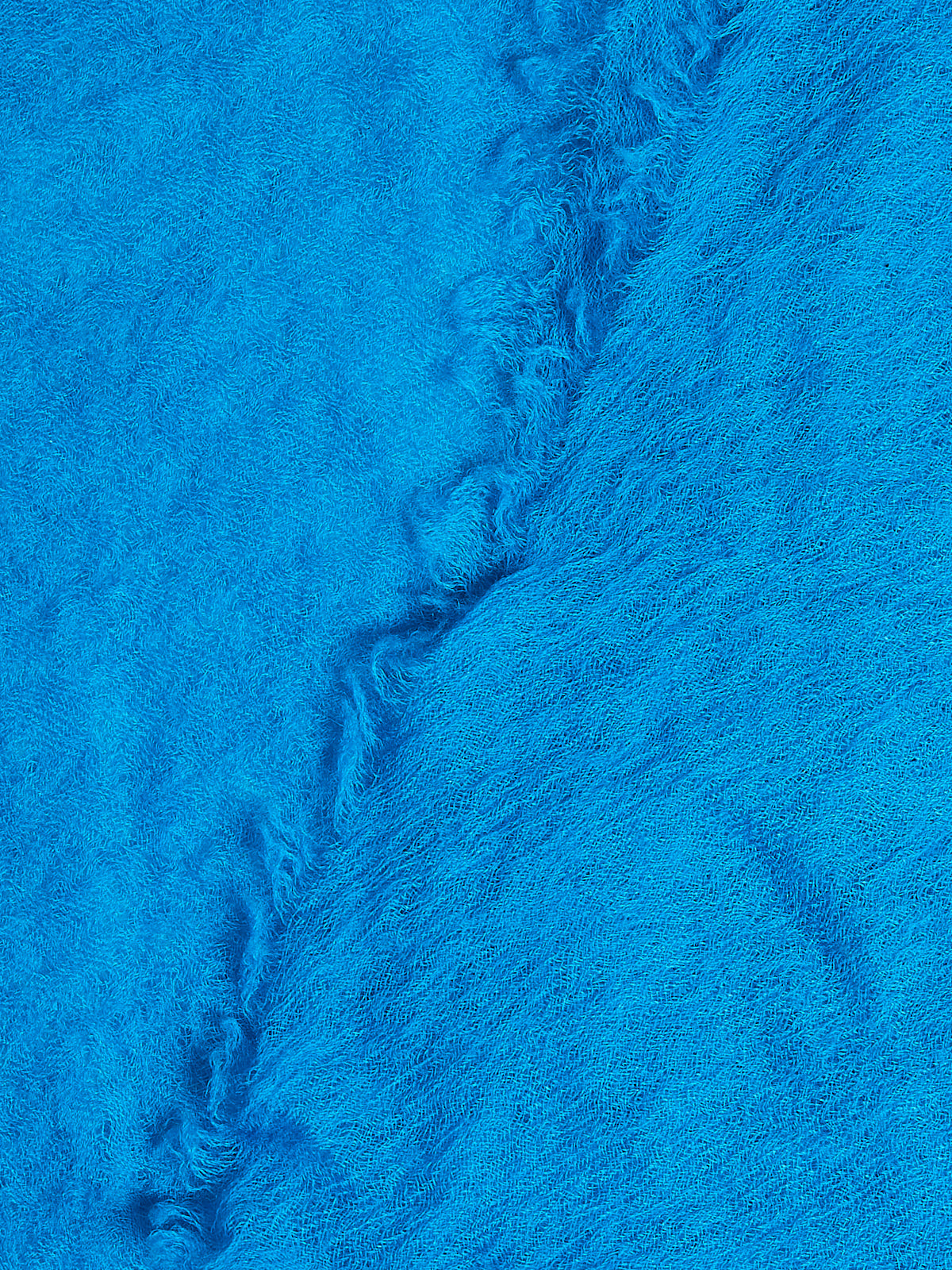 Woven scarf in sheer electric blue Mongolian cashmere. Raw edges.