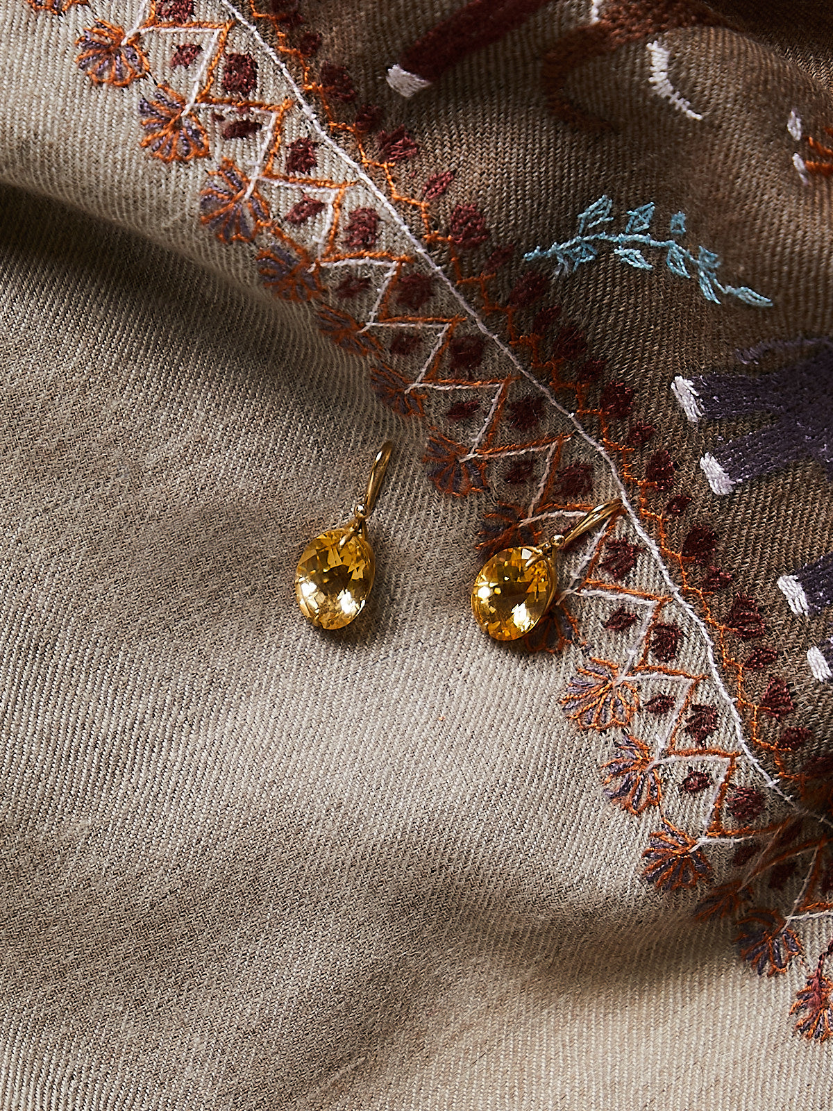 Earrings in 18k yellow gold with oval faceted citrine drops. Features an ear wire backing.