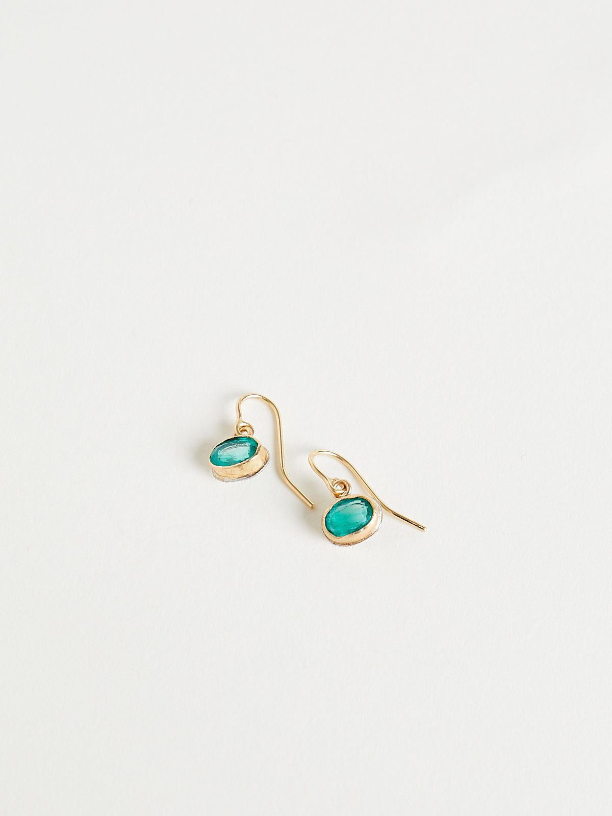 1.56ct Oval Colombian Emerald Single Drop Earrings in 18k Gold and Silver
