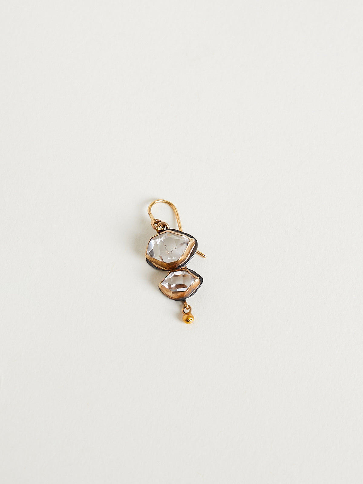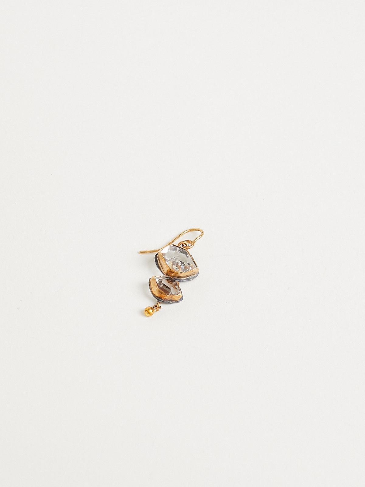 Herkimer Diamond Double Drop Earrings with 24k Gold Ball in 18k and Silver