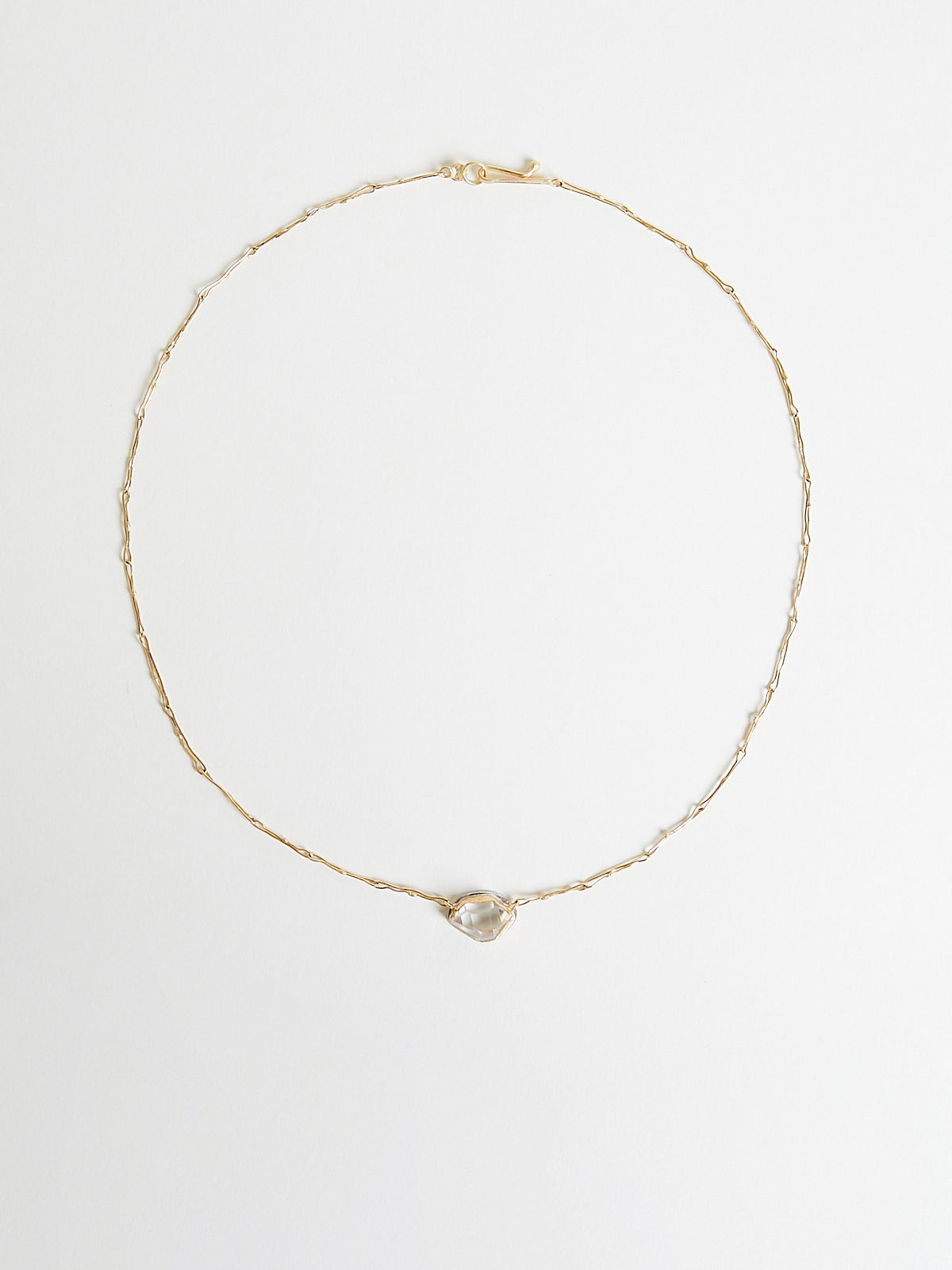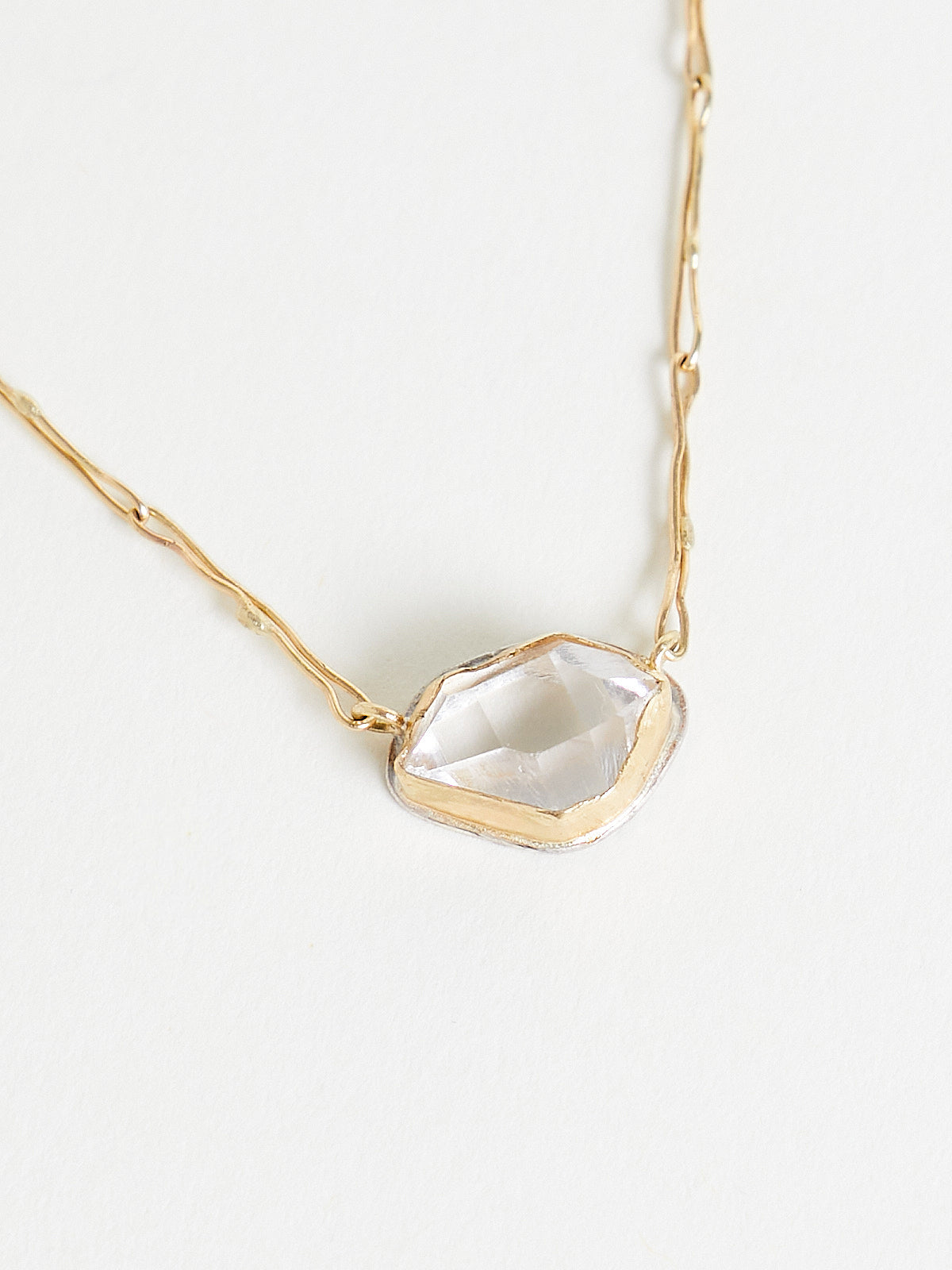 Herkimer Diamond Echo Necklace with Handmade Chain in 18k Gold