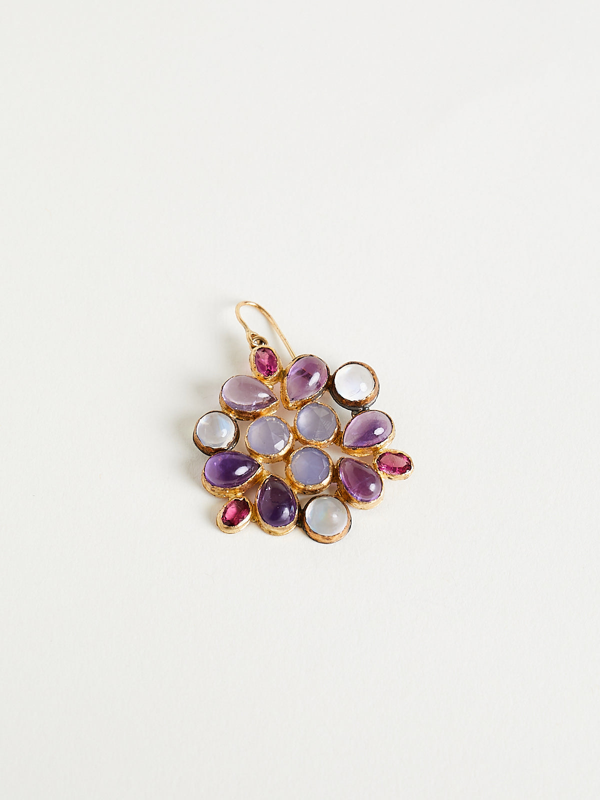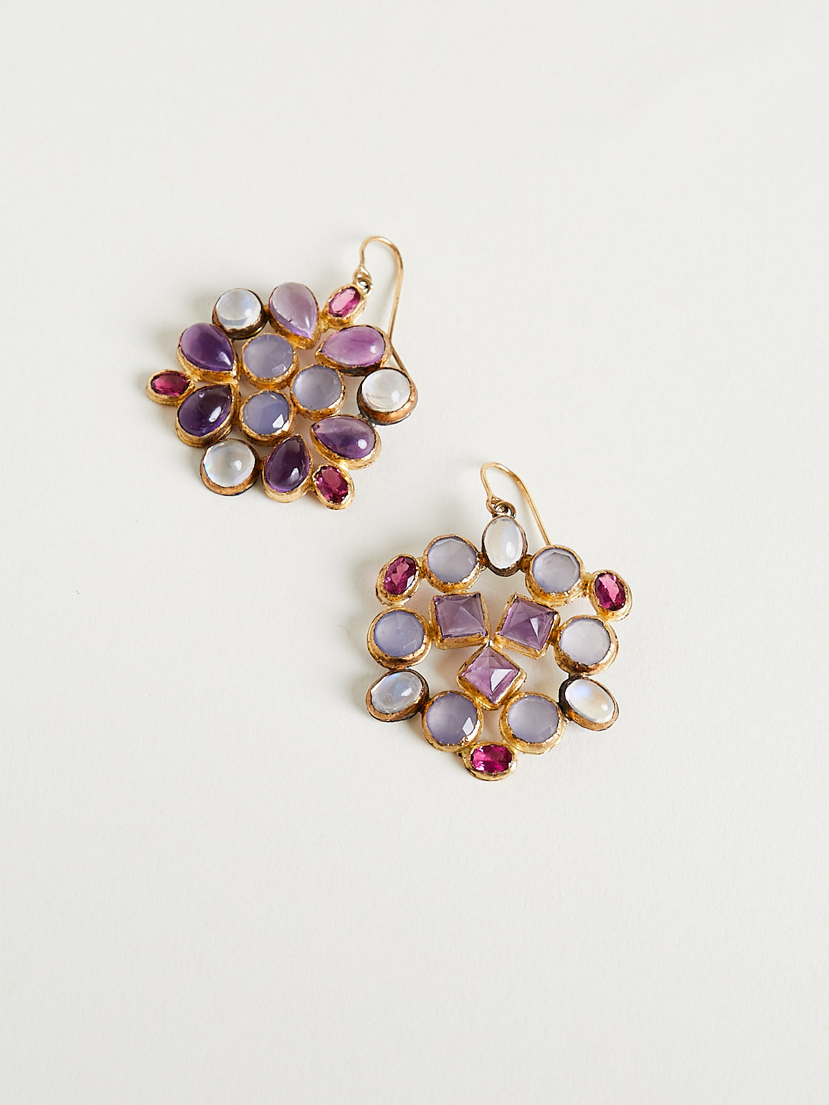Smaller Kaleidoscope Earrings in all 18k Gold with 2.48ct Pink Tourmaline, 12.9ct Amethysts, 5.33ct Moonstone, 14.46ct Chalcedony