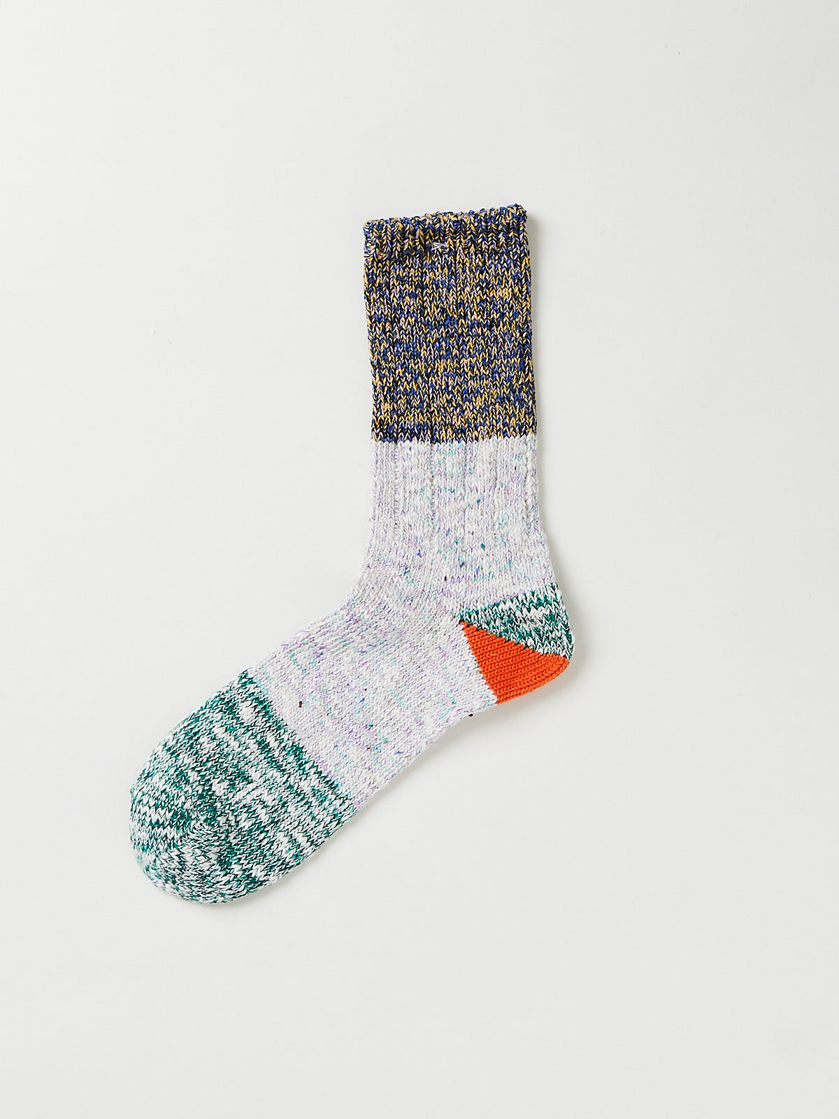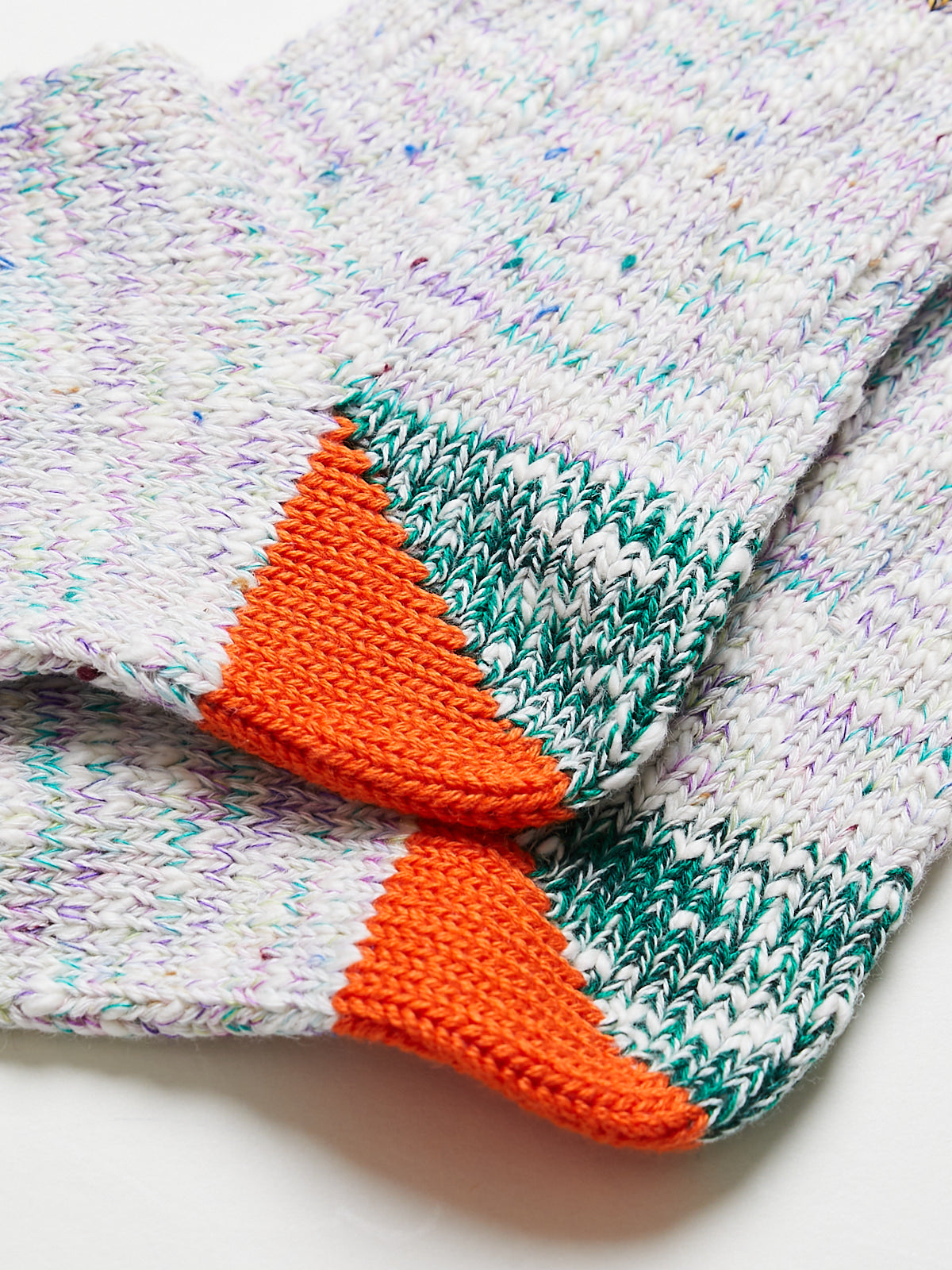 Chunky-knit socks in a cotton blend with a colourblock design and two-toned details. Features a rib detail on the leg.