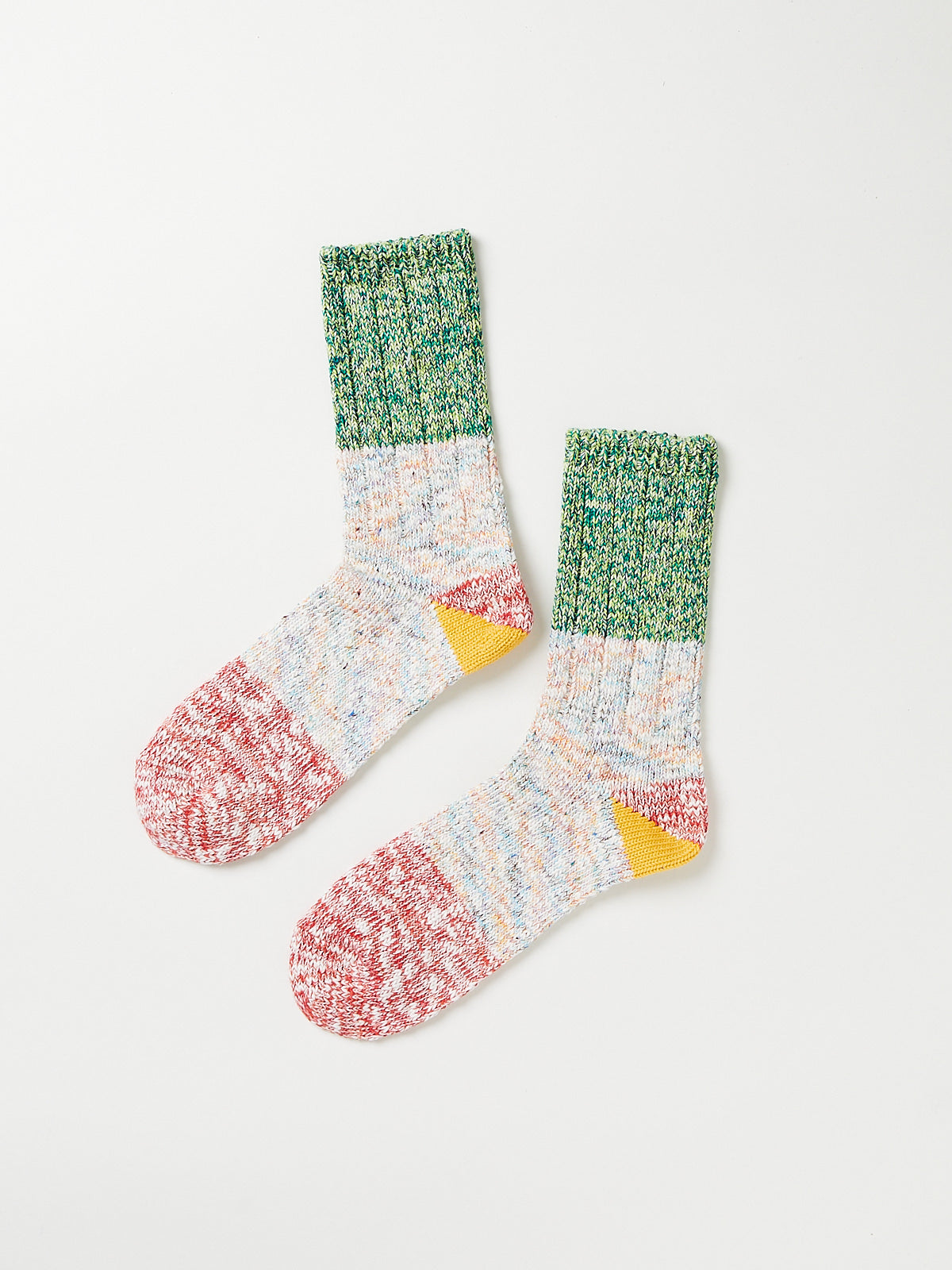 Chunky-knit socks in a cotton blend with a colourblock design and two-toned details. Features a rib detail on the leg.