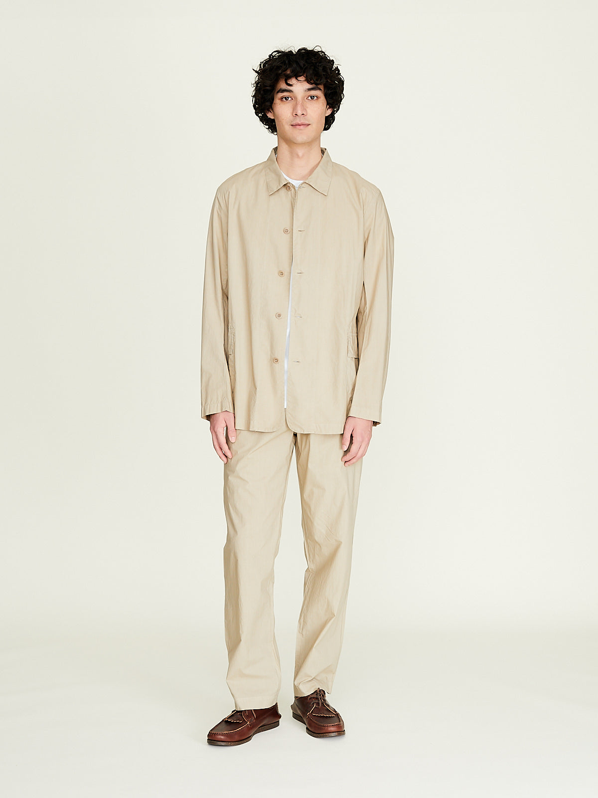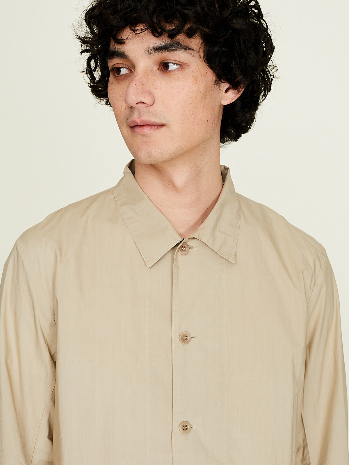 Overshirt in beige cotton. Pointed collar and a front button fastening. Flap pockets on the front. Regular fit.