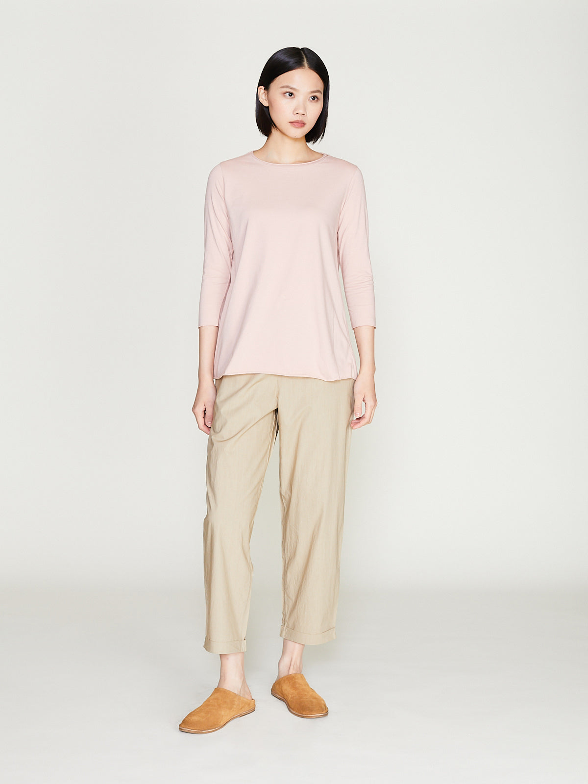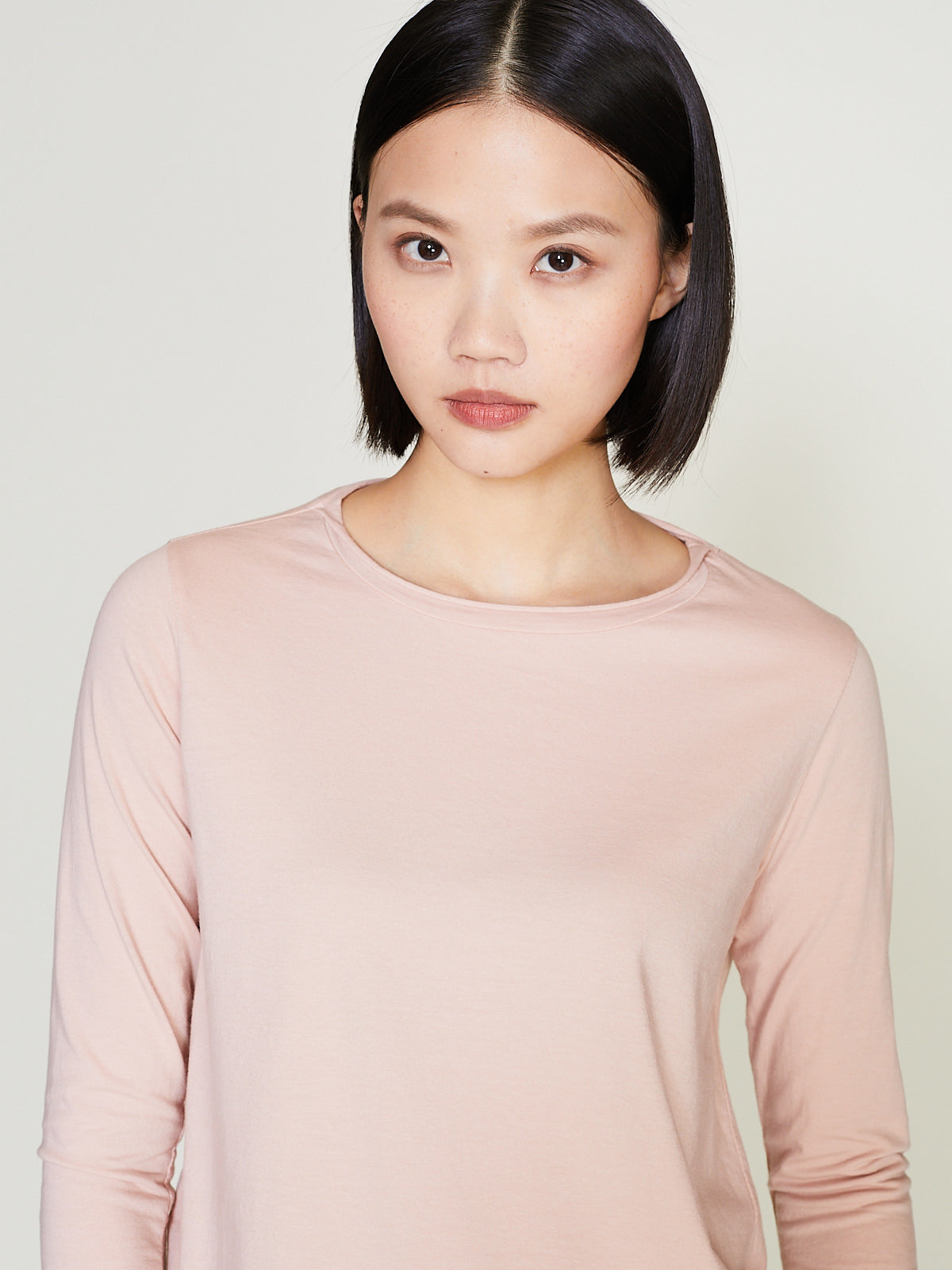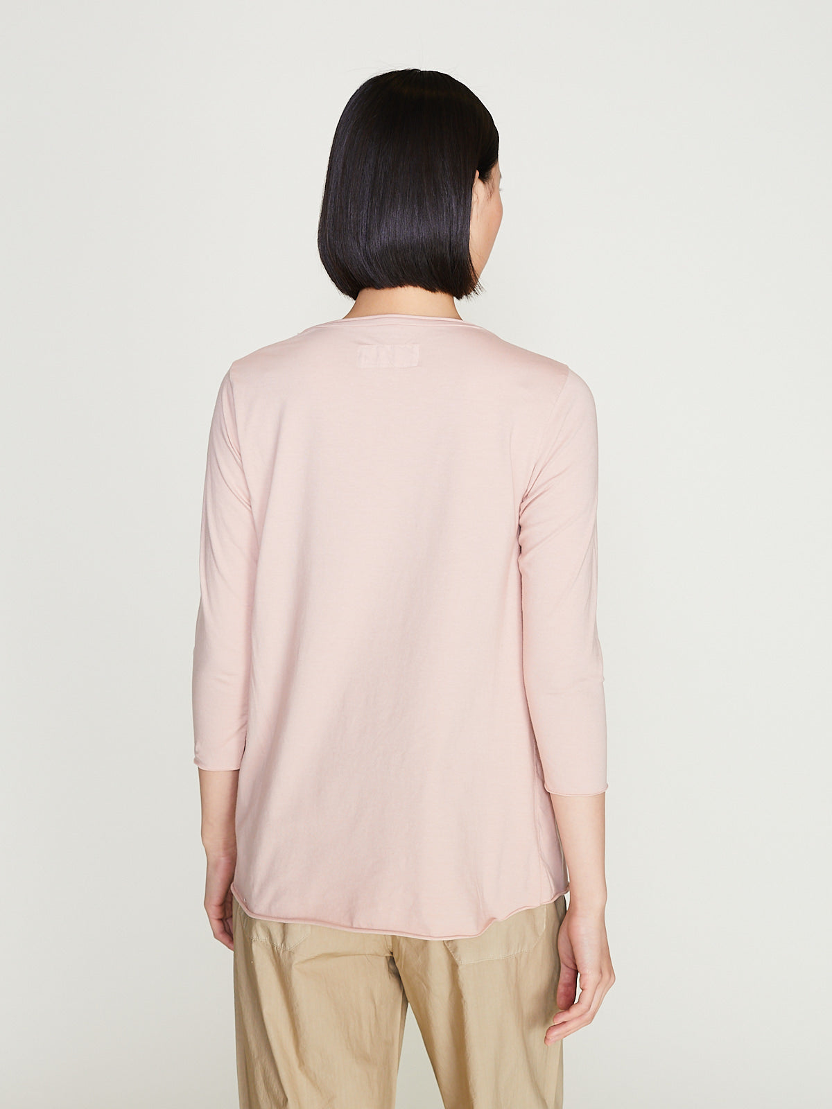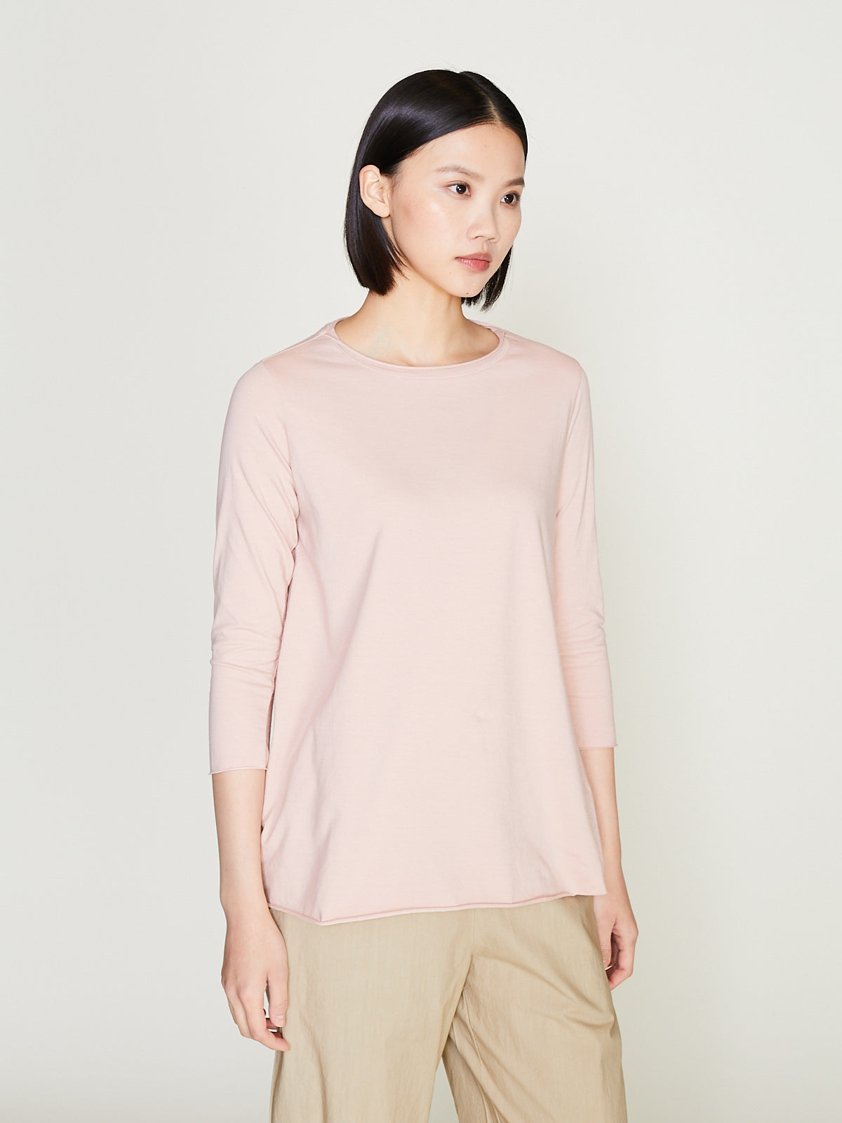 T-shirt in nude pink cotton jersey. Round neckline and 3/4 sleeves. Raw cuffs and bottom hem. Relaxed fit.