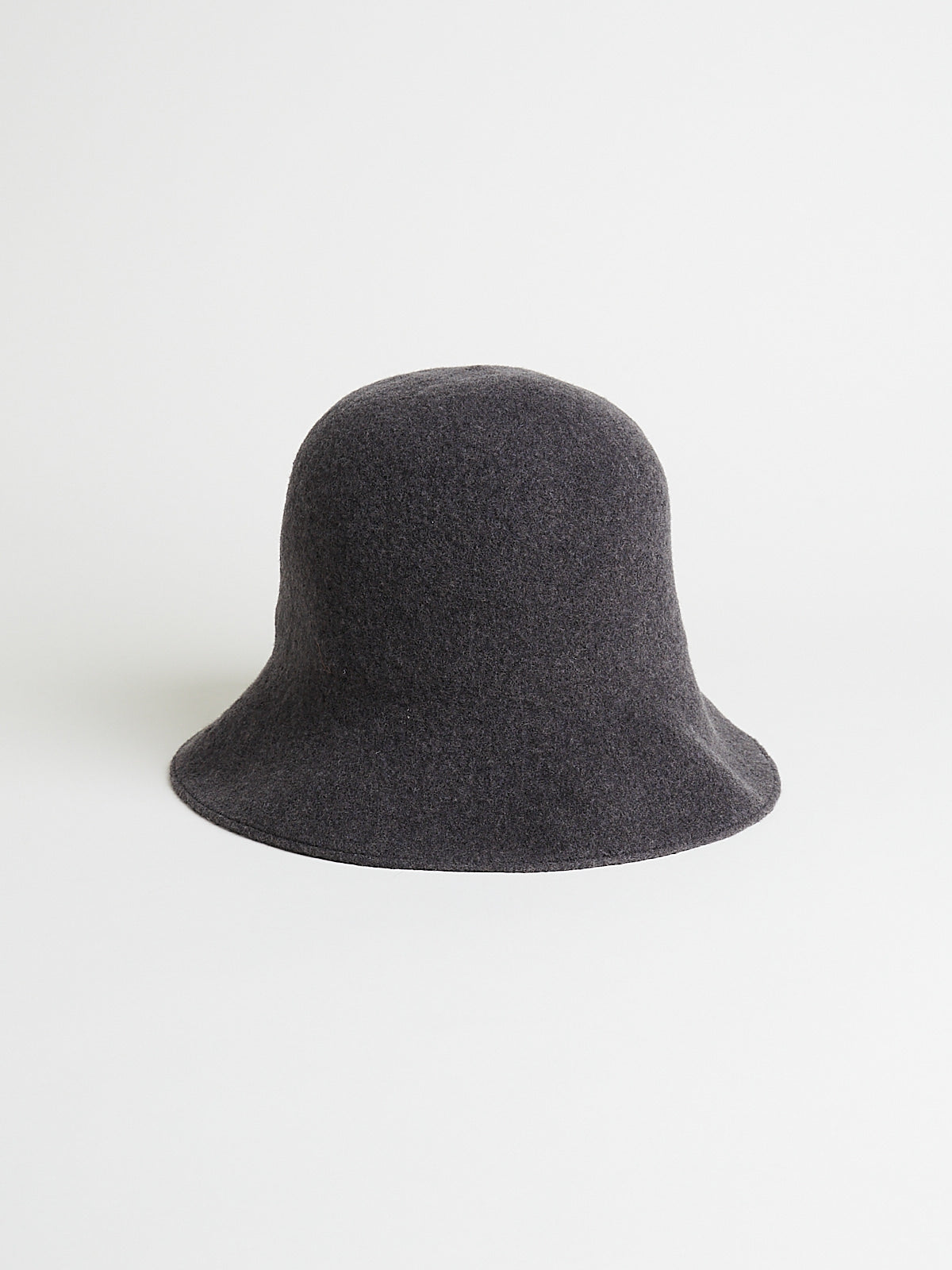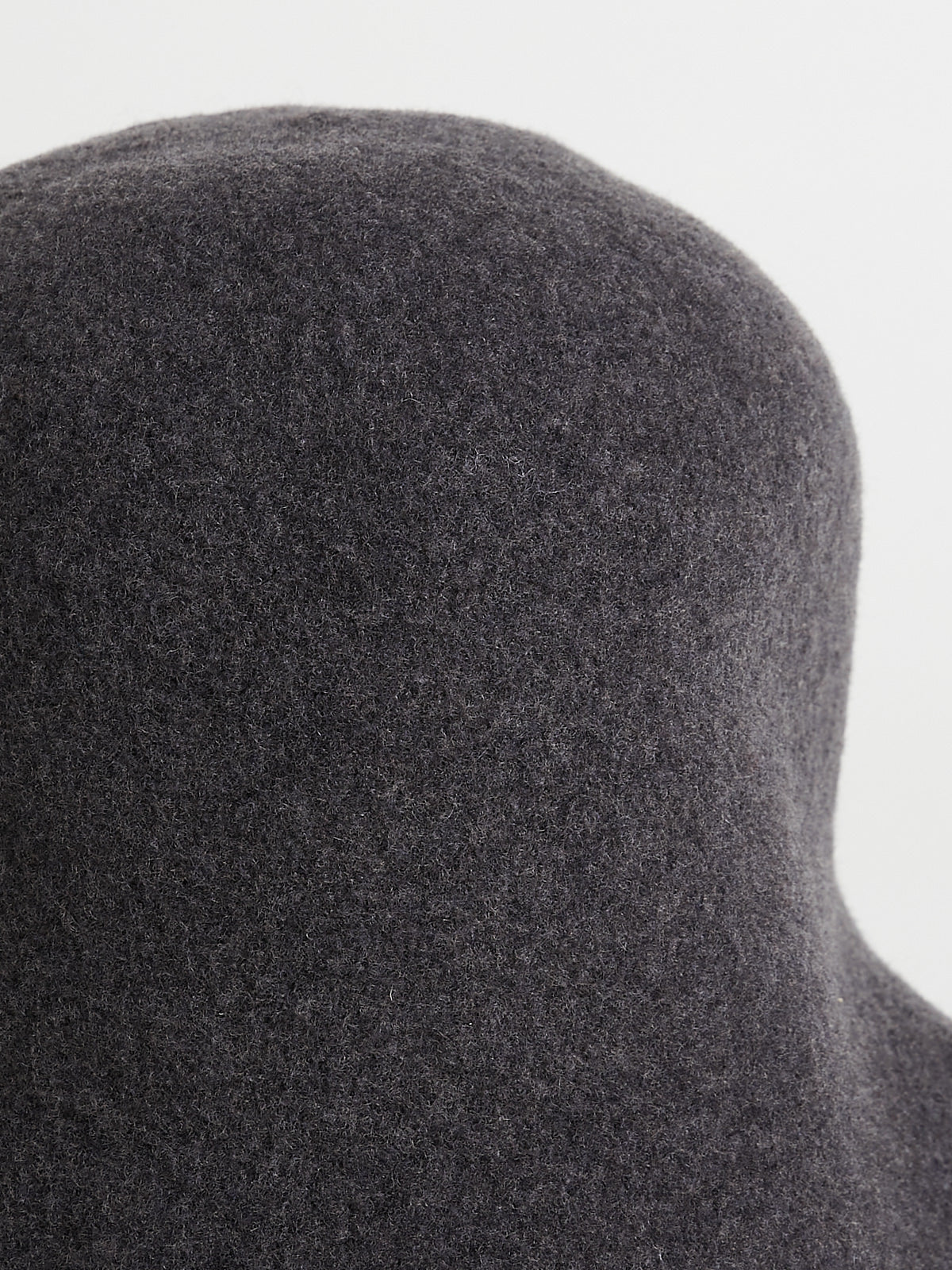 Knitted wide bell hat in felted taupe lambswool. Brim can be worn up or down.
