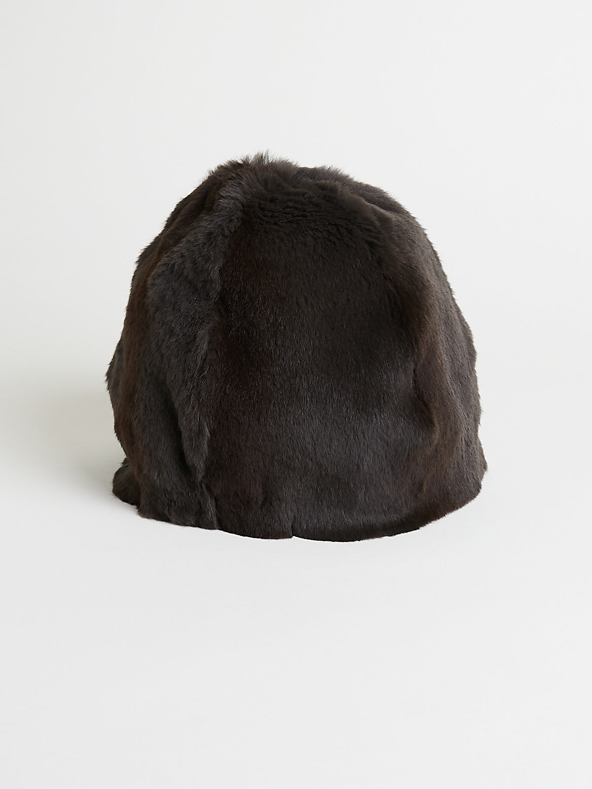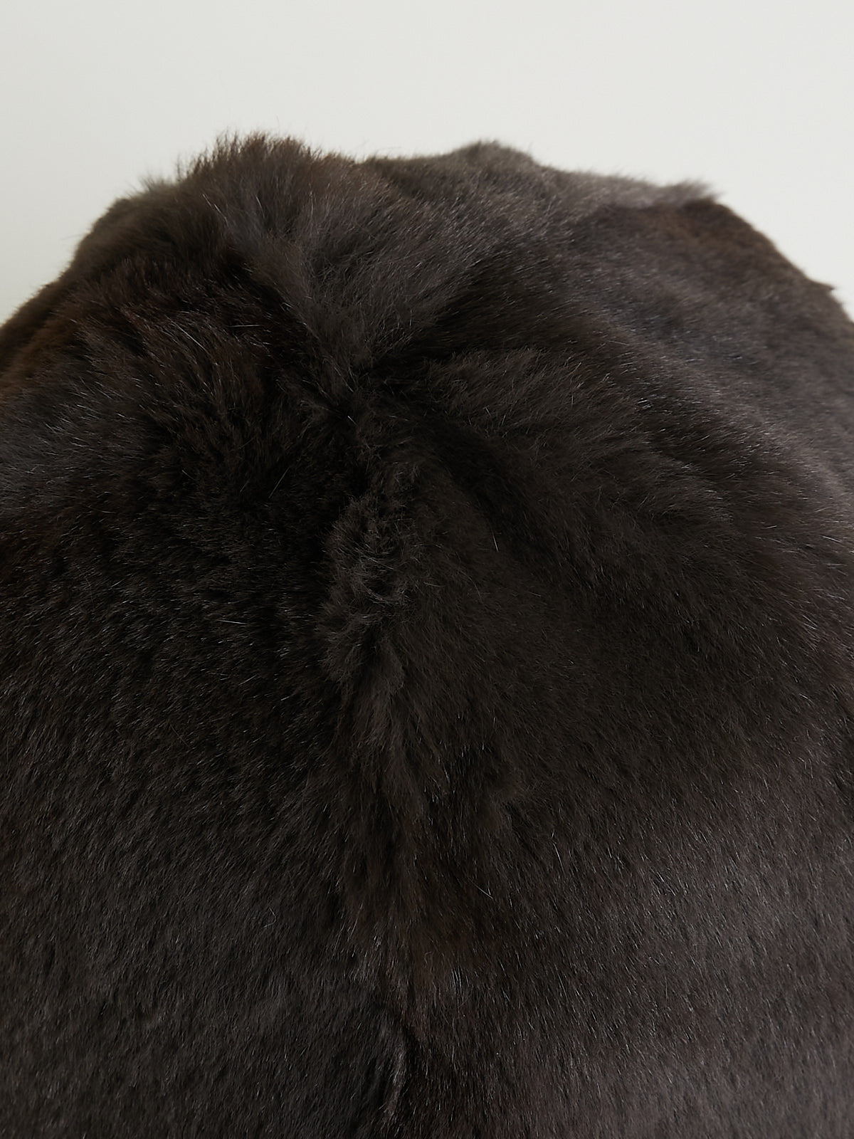 Classic lightweight beanie in brown fine, cropped and short piled rabbit hair. Unisex.