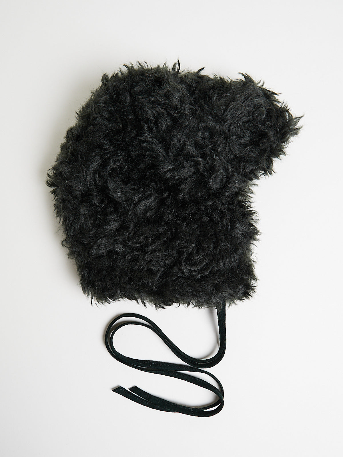 Russian hat in soft and curly grey fake fur made from mohair, sourced from the German soft toymaker Steiff. Fully lined in the same fur, Features ear flaps that can be tied on the crown.