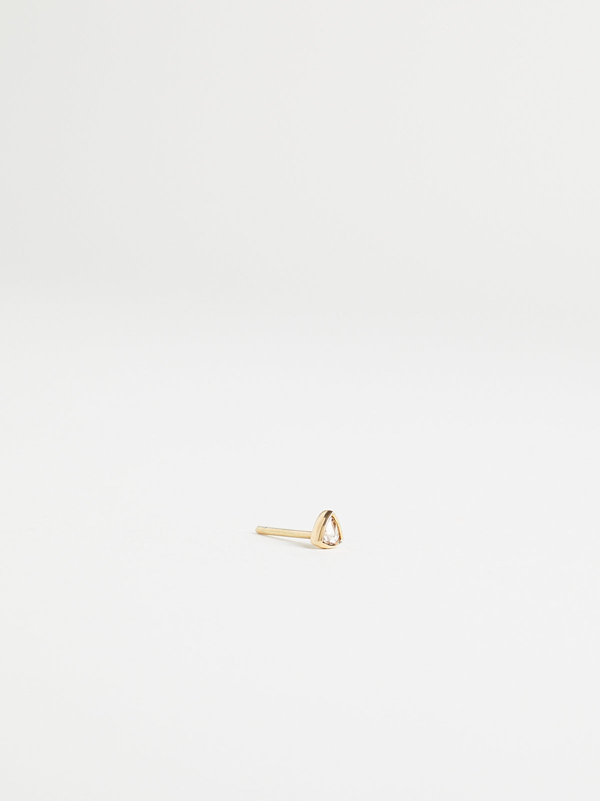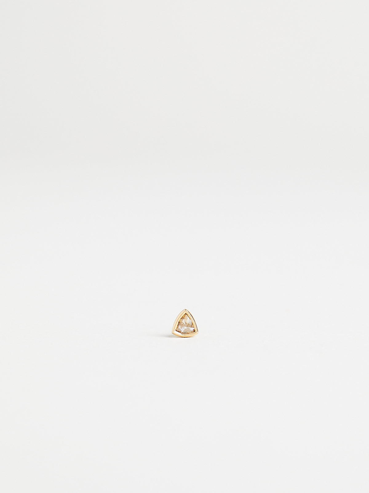 Single ear stud in 18k yellow gold with a triangular 0.08ct rose-cut brown diamond. Features an ear post backing. Sold as a single.