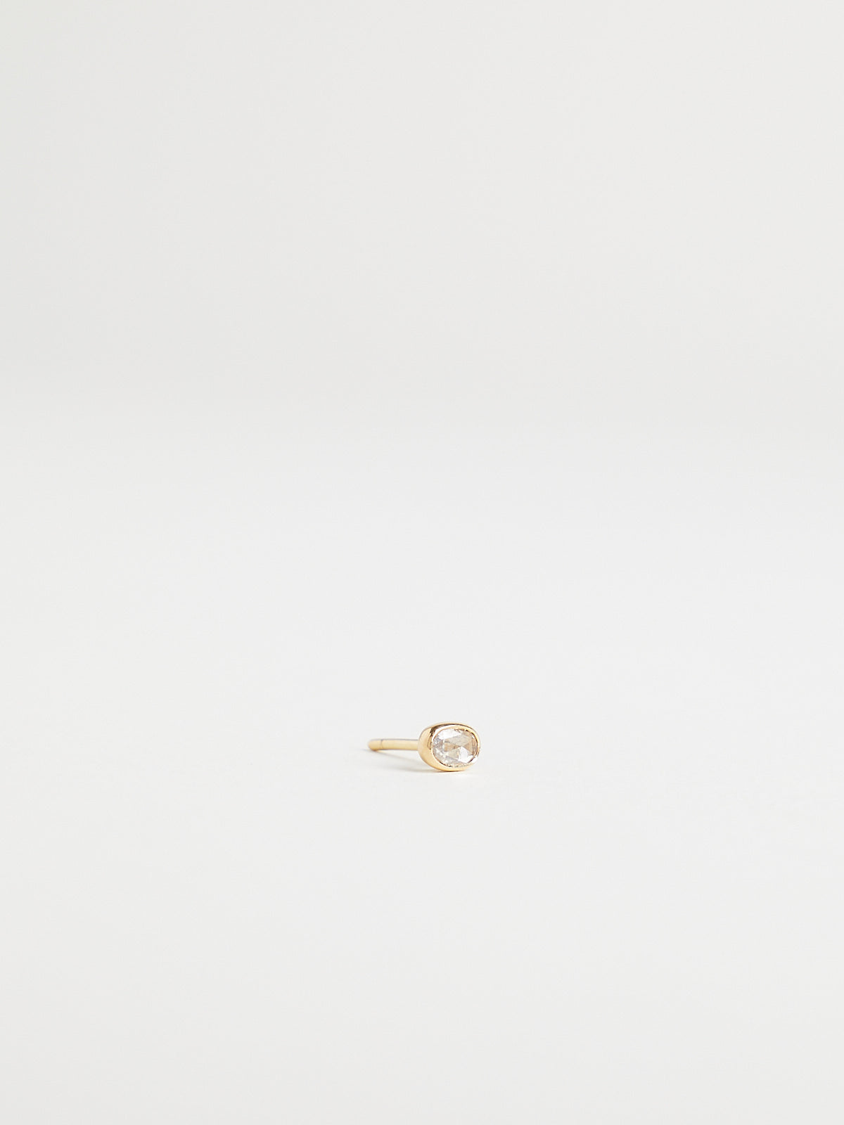 Single ear stud in 18k yellow gold with an oval rose-cut 0.26ct brown diamond. Features an ear post backing. Sold as a single.