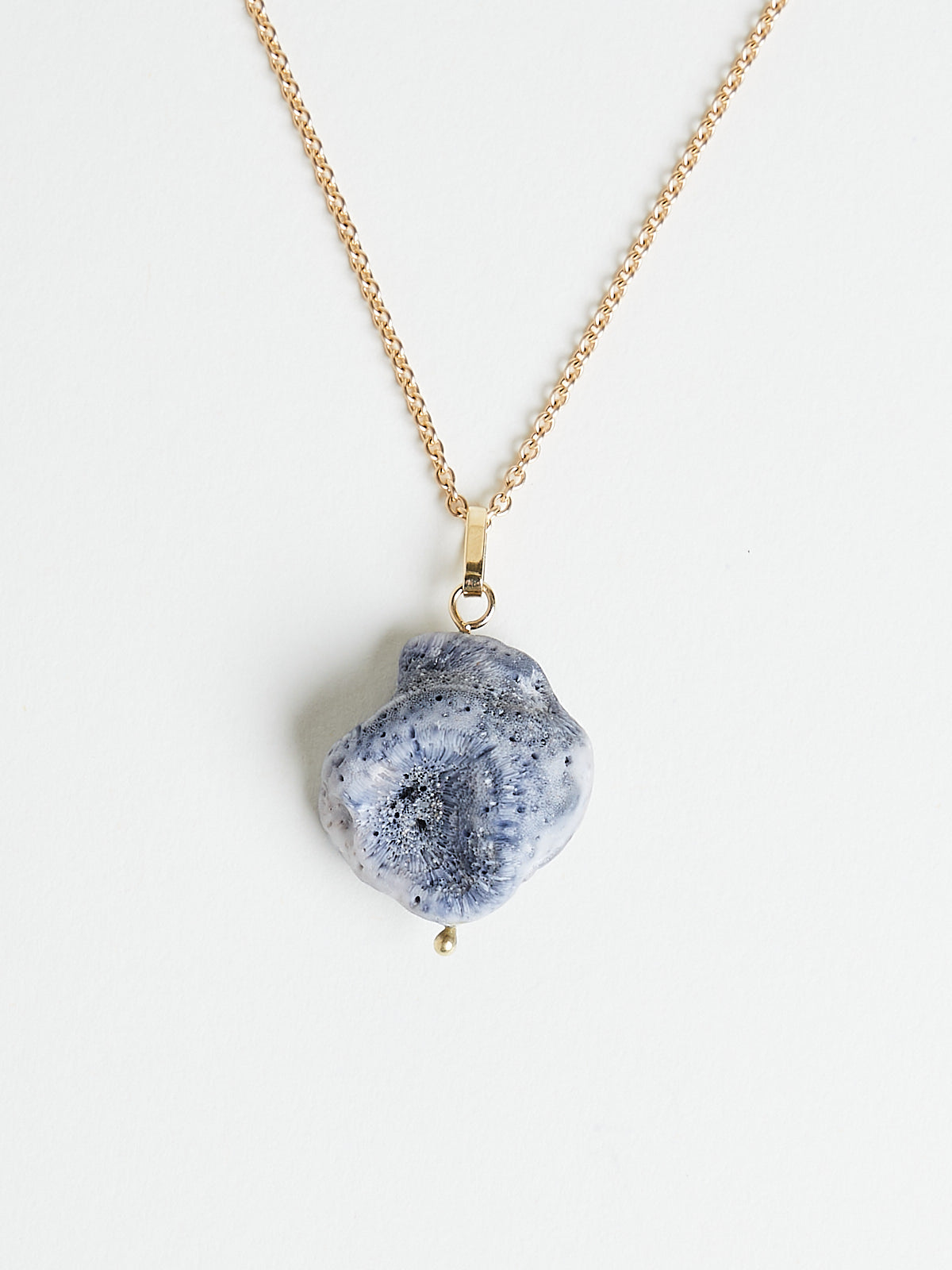 Handmade pendant with a pierced natural stone with 18k yellow gold details.