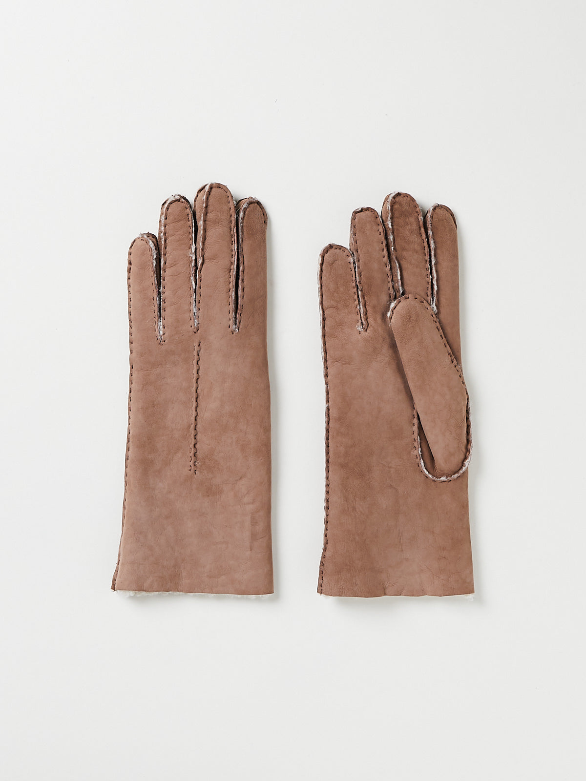 Gloves in beige Merino sheepskin with contrasting stitching. Lined in shearling.