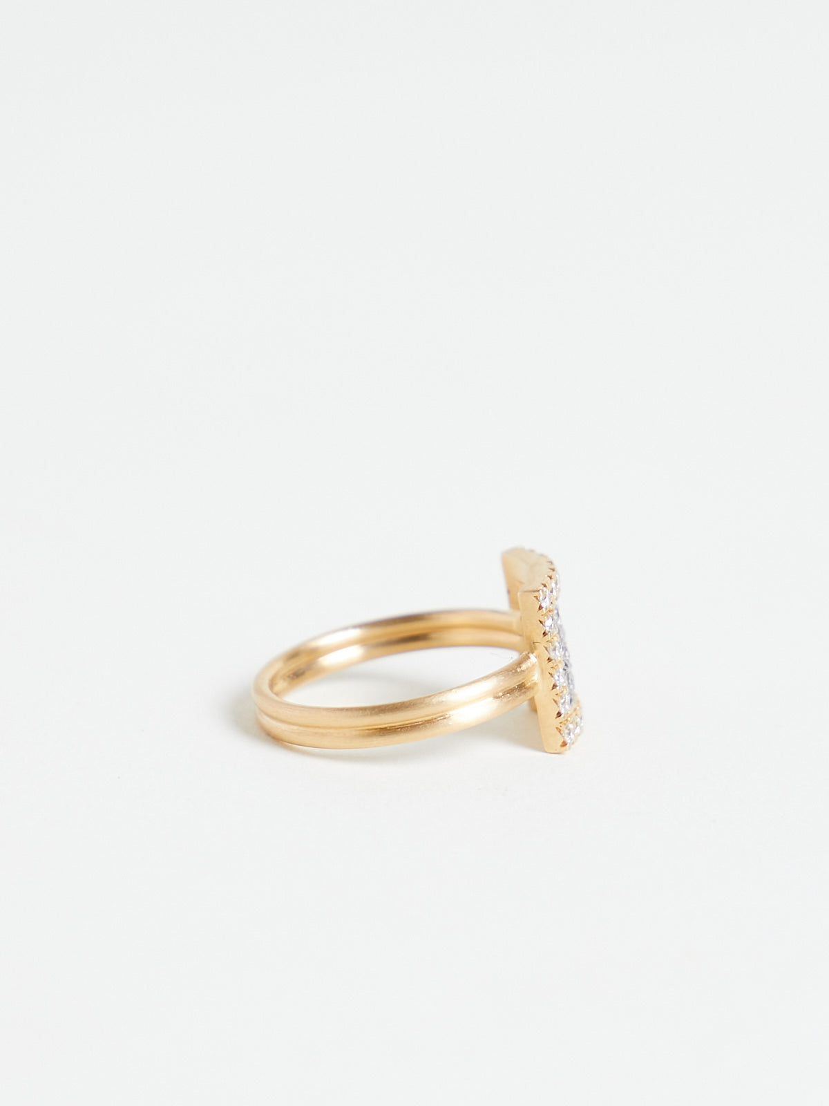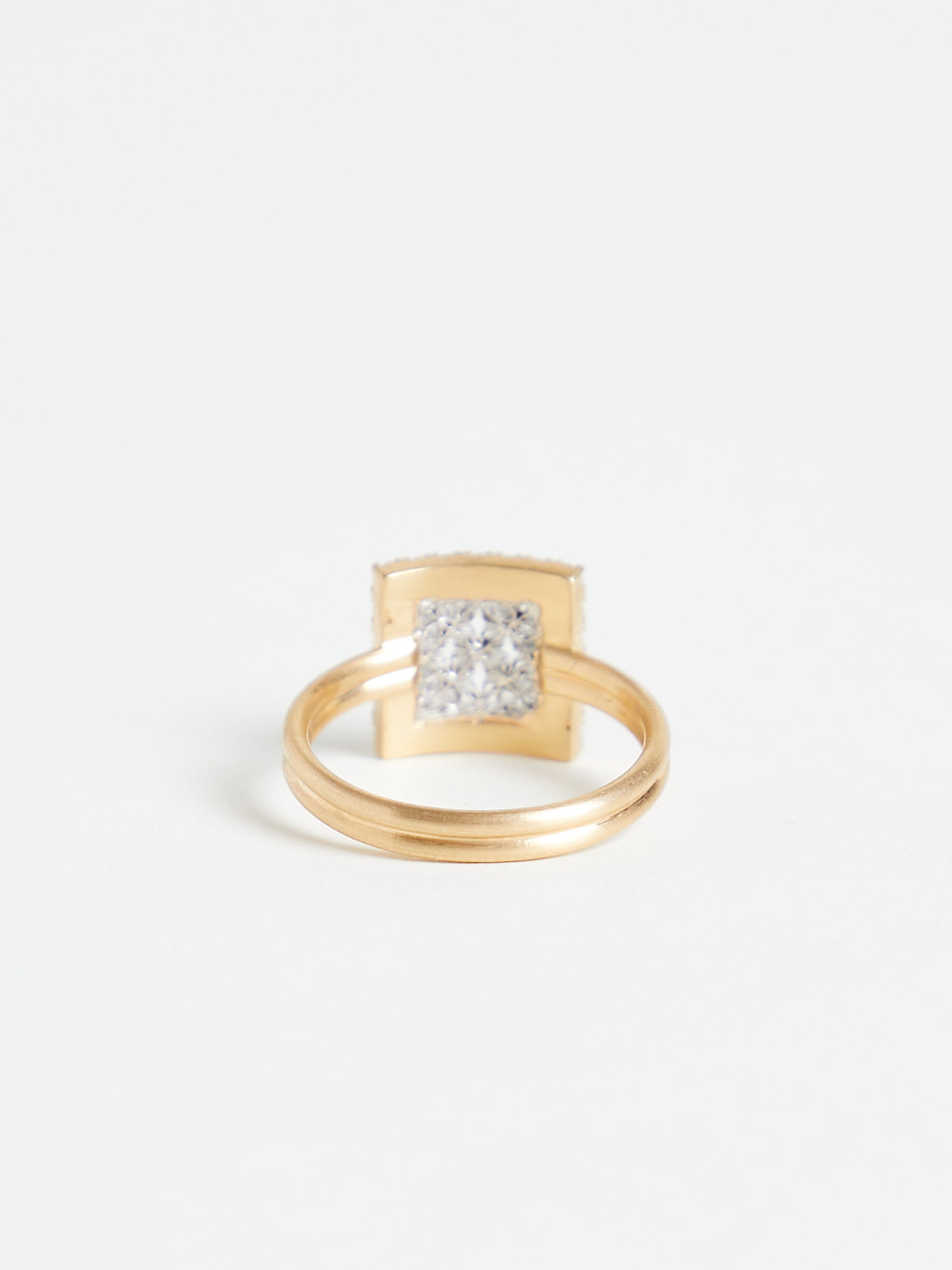 Square Pave Ring with White Diamonds in 18k Yellow Gold and Platinum