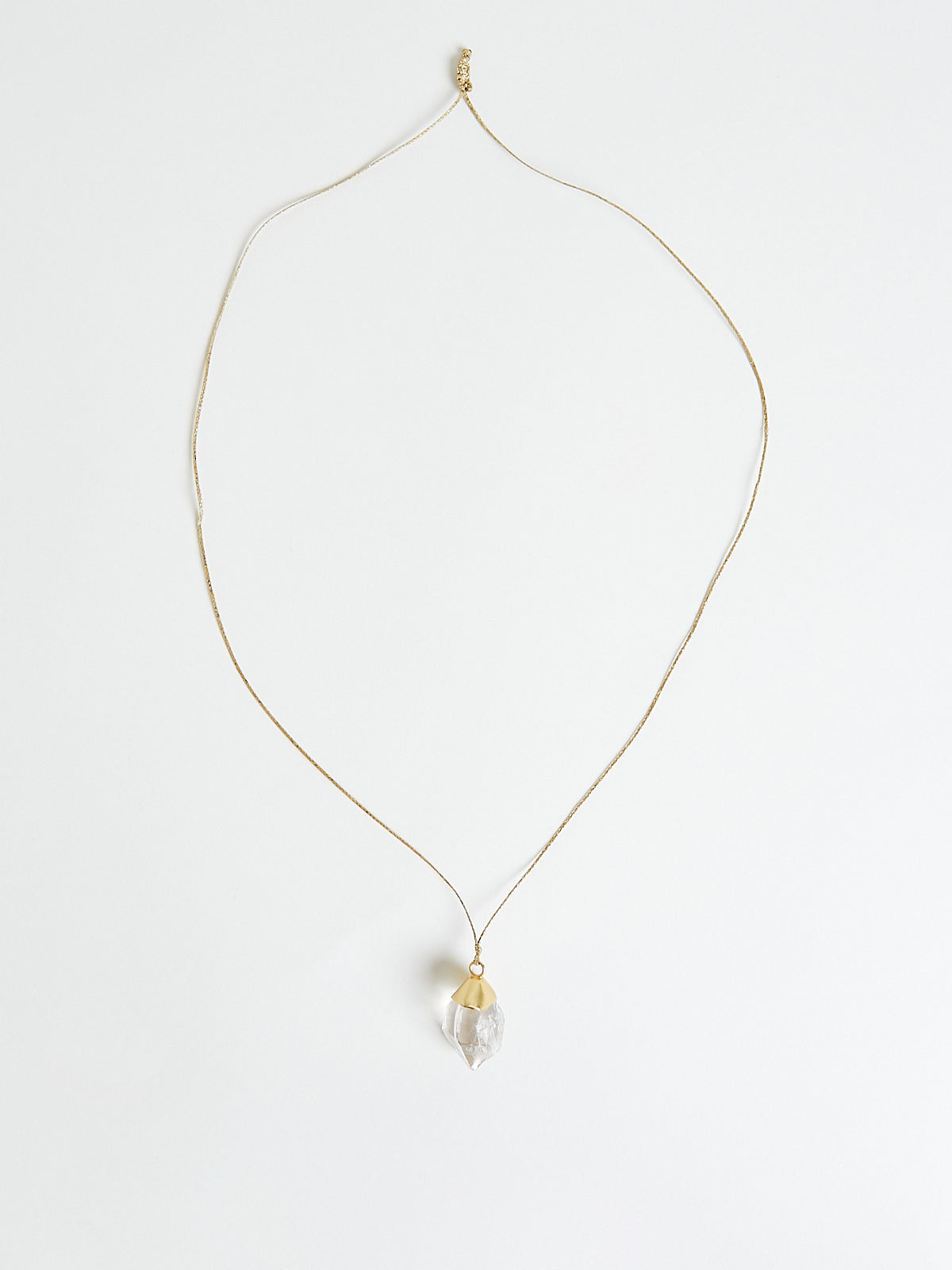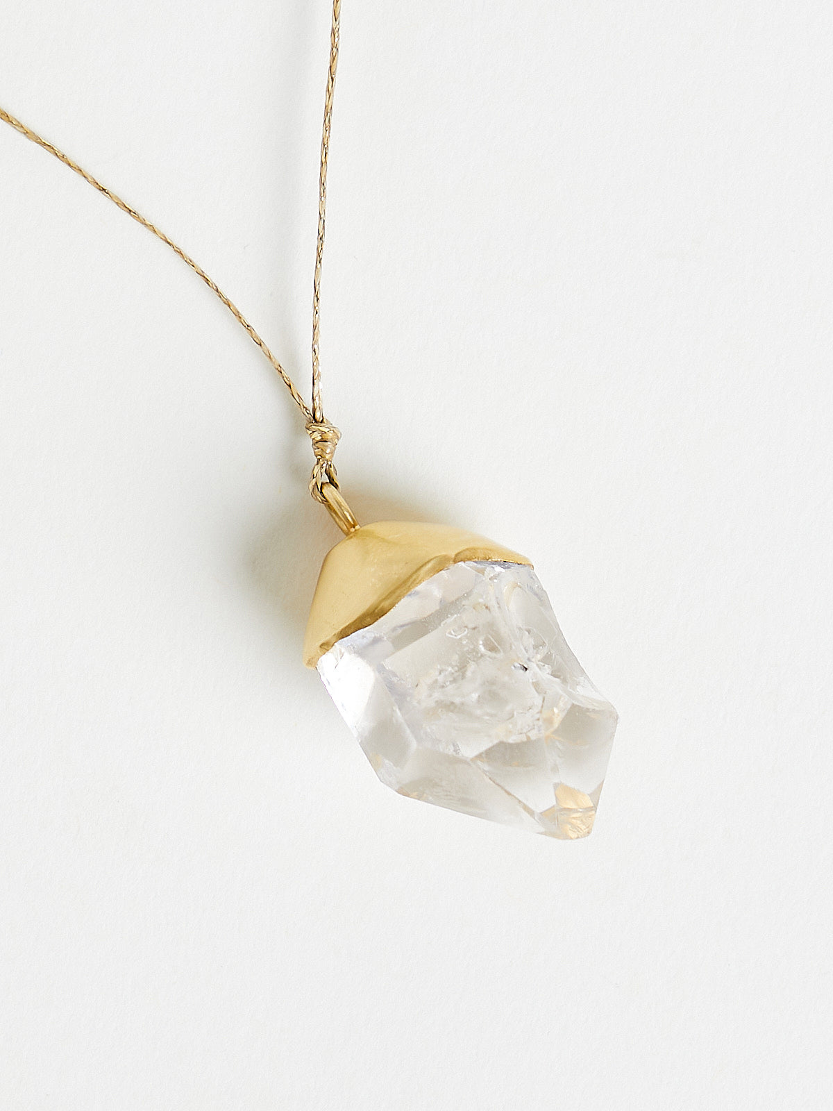 Cap Set Pendant in 18k Yellow Gold with Herkimer Diamond on Cord