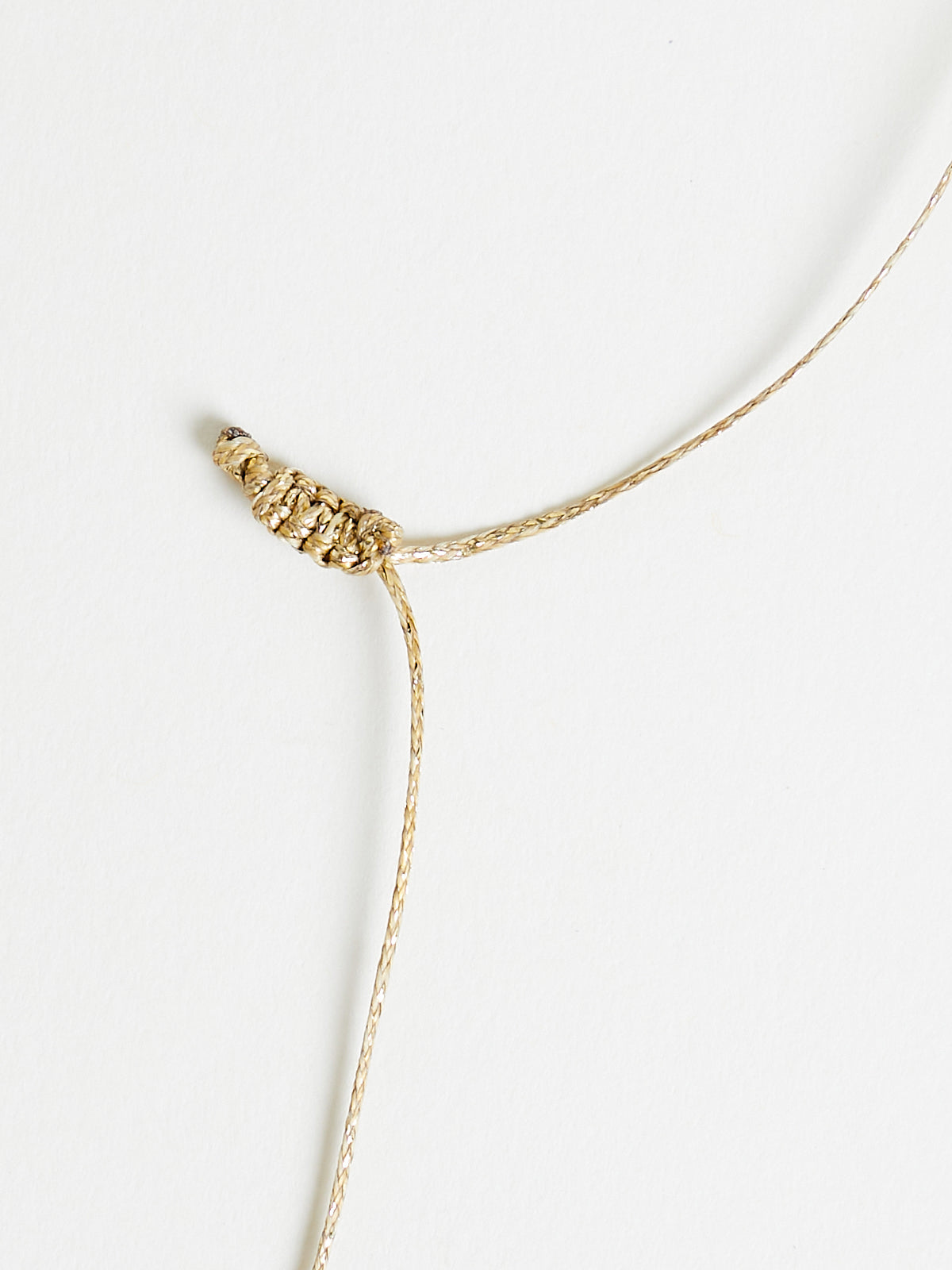 Handmade necklace with a cap-set Herkimer diamond pendant on a strong gilded waxed nylon cord.