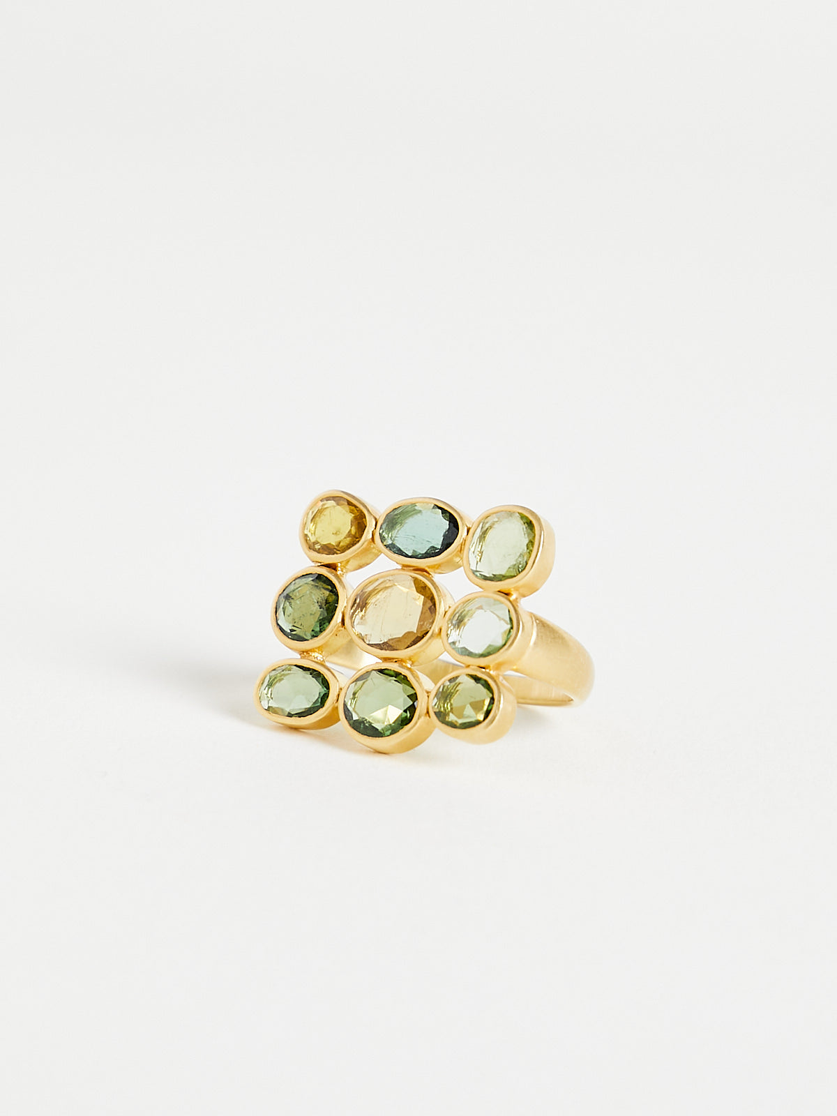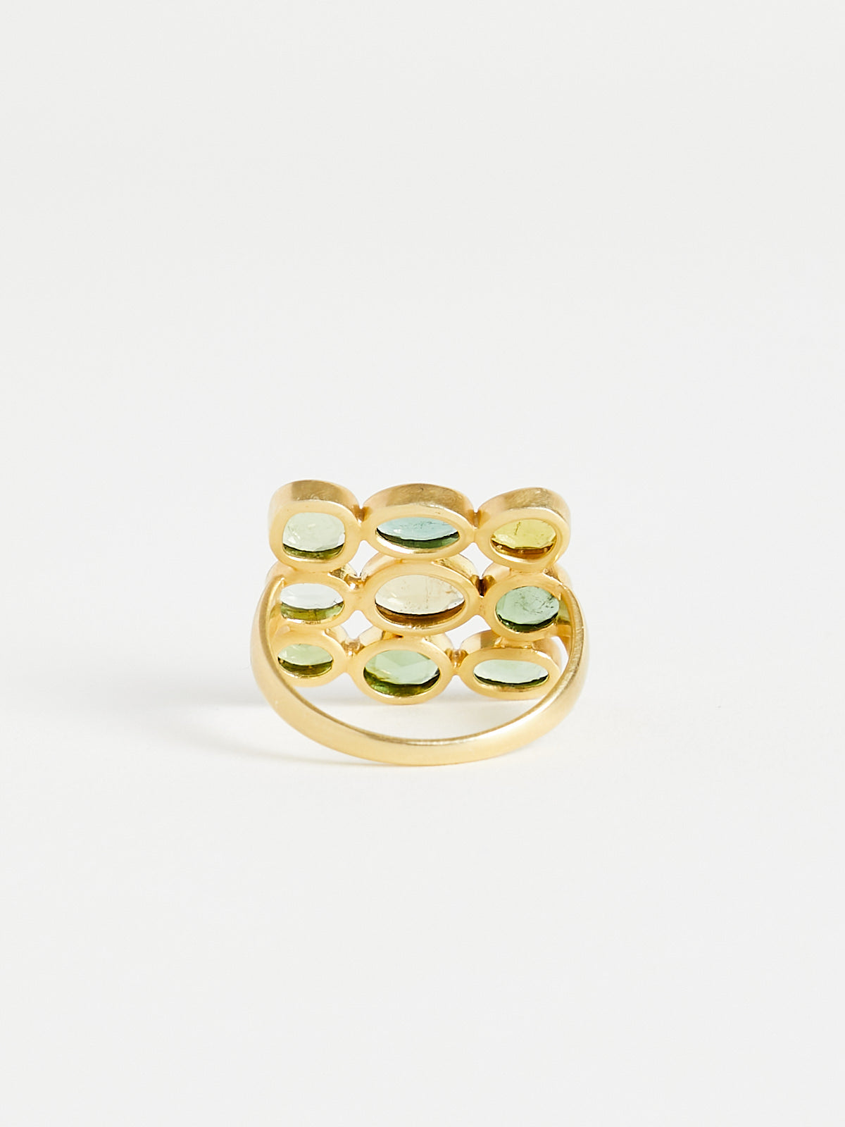 Hanabi Grid Ring in 18k Yellow Gold with 5ct Green Tourmaline