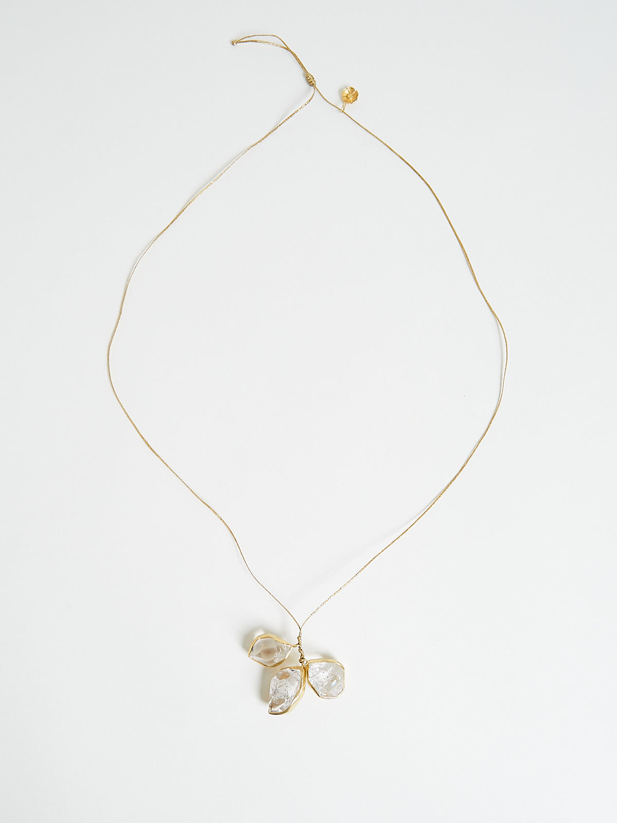 Herkimer Triple Colette with 18k Yellow Gold Flower Beria Necklace on Cord
