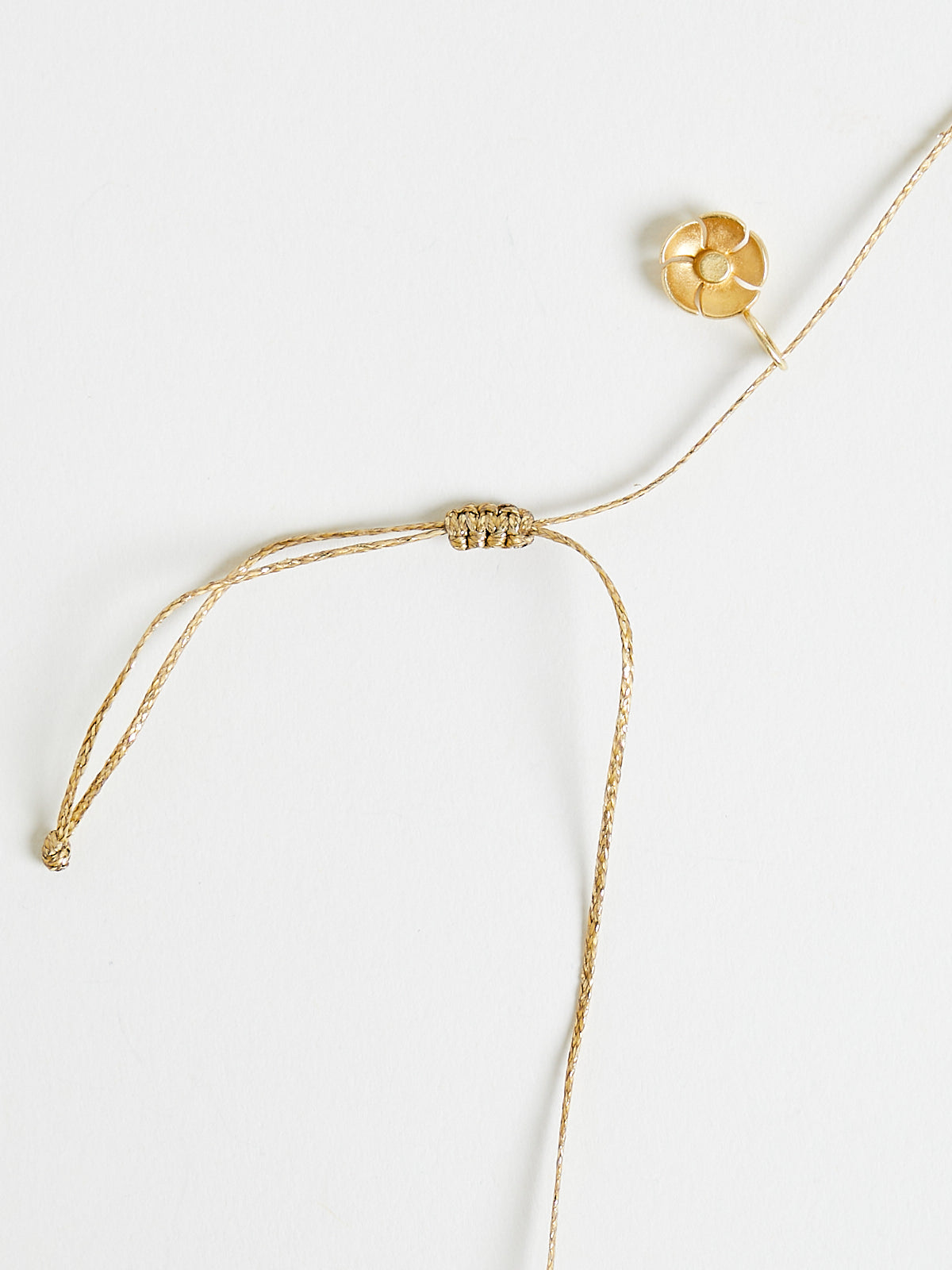 Handcrafted necklace with a cluster of 3 colette-set Herkimer diamonds and 18k yellow Beria flower charm on a strong gilded waxed nylon cord.